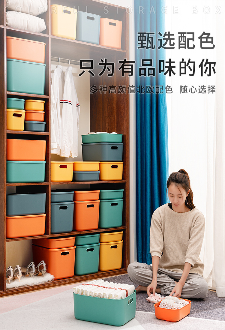 标题:YZ3050收纳盒桌面带盖杂物零食化妆品收纳筐储物盒衣物玩具整理箱