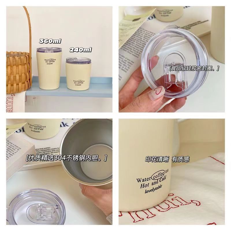 标题:韩风ins奶油黄小众款随手水杯便携不锈钢咖啡杯简约复古保温杯