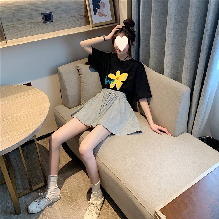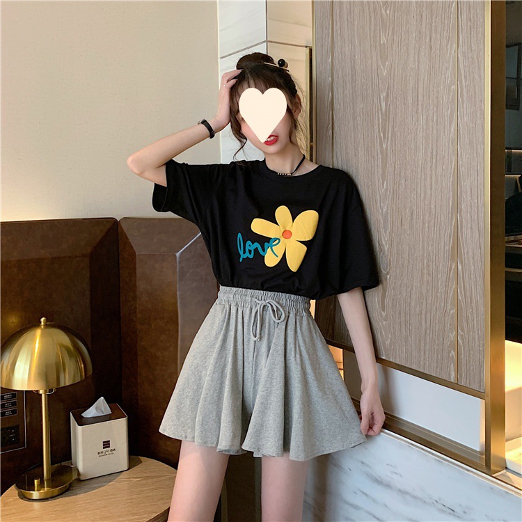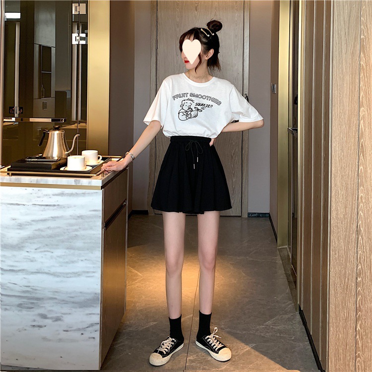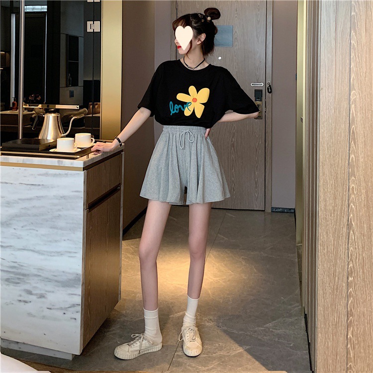 标题:棉高腰阔腿a字短裤女2023夏季新款潮ins原宿风休闲运动居家睡裤裙