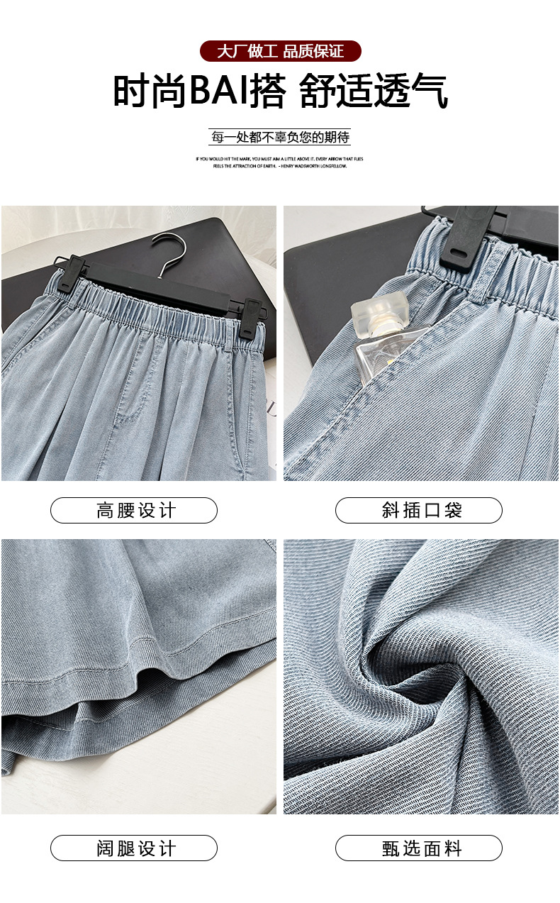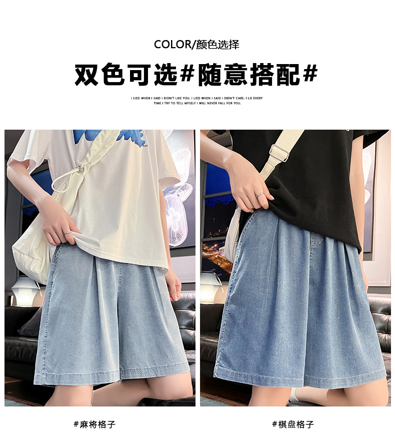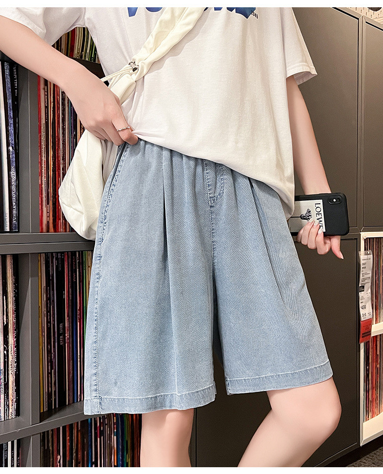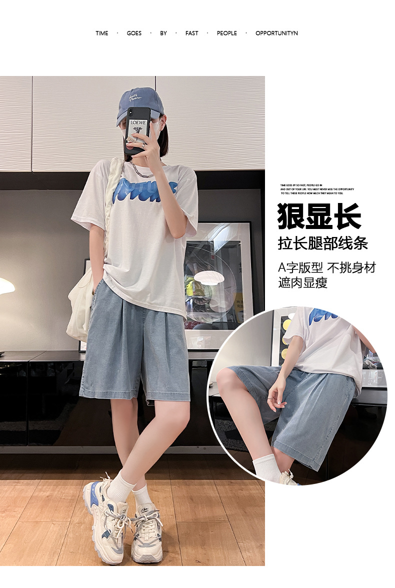 标题:天丝牛仔短裤女夏季薄款高腰宽松显瘦港风大码直筒阔腿五分ins潮