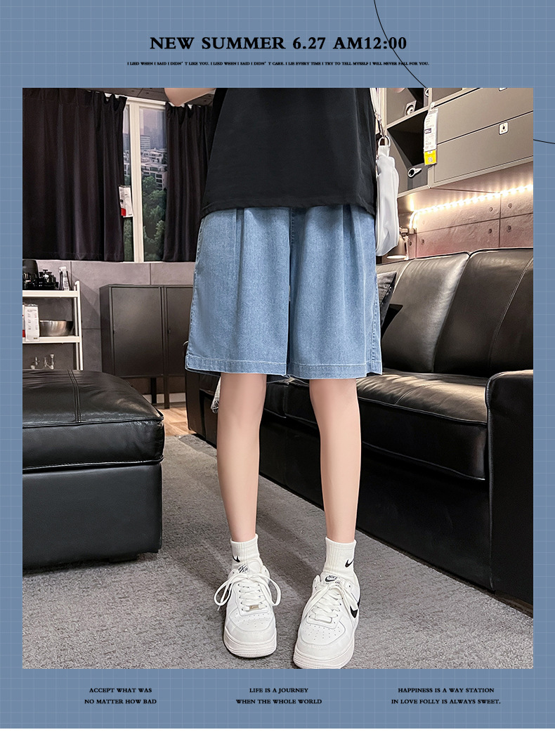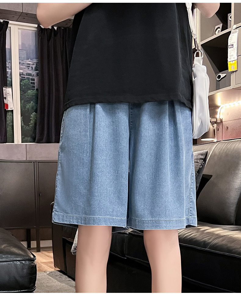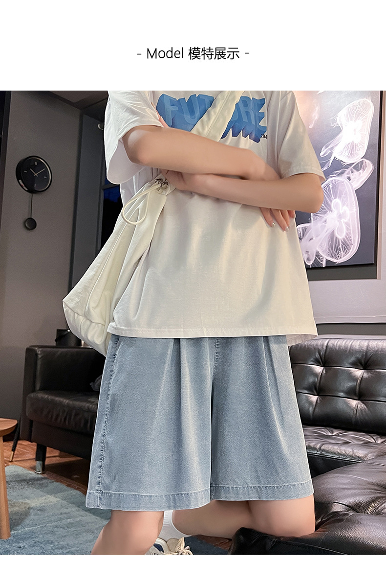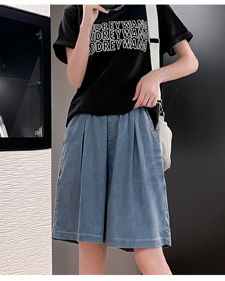 标题:天丝牛仔短裤女夏季薄款高腰宽松显瘦港风大码直筒阔腿五分ins潮