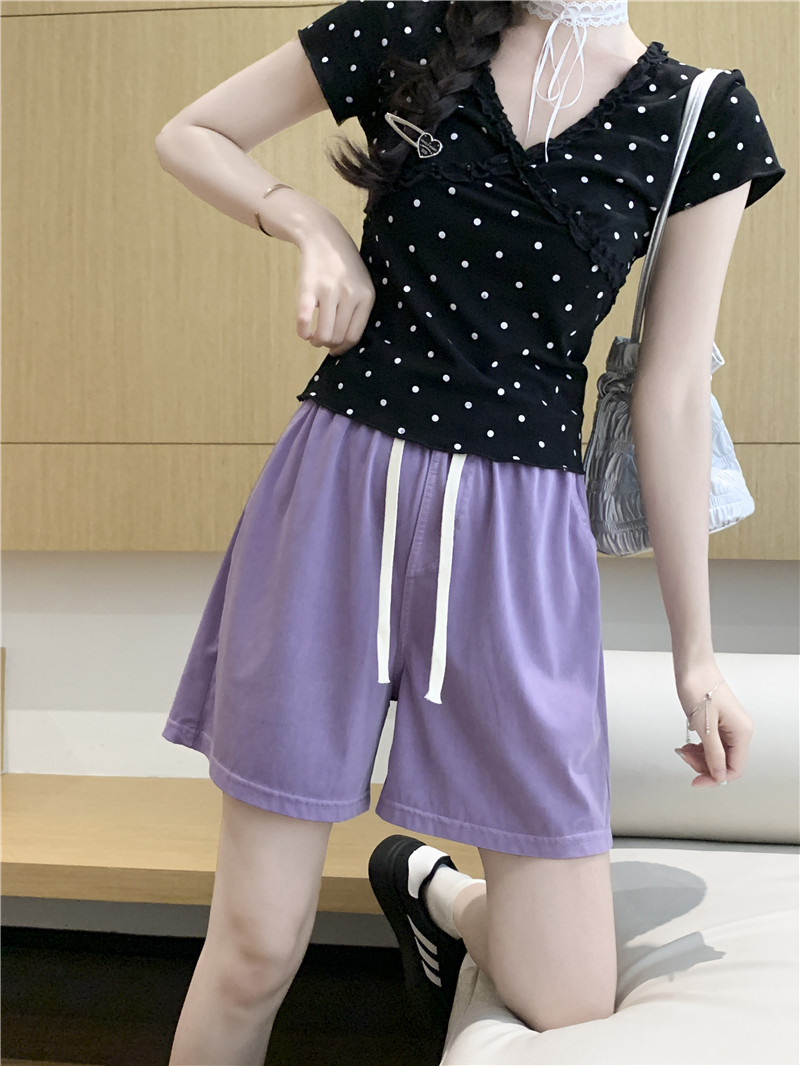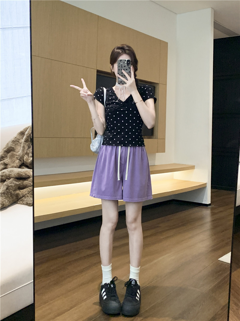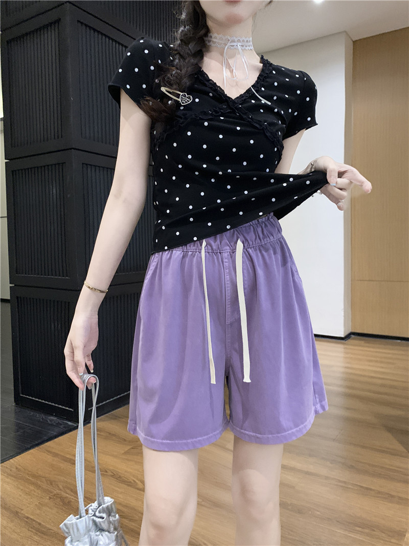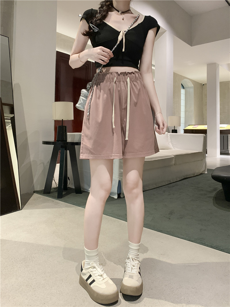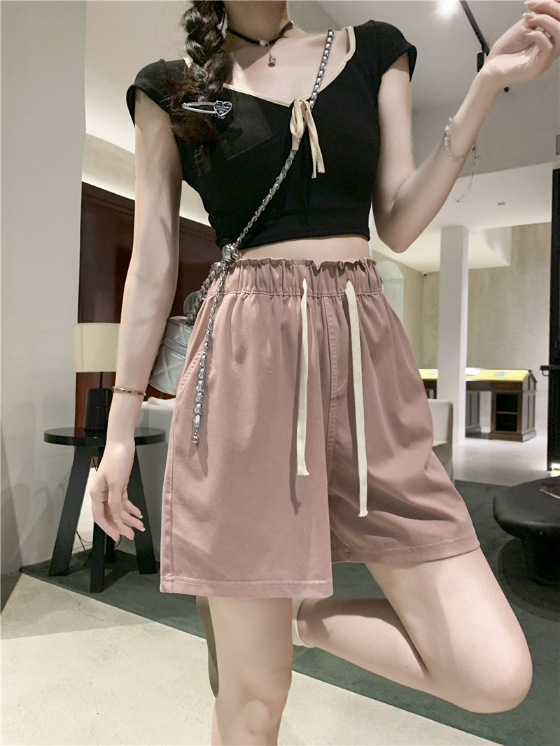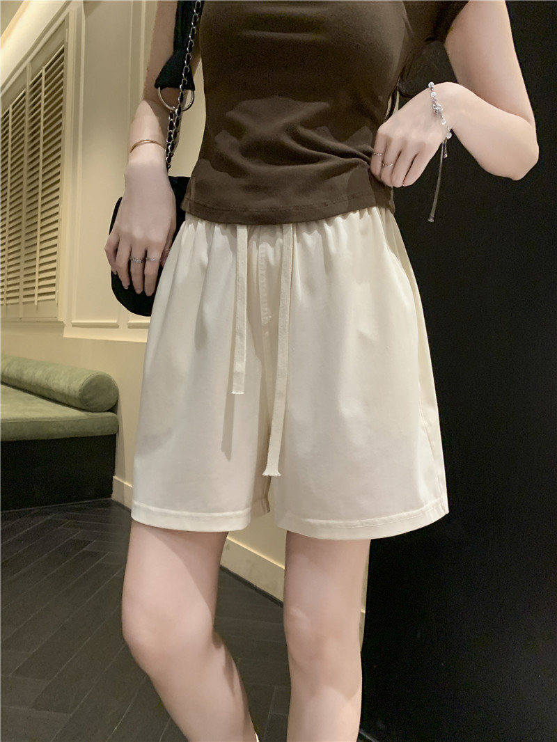 描述:主面料成分:涤纶(聚酯纤维),主面料成分2:天丝(莱赛尔纤维),裤长:五分裤,腰型:高腰,厚薄:薄,颜色:333短裤(米白),333短裤(粉色),333短裤(紫色),333短裤(摩卡),333短裤(深蓝),333短裤(黑色),尺码:M,L,XL,品牌:朱飞燕,上市年份/季节:2024年夏季,主面料成分含量:30%(含)-50%(不含),风格:休闲风,款式:基本款,风格类型:日韩休闲,弹力:微弹,流行元素:抽绳,面料名称:聚酯纤维,是否跨境货源:否,主面料成分2含量:30%(含)-50%(不含),工艺:水洗,