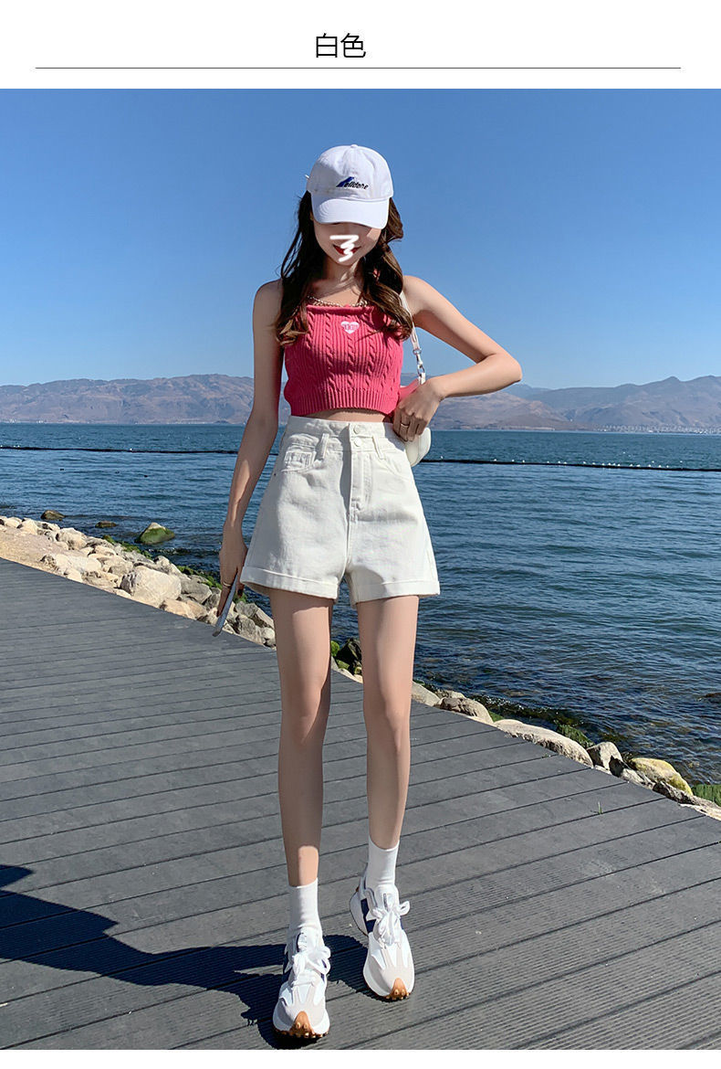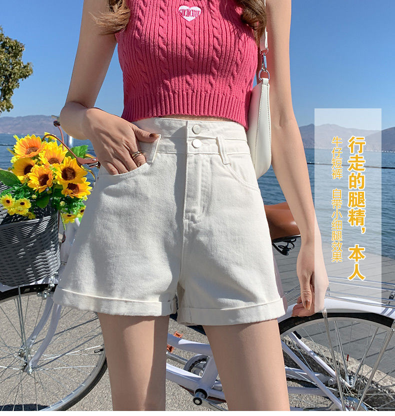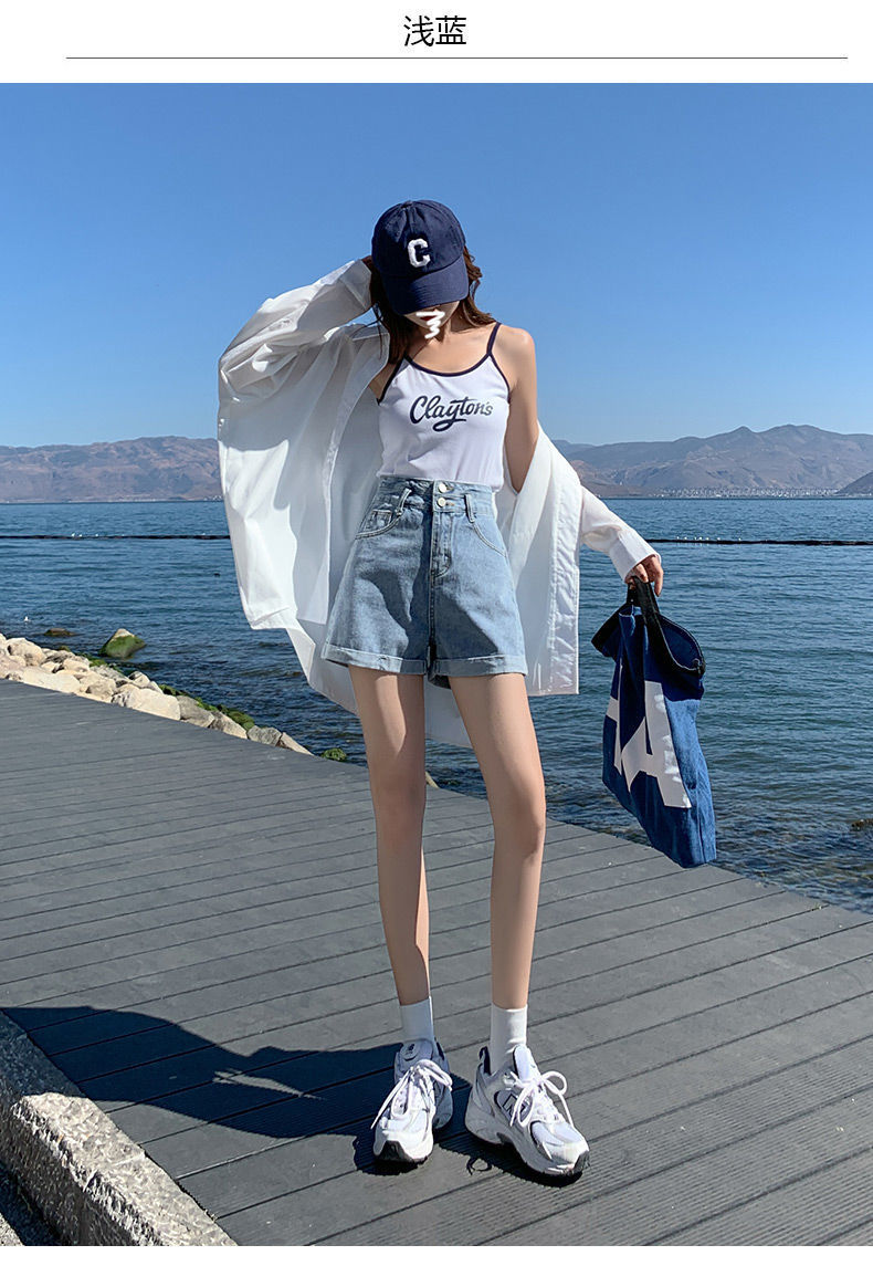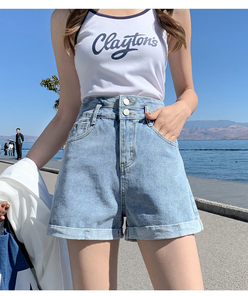 标题:牛仔短裤女夏新款ins风超高腰阔腿宽松直筒休闲显瘦卷边a字热裤子