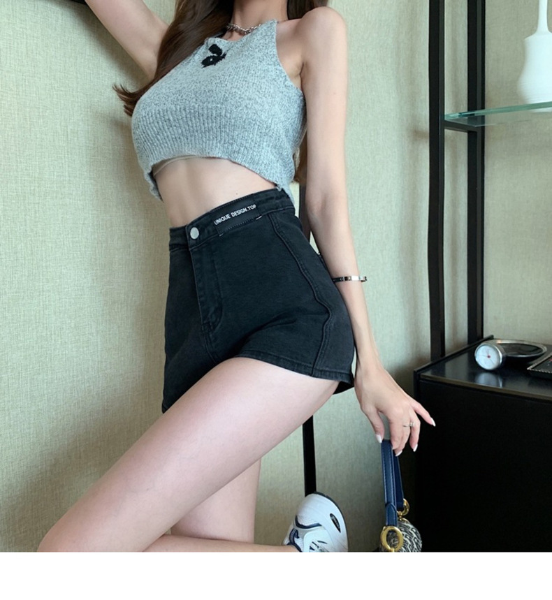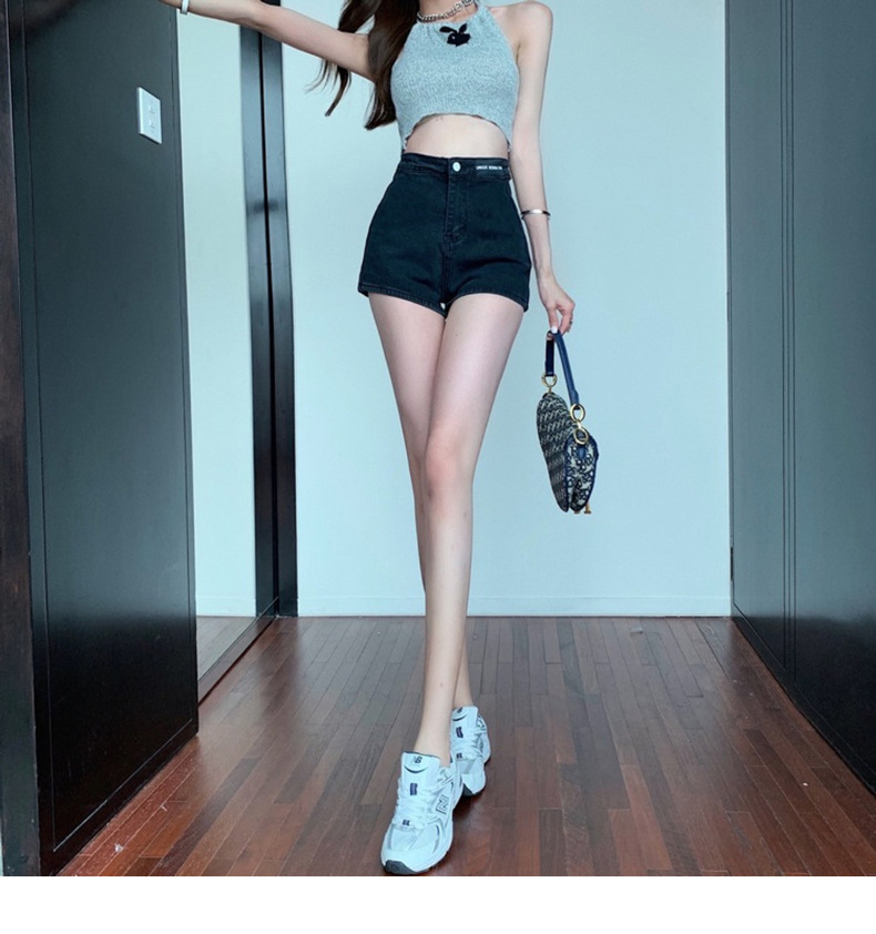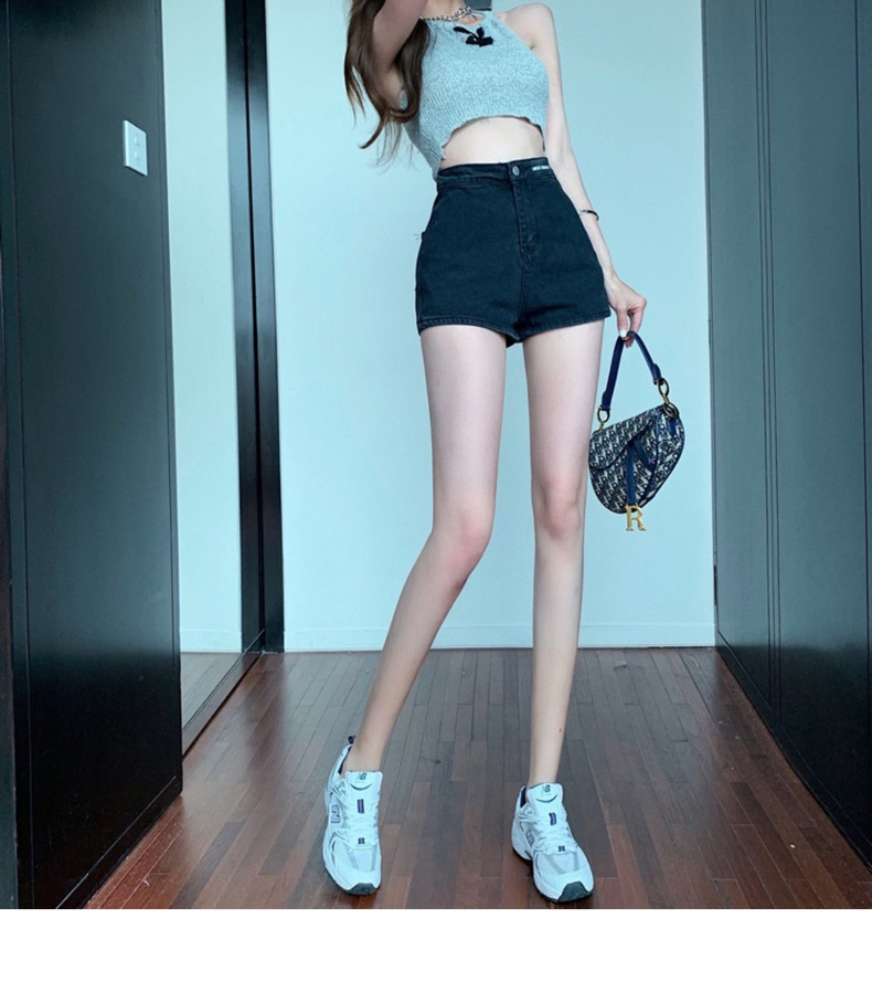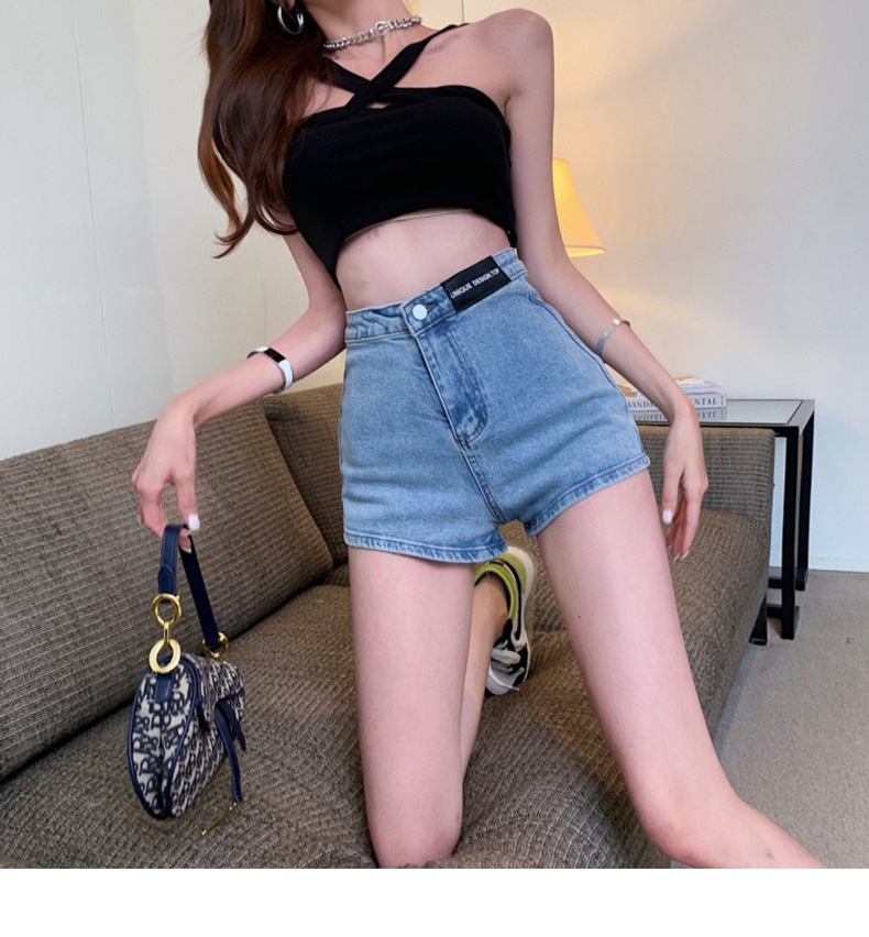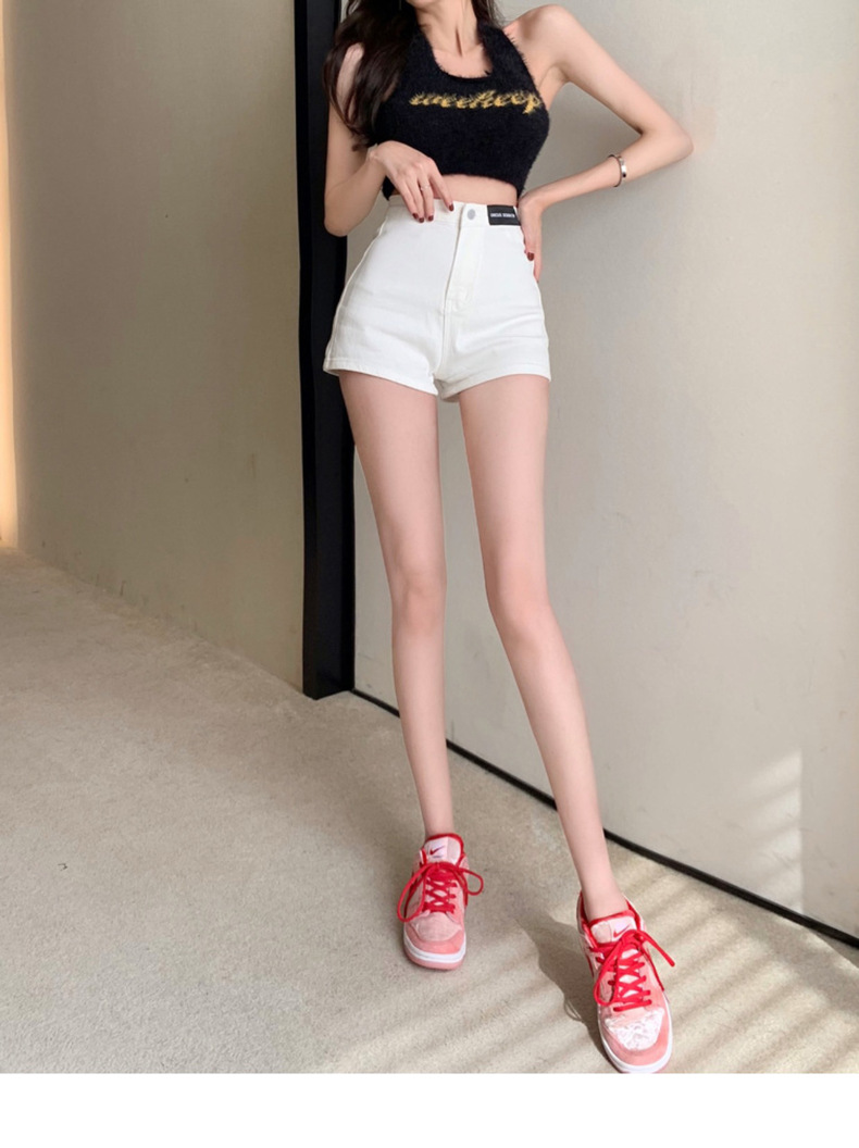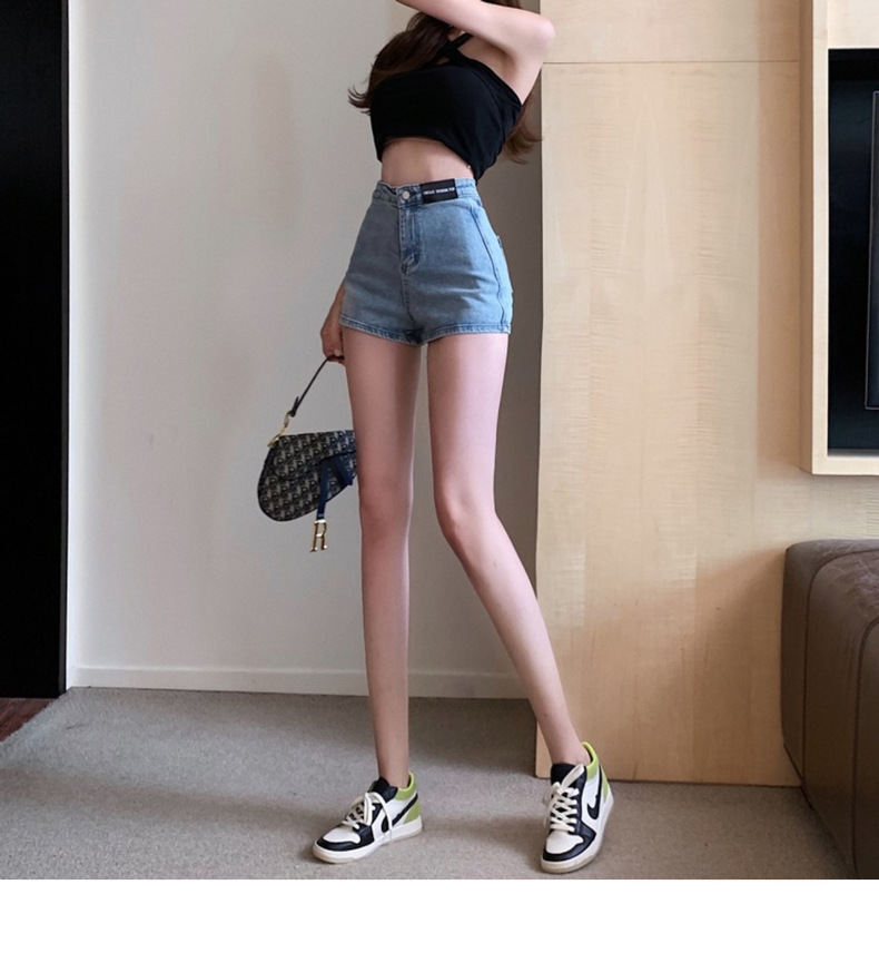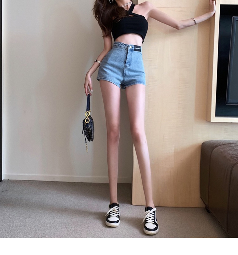 标题:牛仔短裤女薄款紧身贴标高腰弹力显瘦提臀直筒辣妹外穿打底热裤潮