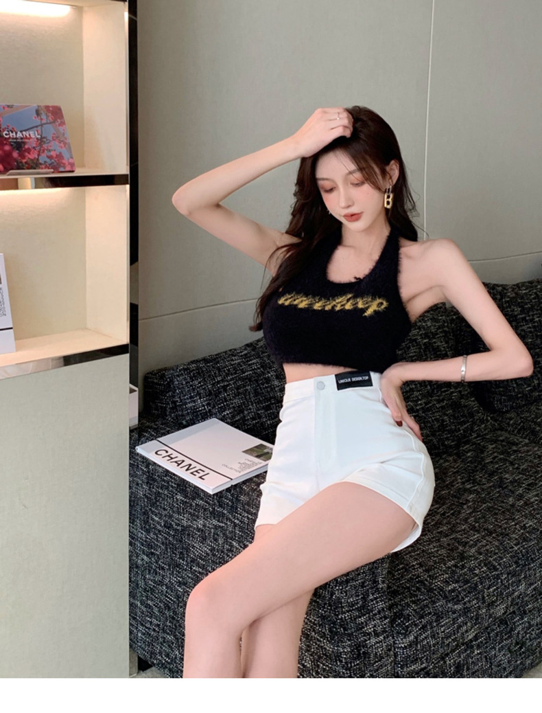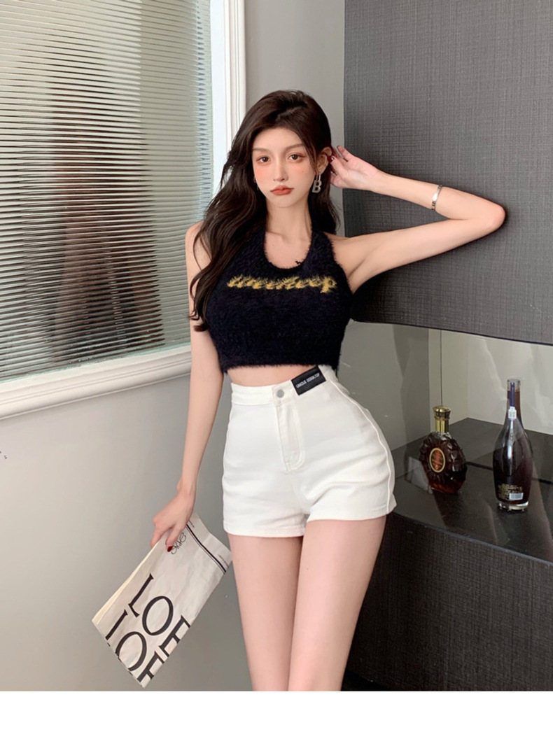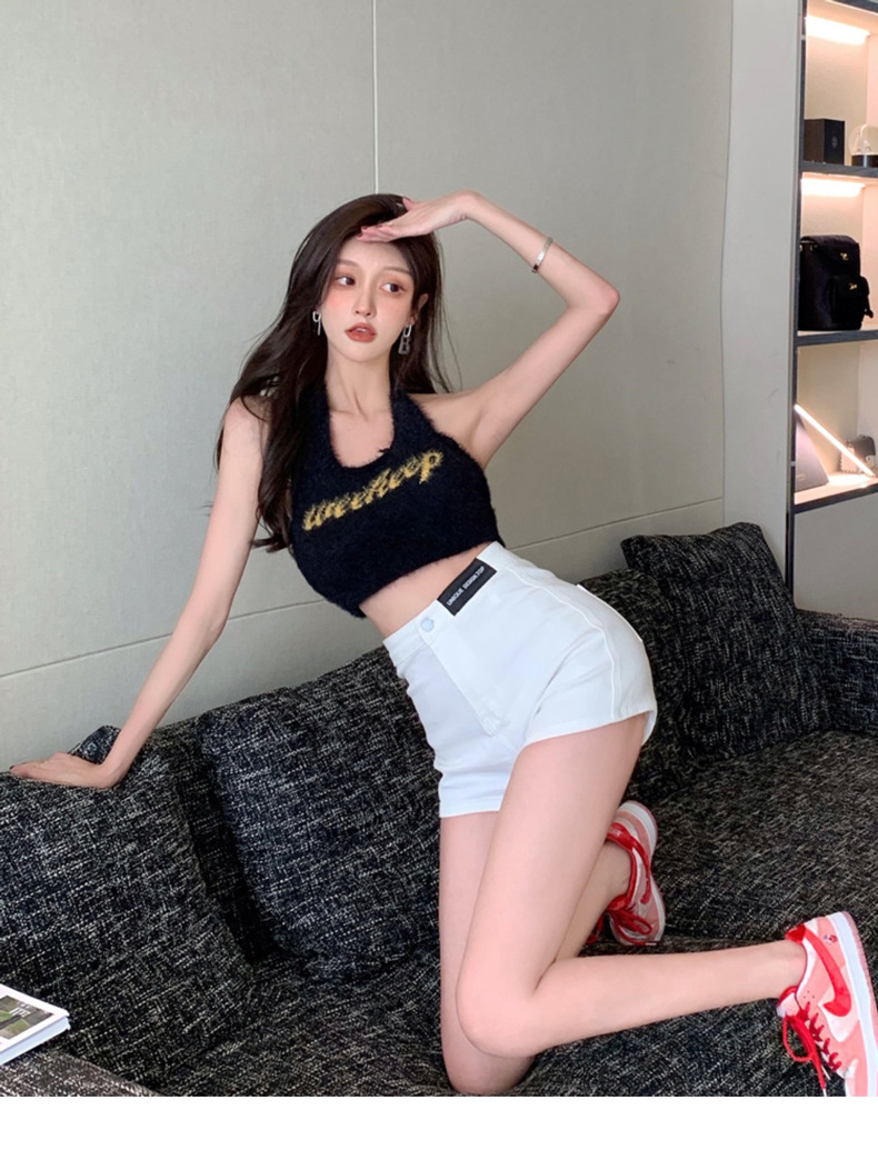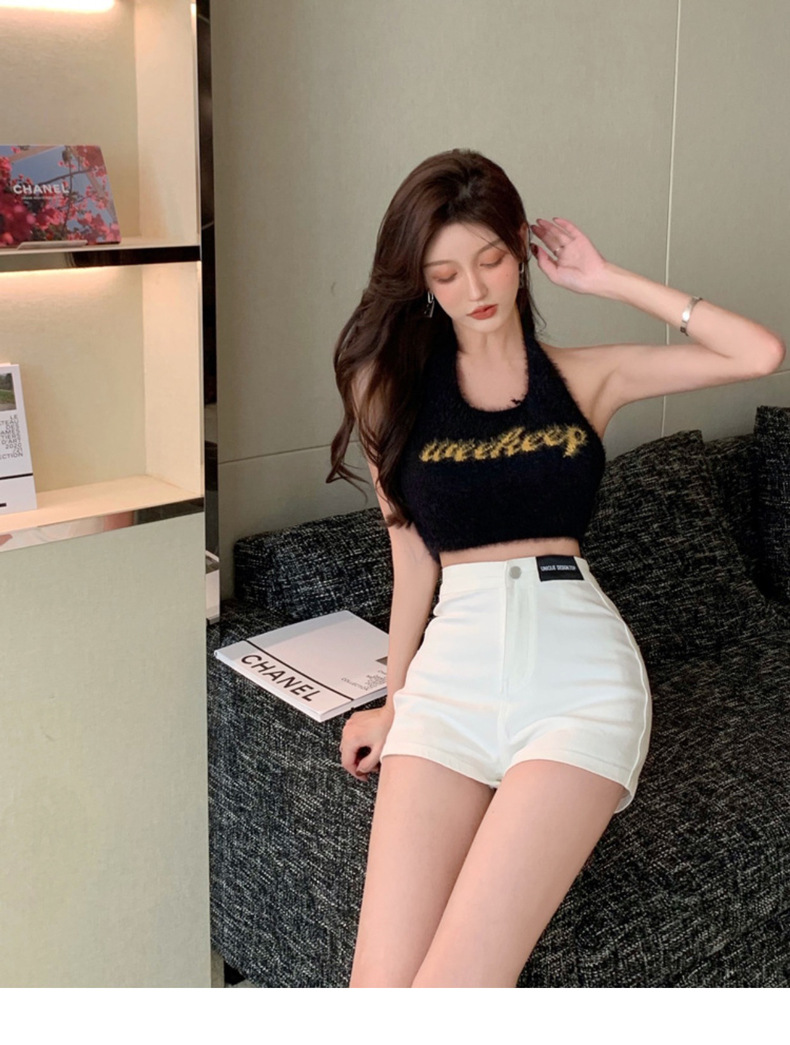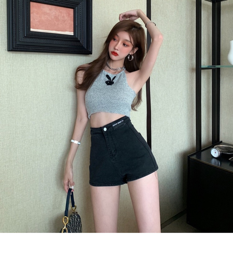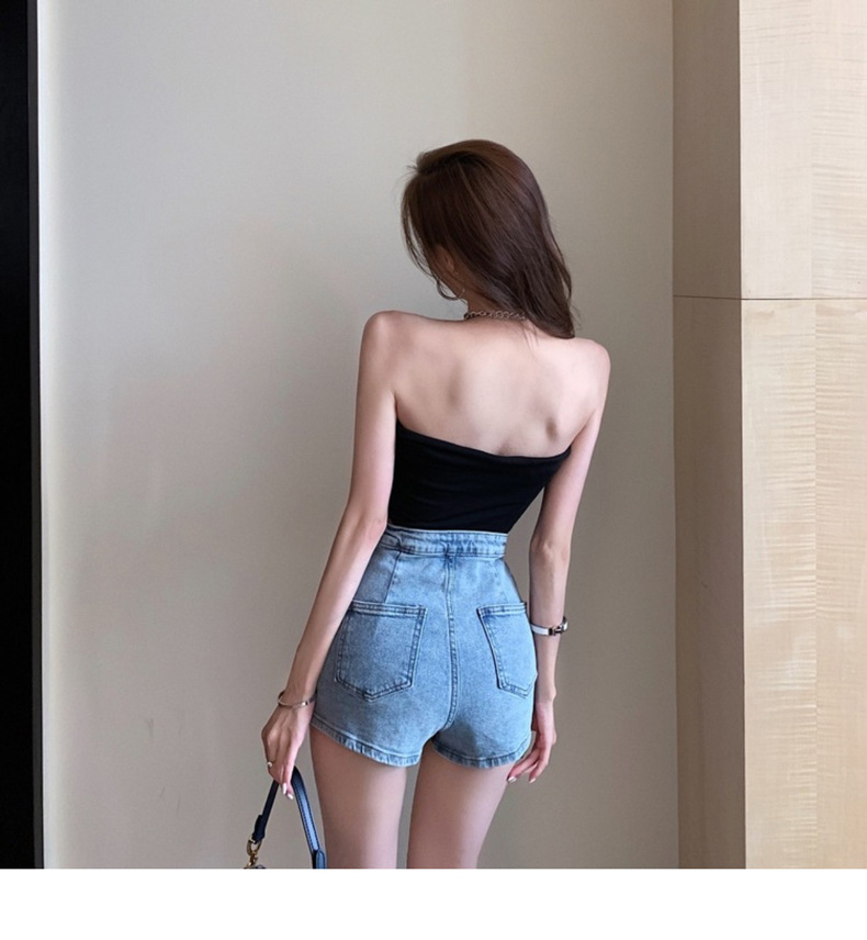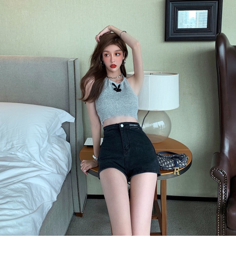 标题:牛仔短裤女薄款紧身贴标高腰弹力显瘦提臀直筒辣妹外穿打底热裤潮