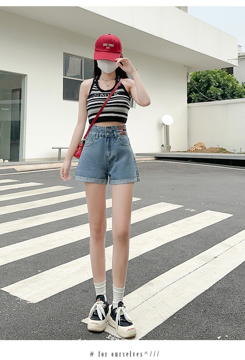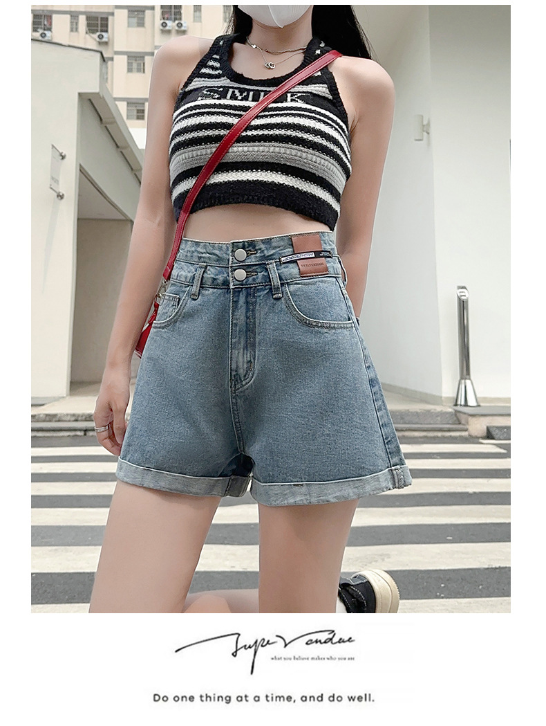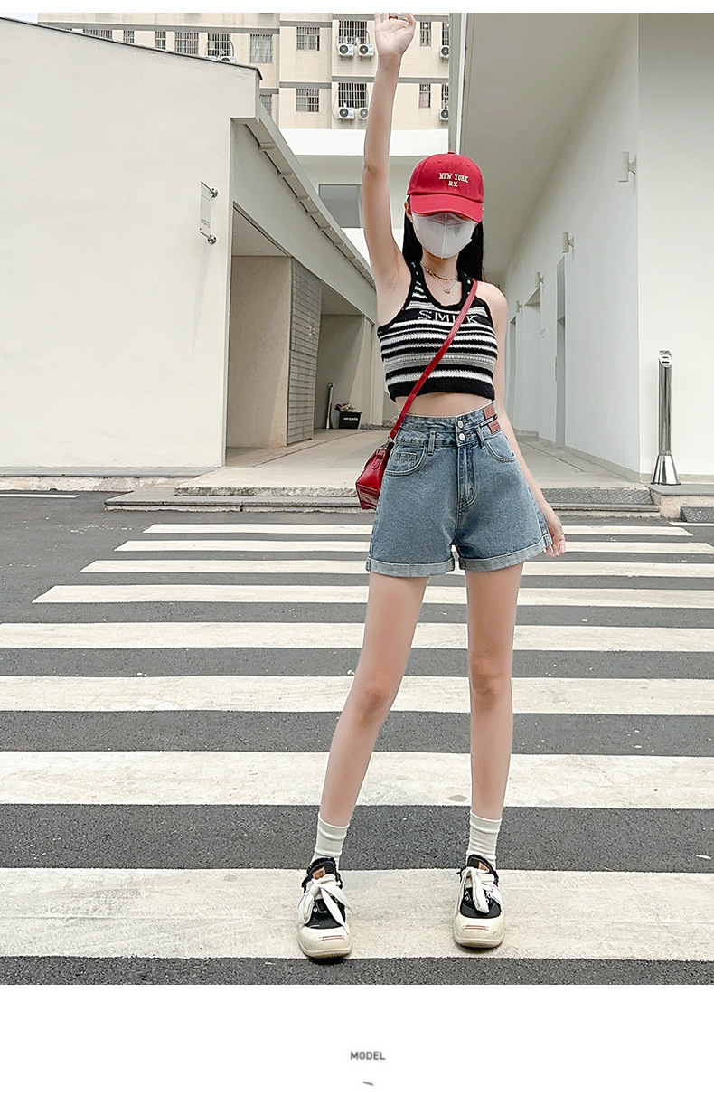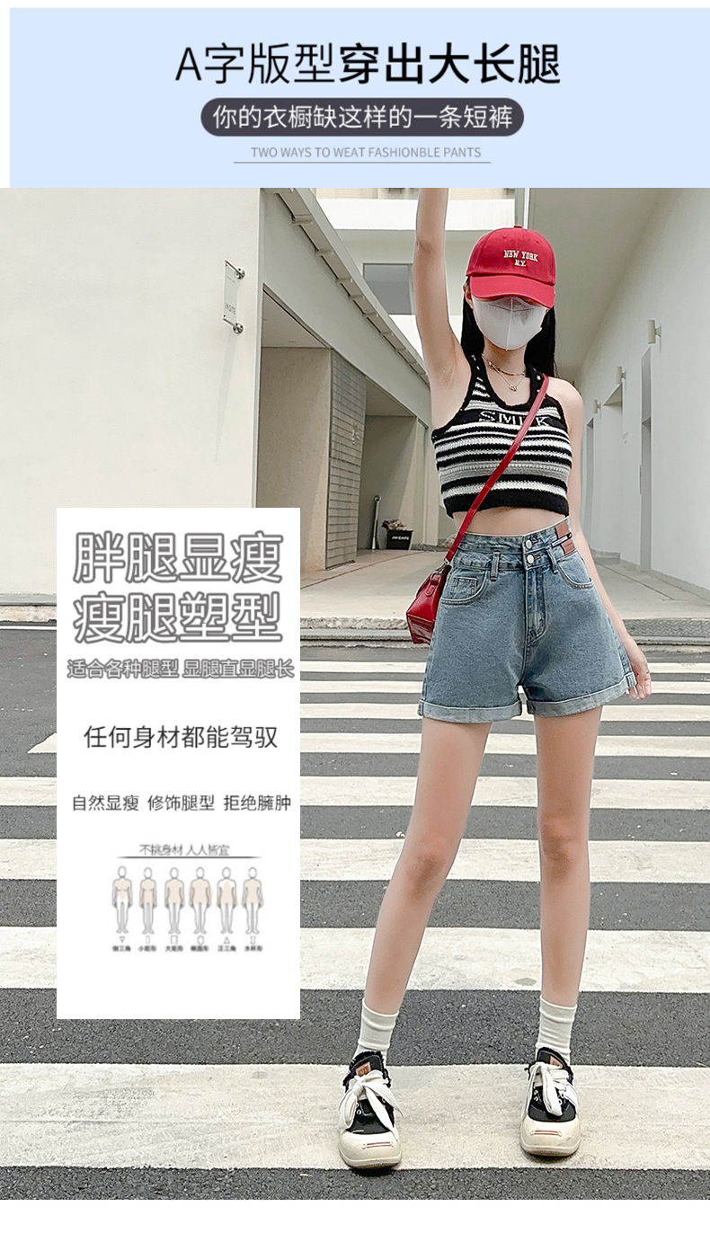 标题:高腰牛仔短裤女夏季薄款2024年新款小众小个子显瘦短款外穿热裤子