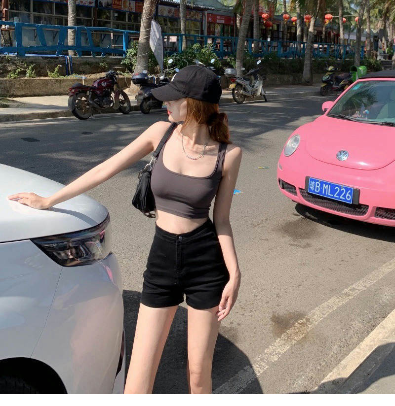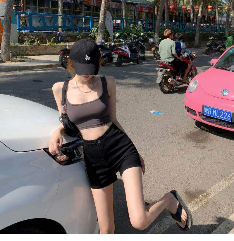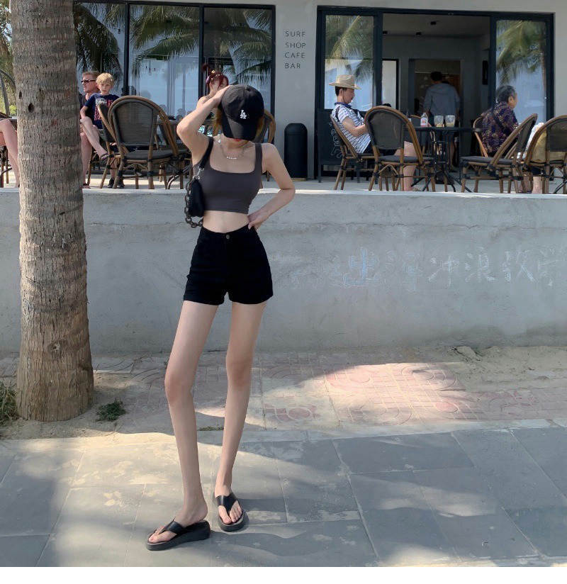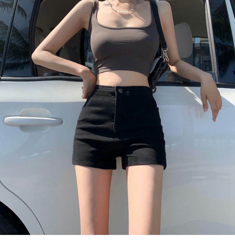标题:黑色牛仔短裤女辣妹a字裤夏高腰薄款紧身阔腿弹力修身包臀热裤子