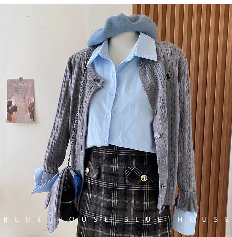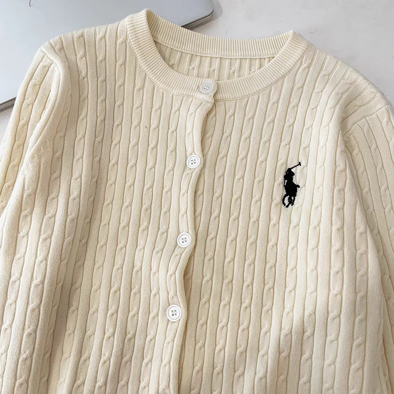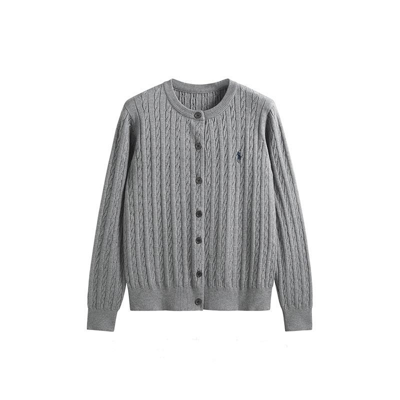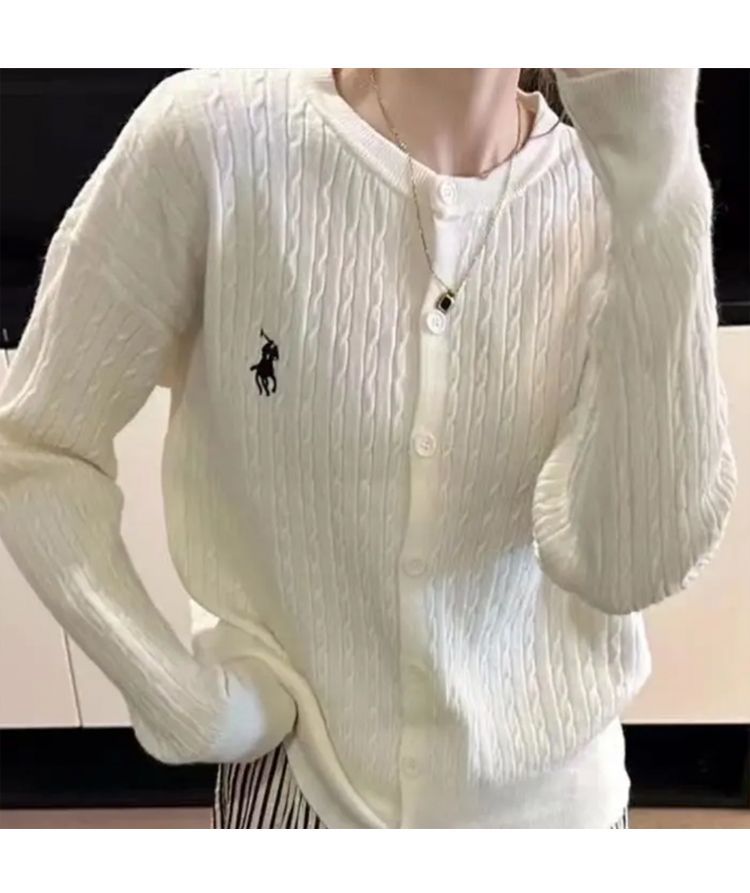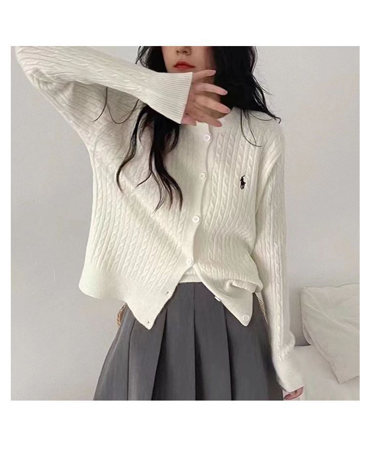 标题:三股纱小马刺绣麻花针织衫开衫毛衣女秋冬早春复古圆领外套上衣
