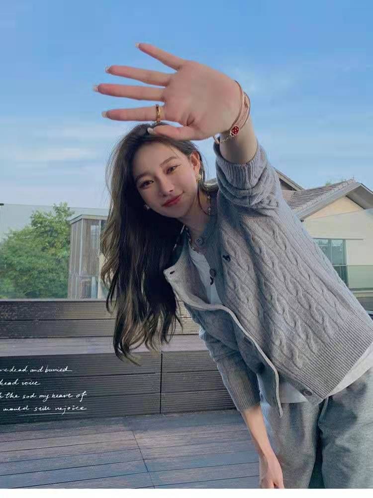 描述:货号:J118开衫,面料名称:三股包芯纱,主面料成分:粘胶纤维,主面料成分2:涤纶(聚酯纤维),厚薄:厚,款式:开衫,组合形式:单件,版型:常规,衣长:普通款(50cm<衣长≤65cm),领型:圆领,袖长:长袖,袖型:常规袖,上市年份/季节:2024年秋季,颜色:黑色,白色,杏色,粉色,灰色,天蓝色,酒红色,卡其色,深宝蓝,尺码:均码,风格类型:文艺复古,穿着方式:开衫,主面料成分含量:50%(含)-70%(不含),主面料成分2含量:30%以下,门襟:单排扣,风格:复古风,是否跨境货源:否,