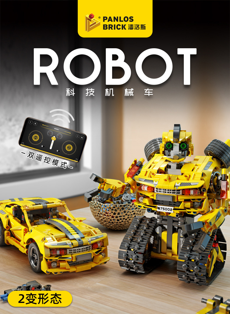 标题:潘洛斯675001-02智能遥控变形机器人益智拼插儿童玩具小颗粒积木
