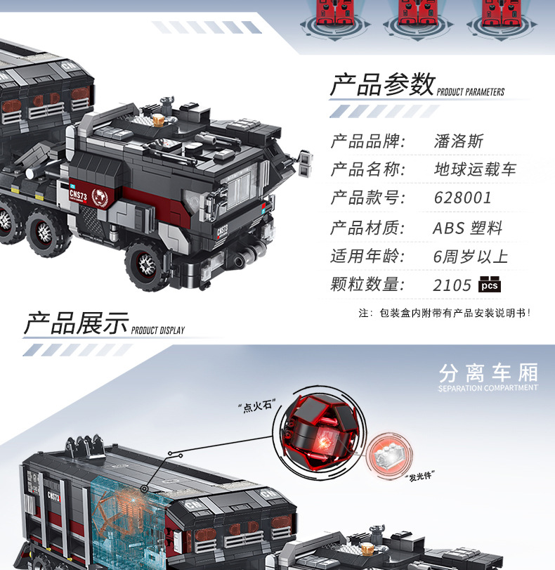 标题:潘洛斯积木拼装模型流浪地球运载车兼容乐高儿童积木玩具628001