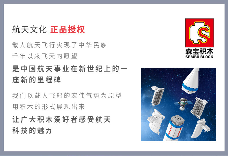 标题:森宝积木中国航天文化正版授权载人飞船兼容乐高儿童益智拼搭玩具