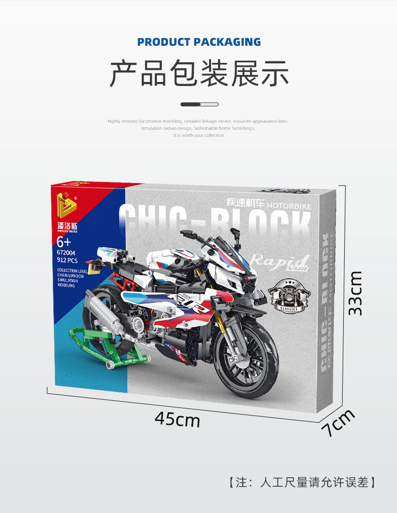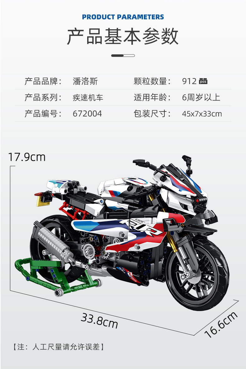 描述:3C配置类别:14岁以下的塑胶玩具,材质:塑料/塑胶,品牌:PANLOS BRICK/潘洛斯,货号:672004,产地:汕头,规格:45*33*7,是否电动:否,是否多功能:否,是否能够DIY:是,包装方式:彩盒,加工定制:否,是否外贸:否,塑料材质分类:ABS,塑料积木类型:小颗粒,积木粒(片)数:800粒(片)以上,积木净重:1.5kg,是否有动漫形象:否,是否有导购视频:否,多米诺类型:标准多米诺,是否专供外贸:否,商品3C认证码:2018152203021563,颜色:宝码M1000RR 672004,主要下游平台:ebay,亚马逊,wish,速卖通,独立站,LAZADA,主要销售地区:非洲,欧洲,南美,东南亚,北美,东北亚,中东,有可授权的自有品牌:是,是否跨境出口专供货源:是,适用年龄:少年(7-14岁),