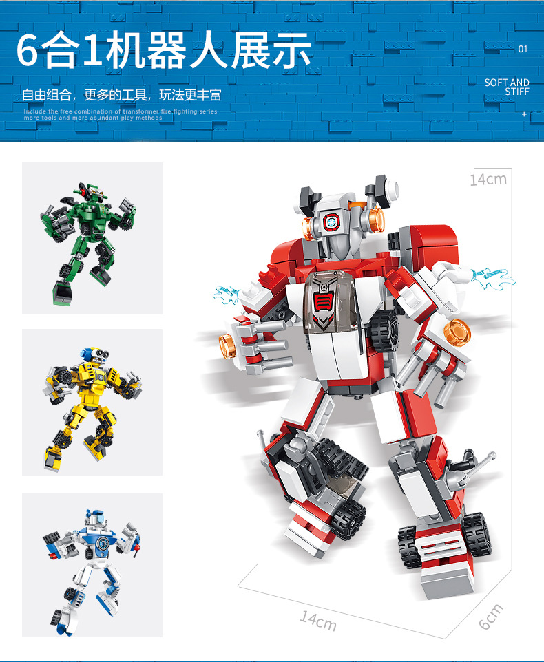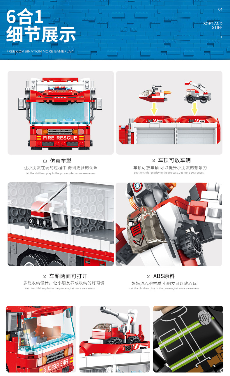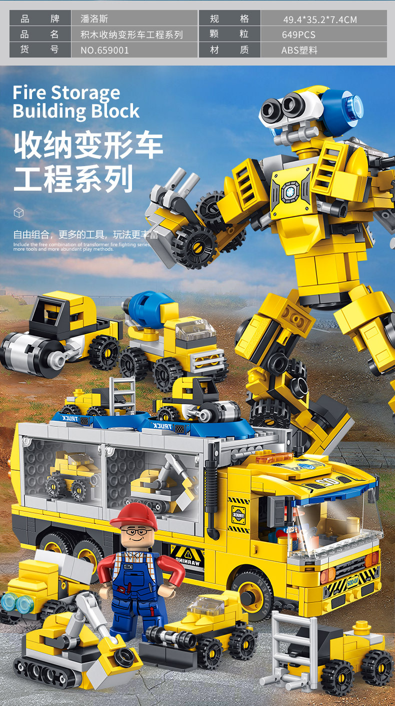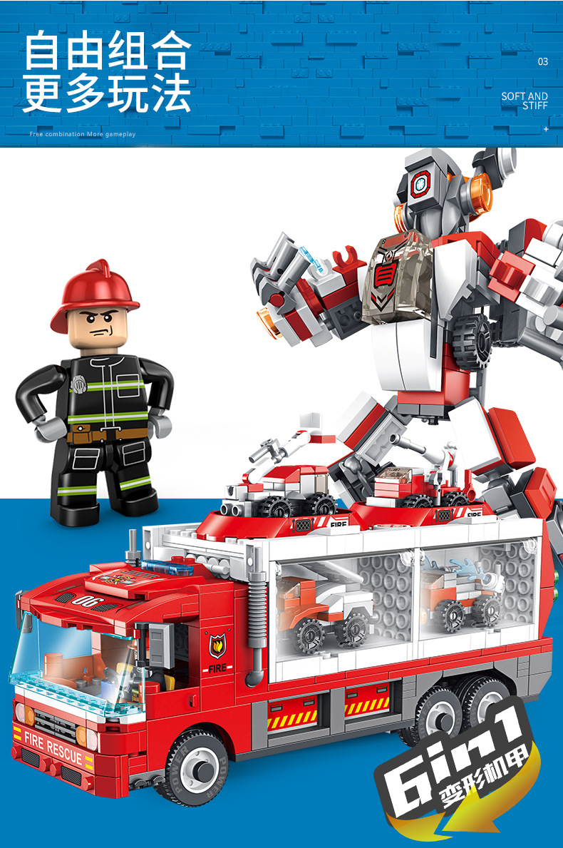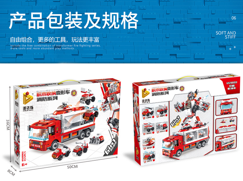 标题:潘洛斯工程消防警察军事积木变形收纳车兼容乐高男孩拼装积木玩具