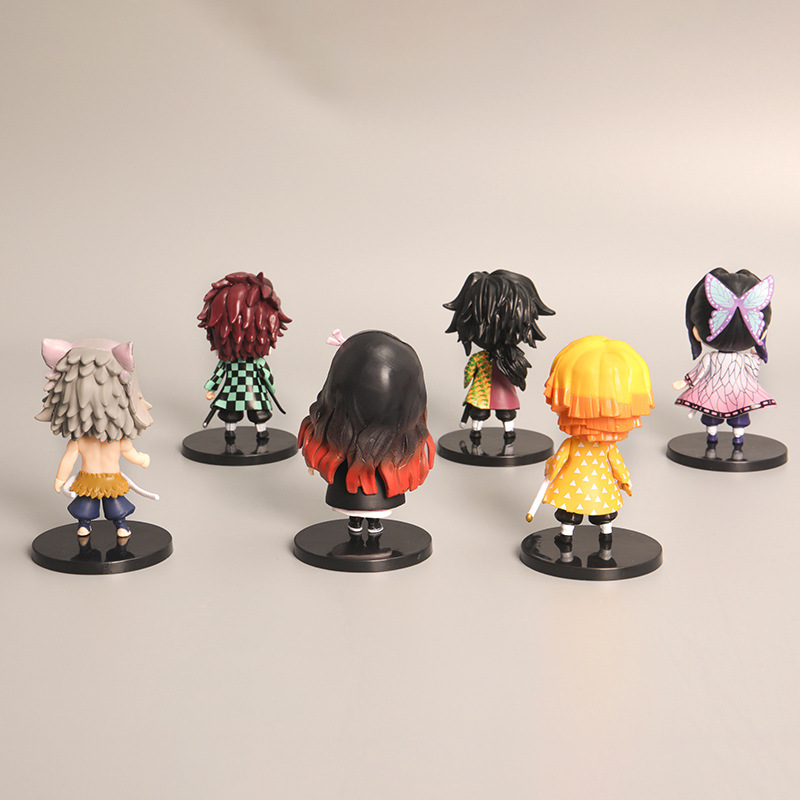 标题:6 Ghost Slayer Figures Anime Cartoon Tanjiro Nedouzi Shan Yi Yi Zhi Yi Yong Butterfly Ninja Doll Ornament