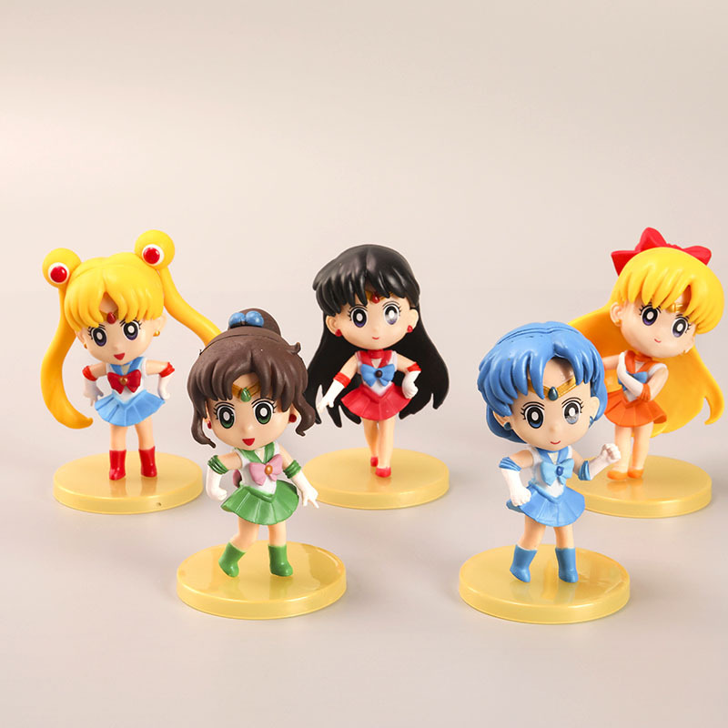 标题:5 beautiful warrior hand-made models anime surrounding cartoon ice moon hare toy doll cake decoration