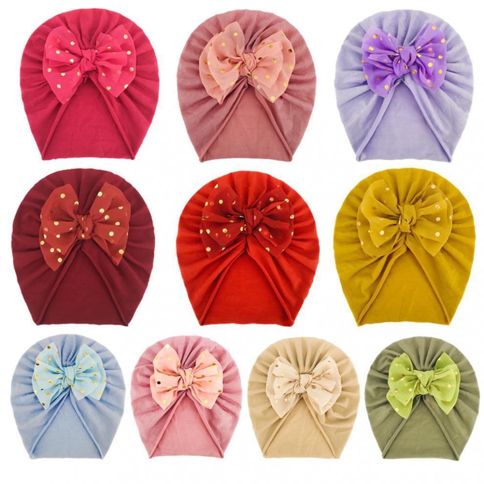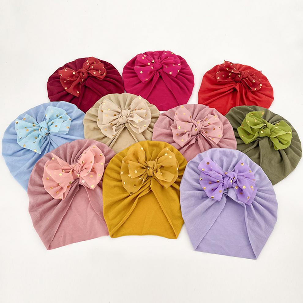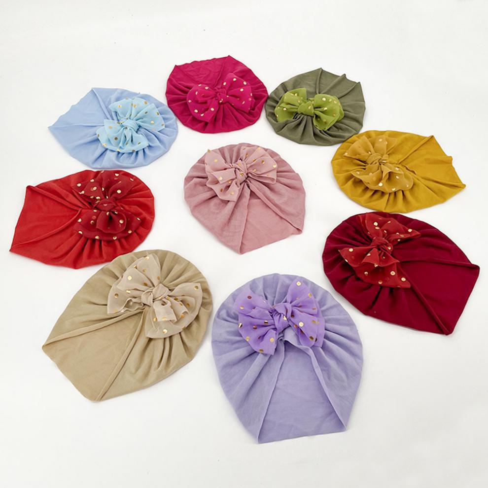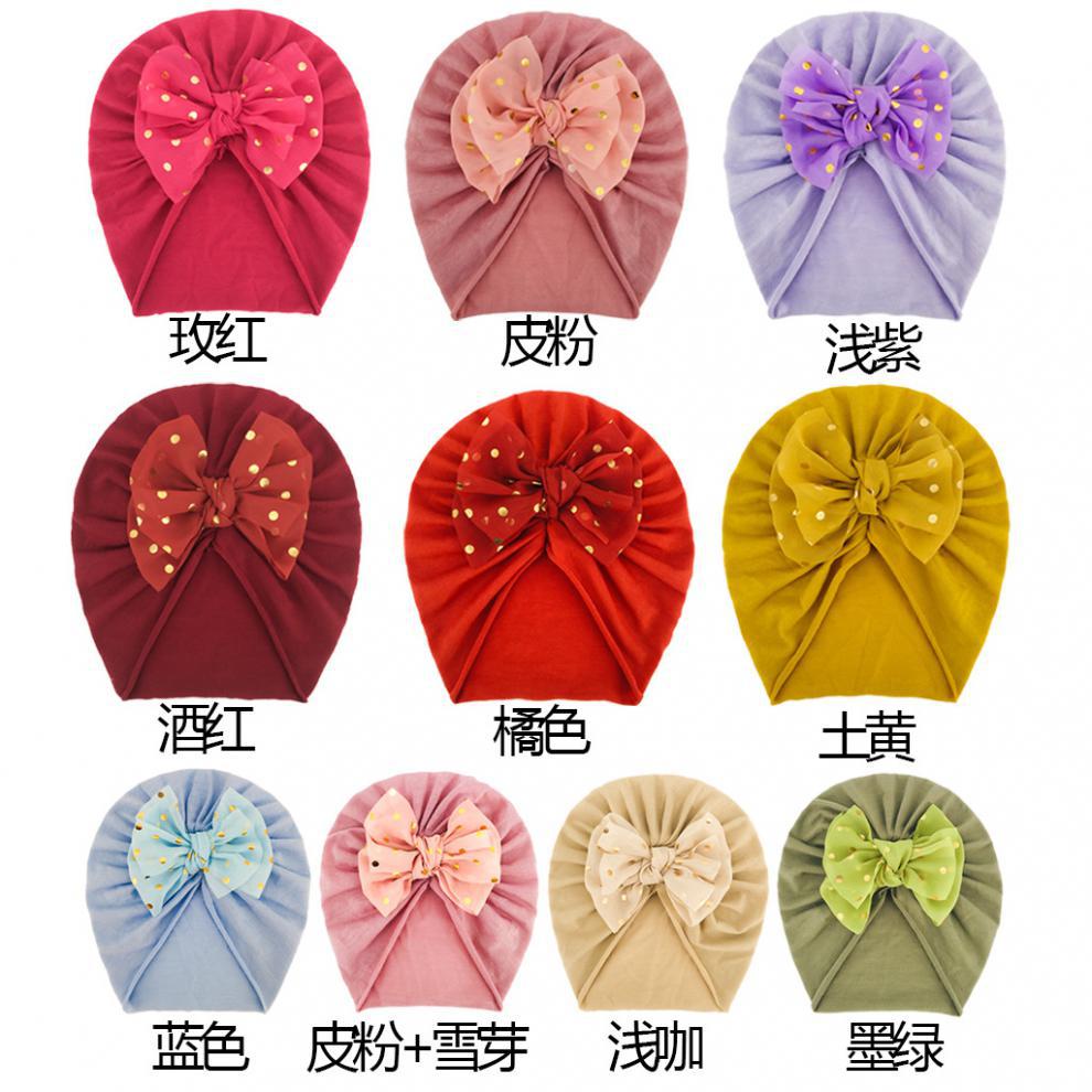 标题:2021 Europe and the United States new bronzing bow children's hat baby cute soft 10 color solid color headscarf