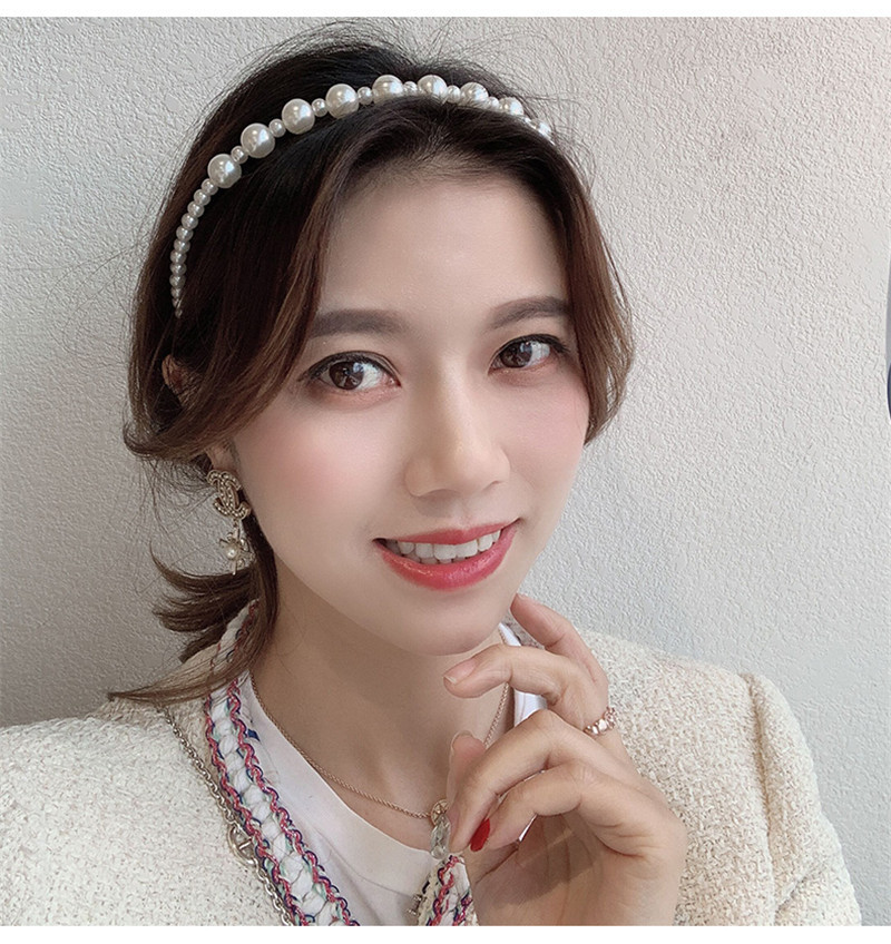 标题:European and American ladies pearl hair hoop temperament elegant pressure hair headwear super fairy net red bride hair ornaments retro headband women