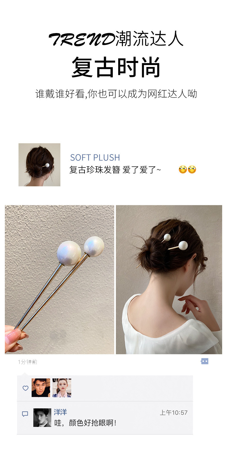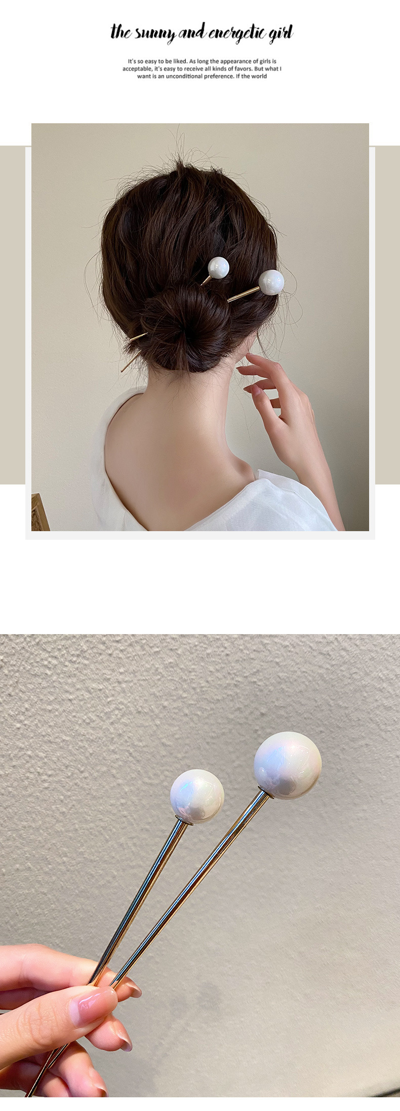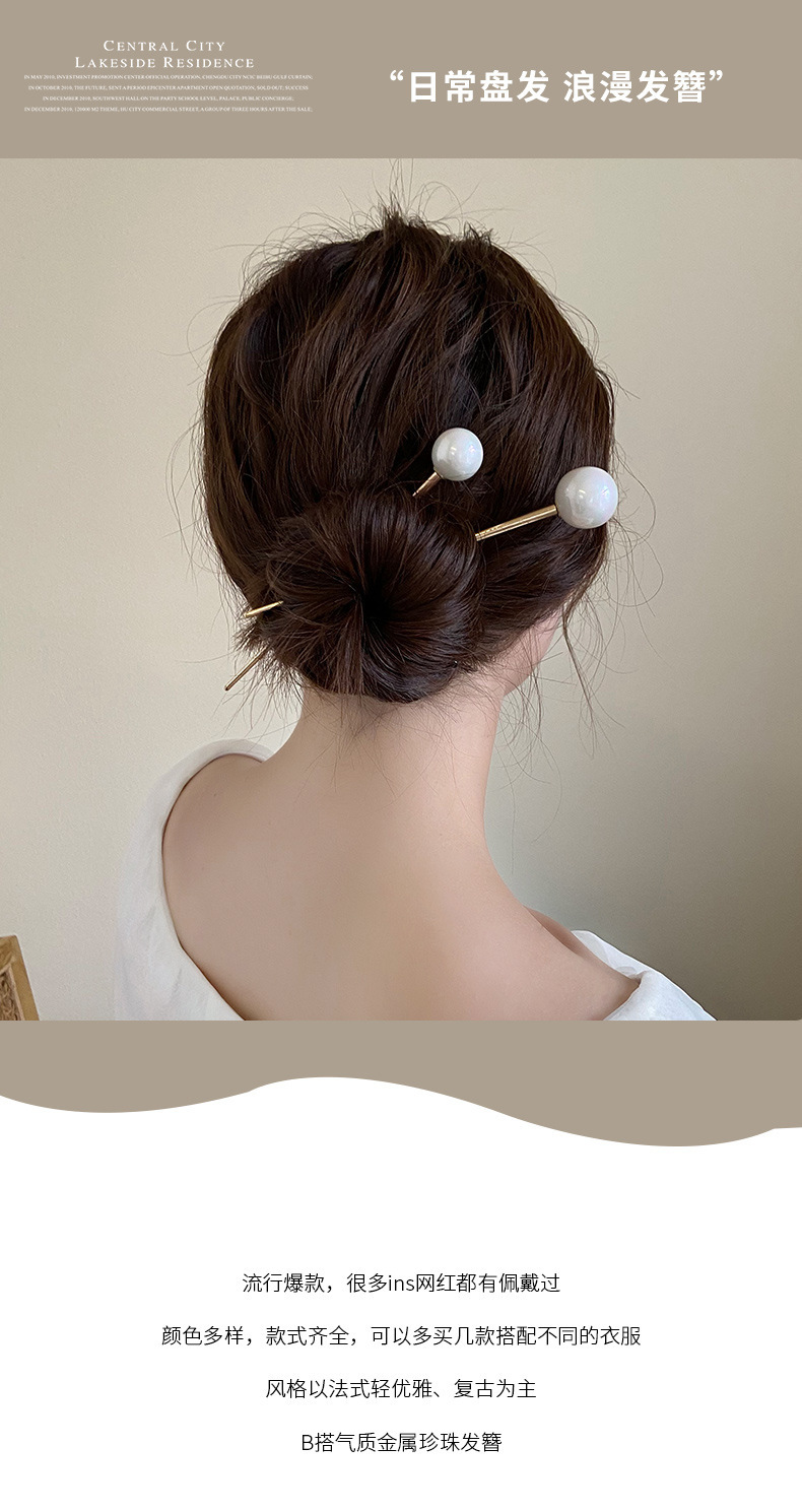 标题:Korean retro one-word hairpin metal pearl design temperament versatile simple modern daily hair dressing