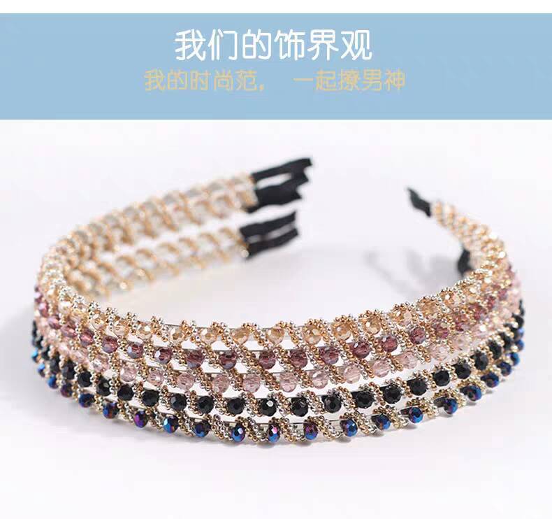 标题:South Korea fashion crystal hair hoop adult simple pressure hair non-slip hair card temperament water diamond head hoop wash face head hoop