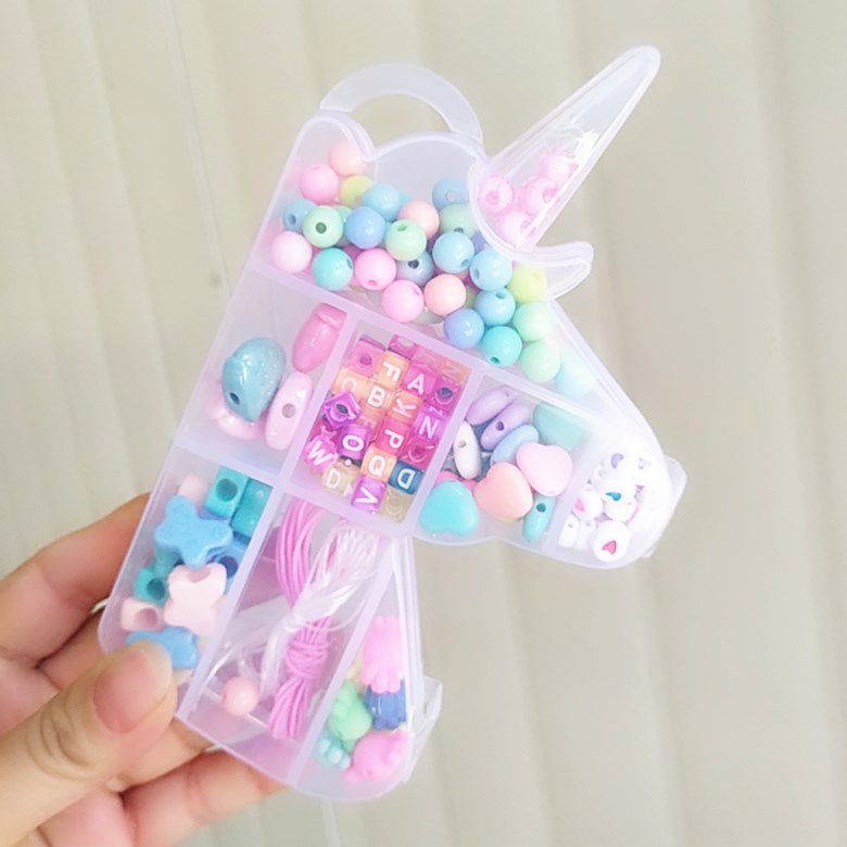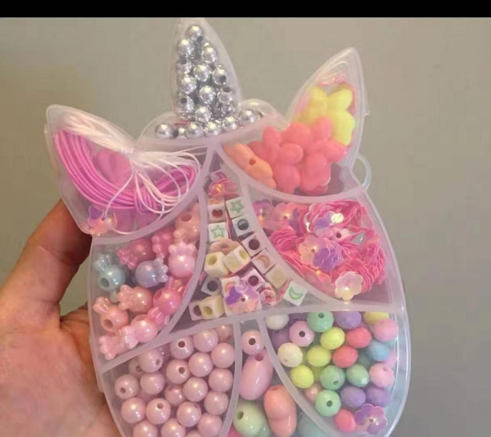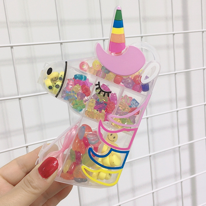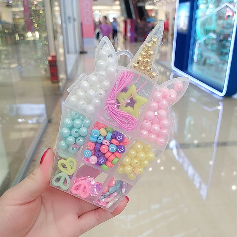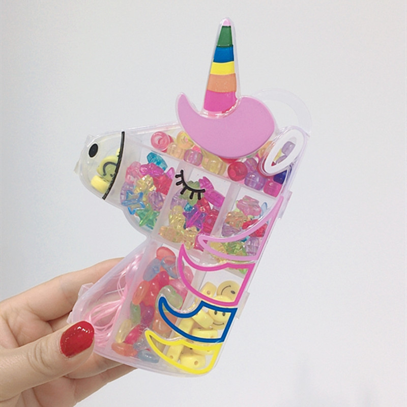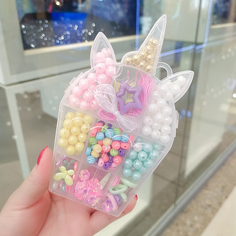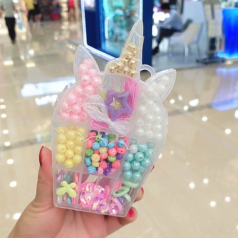 标题:Children's DIY hand necklace Girl beaded children's candy colored Unicorn bracelet necklace set gift box