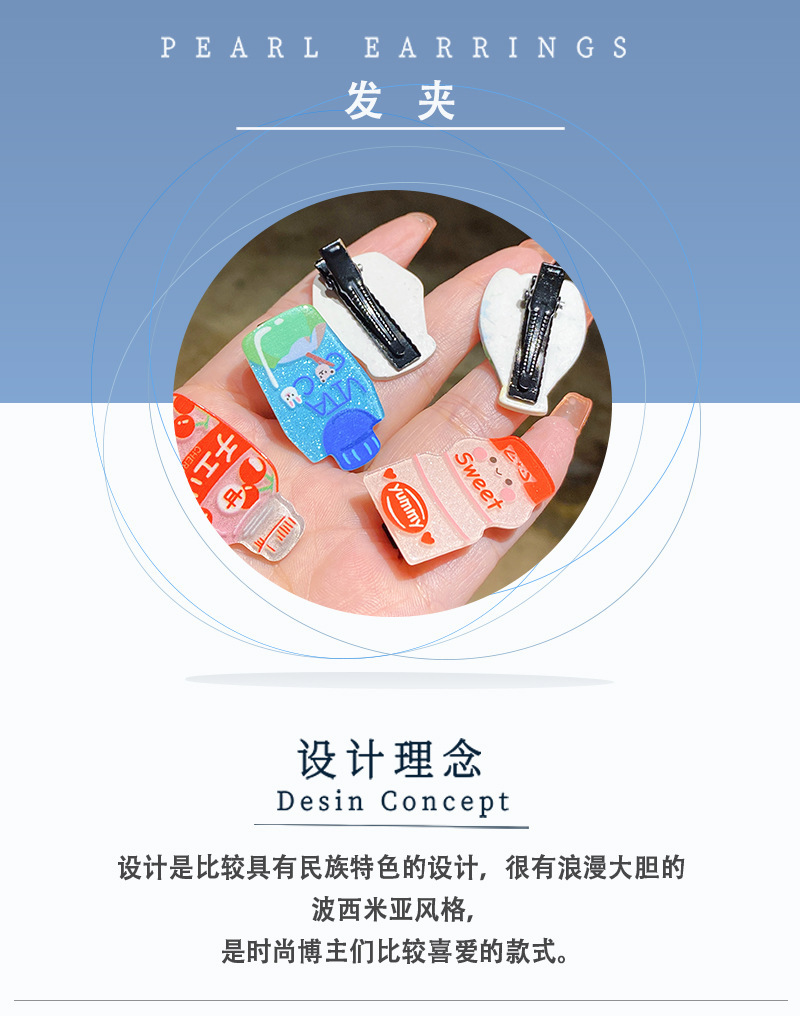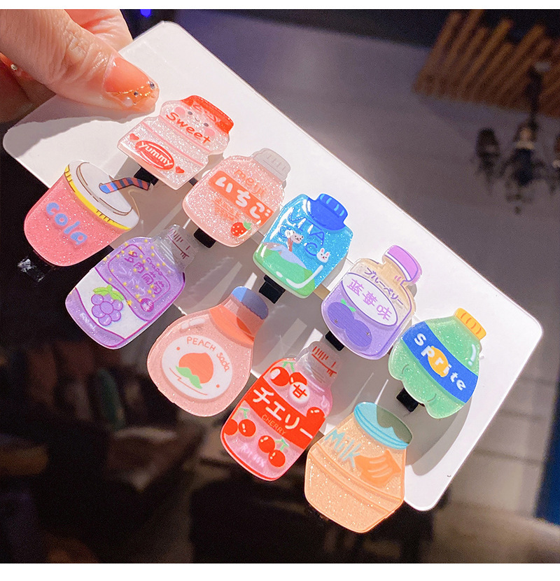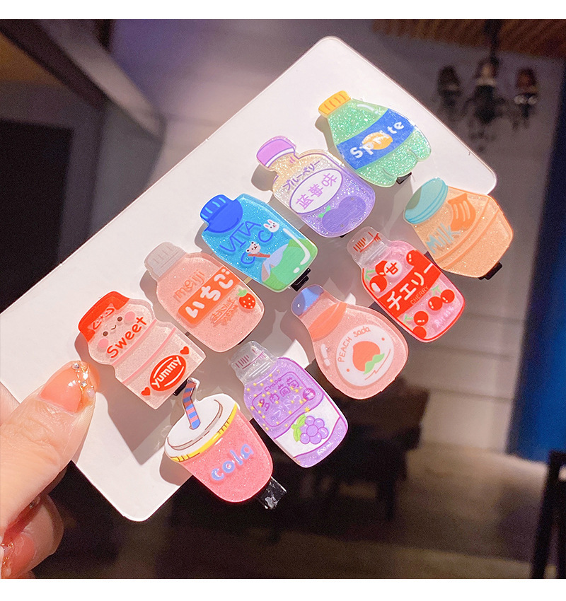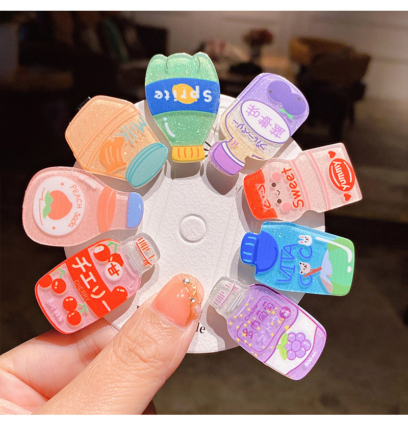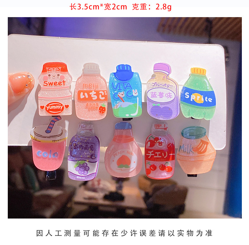 标题:Cute cartoon beverage bottle hairpin girls do not hurt hair baby clip headdress hairpin broken hair duck clip