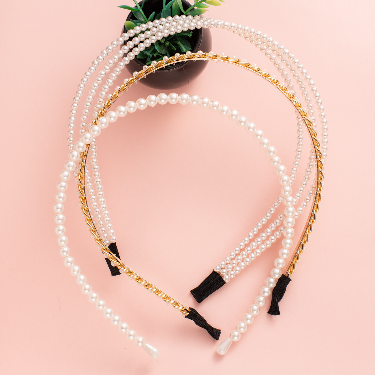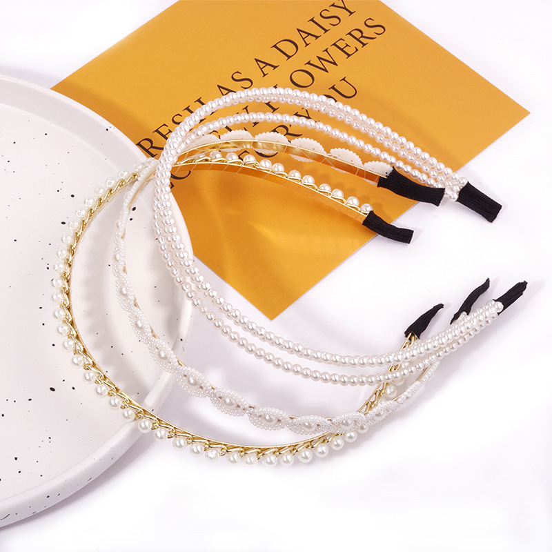 标题:Retro simple and versatile pearl headband headband combination pressure hair card lady temperament hair band Korean girl hair accessories