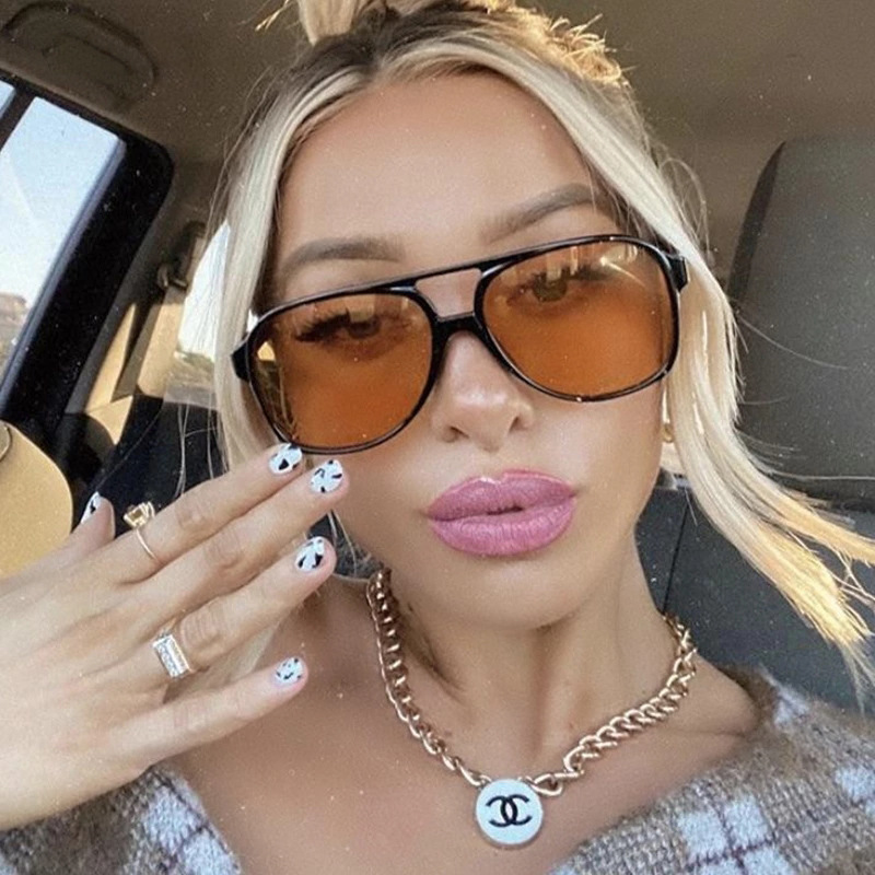 标题:New glasses trend retro double beam sunglasses ins ocean piece personality big frame net red sunglasses