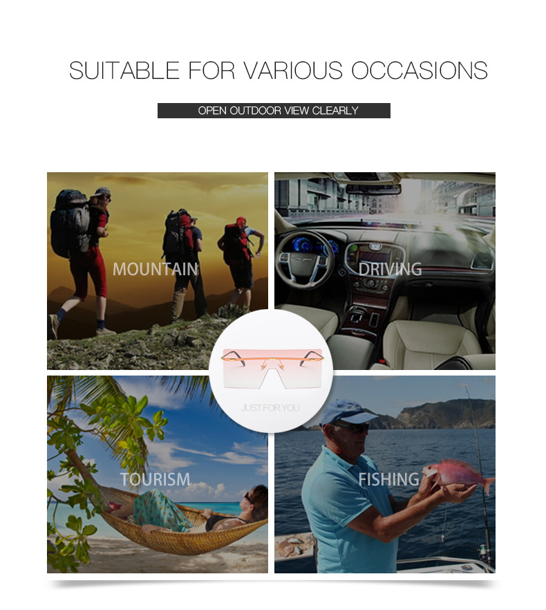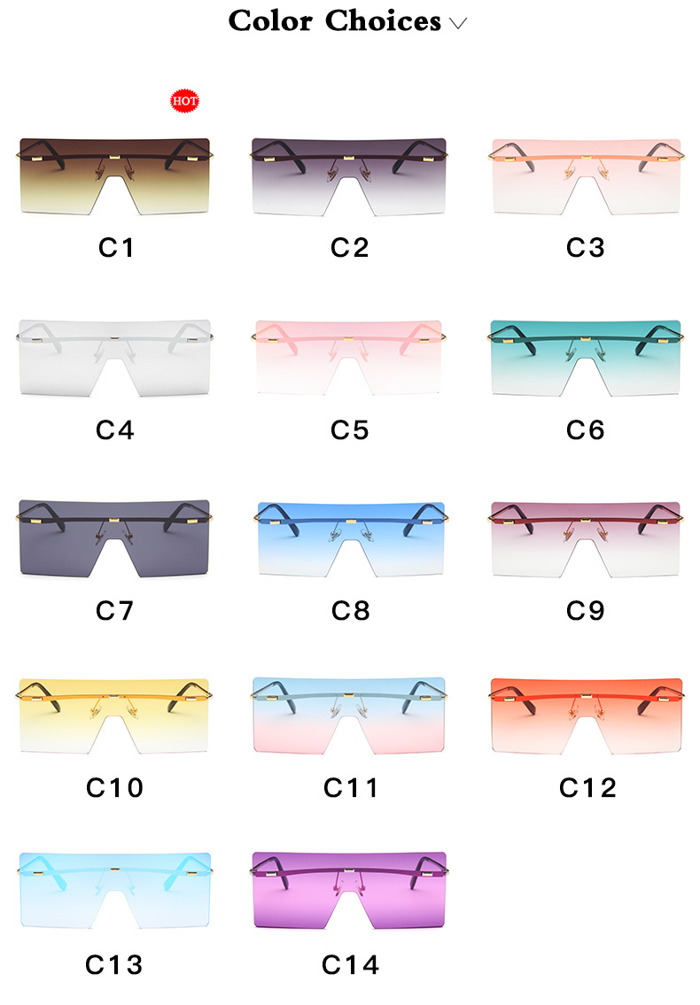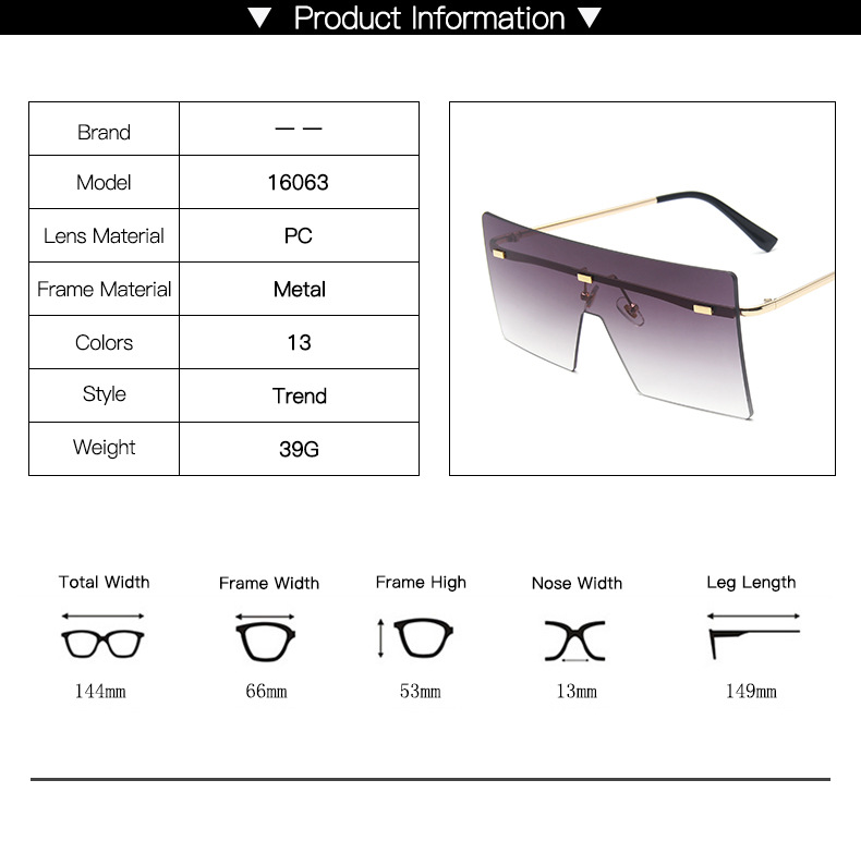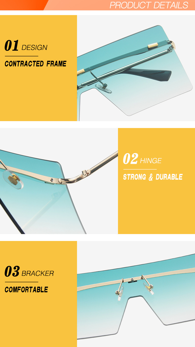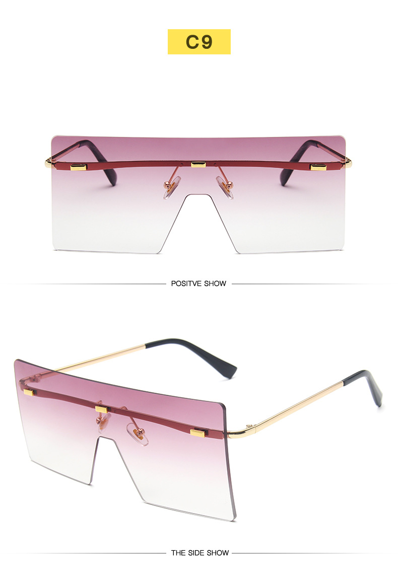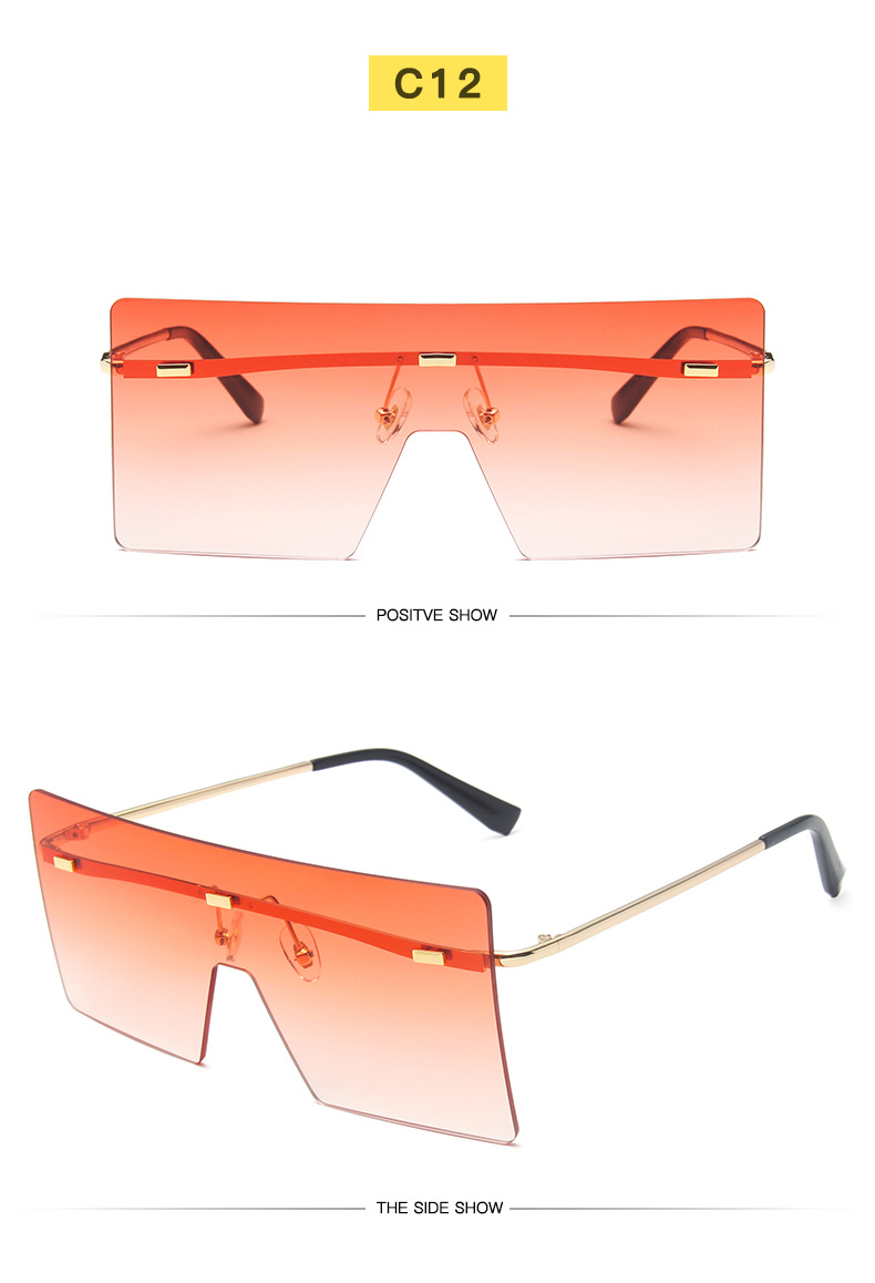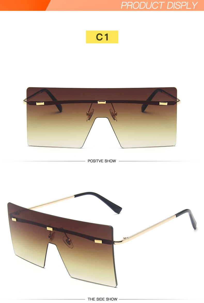 标题:Fashion big frame one-piece sunglasses female square frameless ocean piece sunglasses male personality street shooting glasses