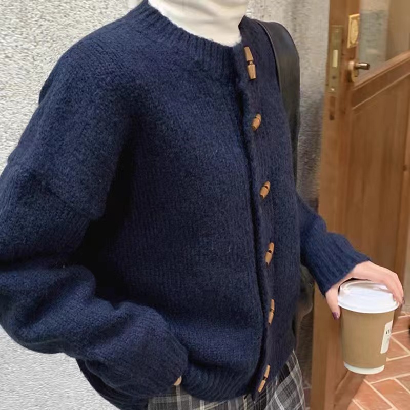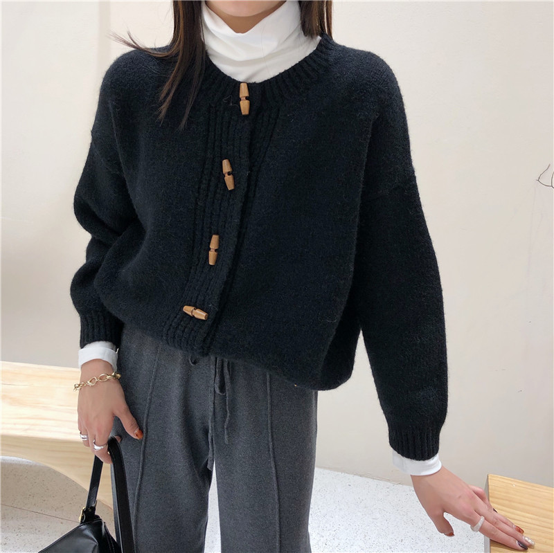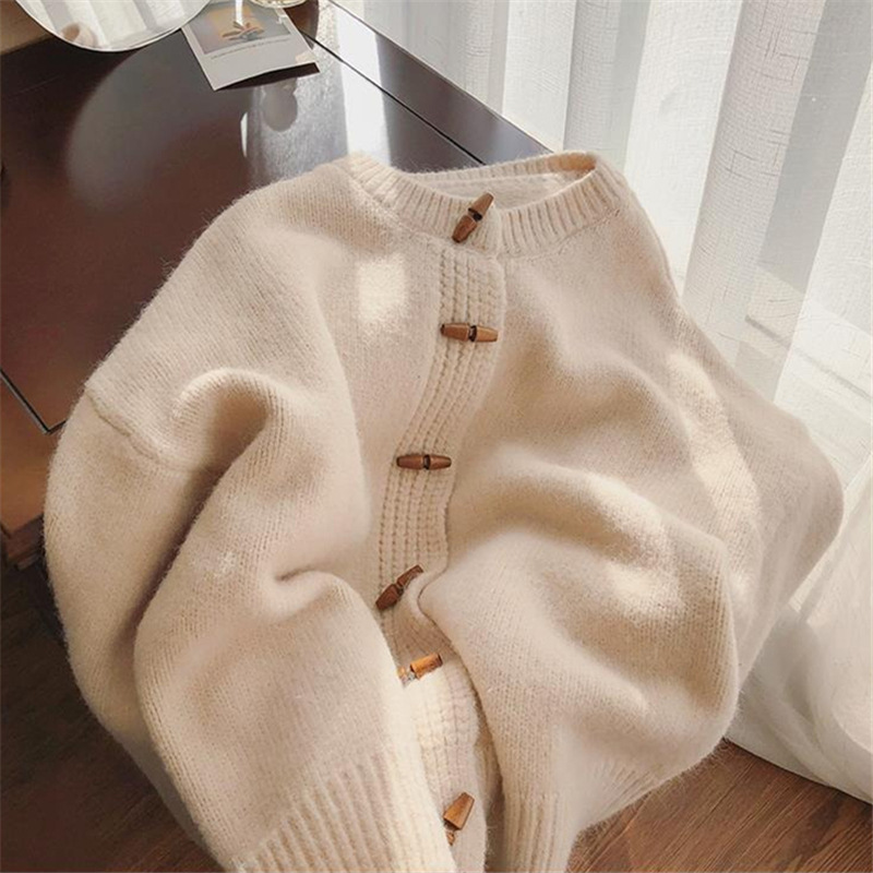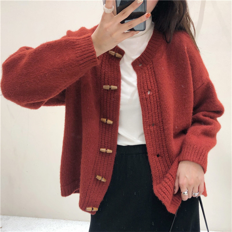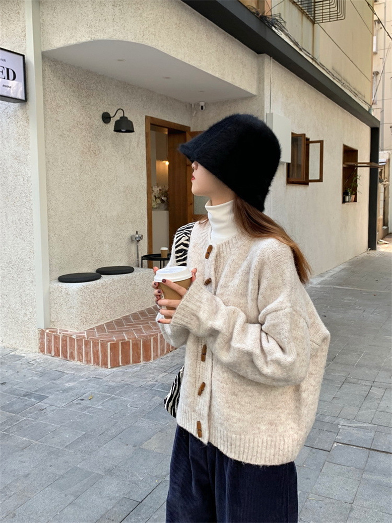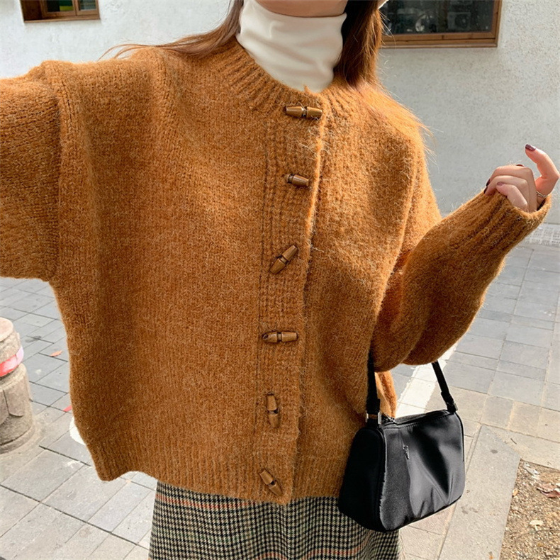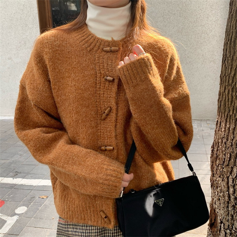 标题:ニットカーディガン ヴィンテージソリッドカラーカウルネックジャンパージャケット女性新しい緩いラウンドネックニットカーディガン