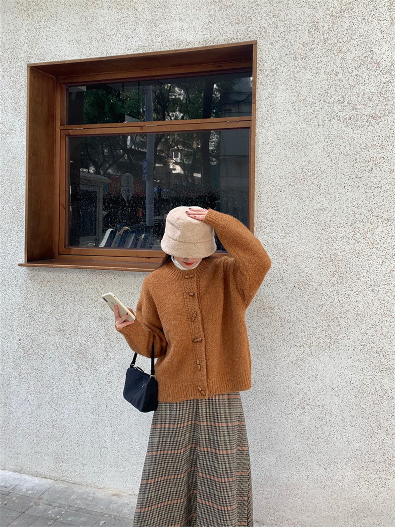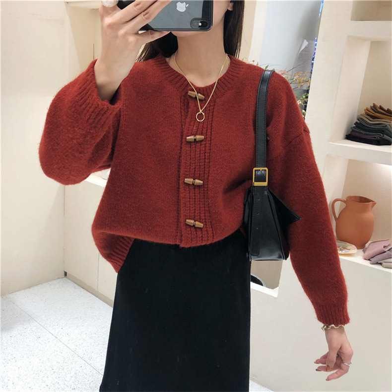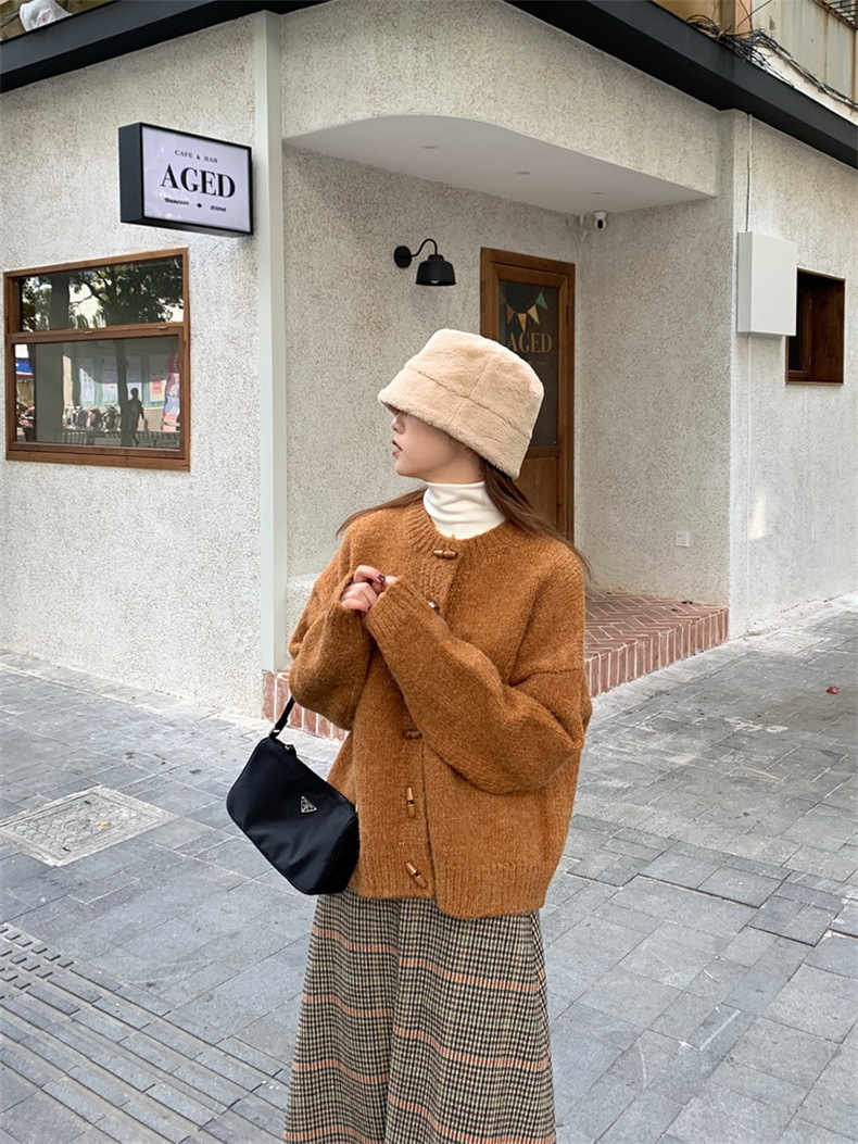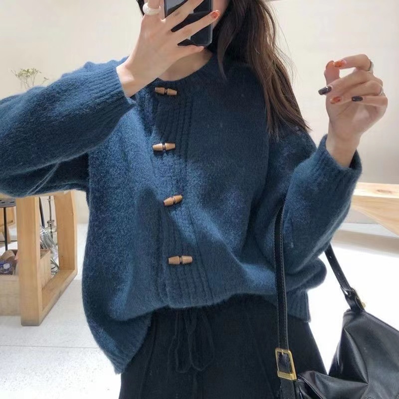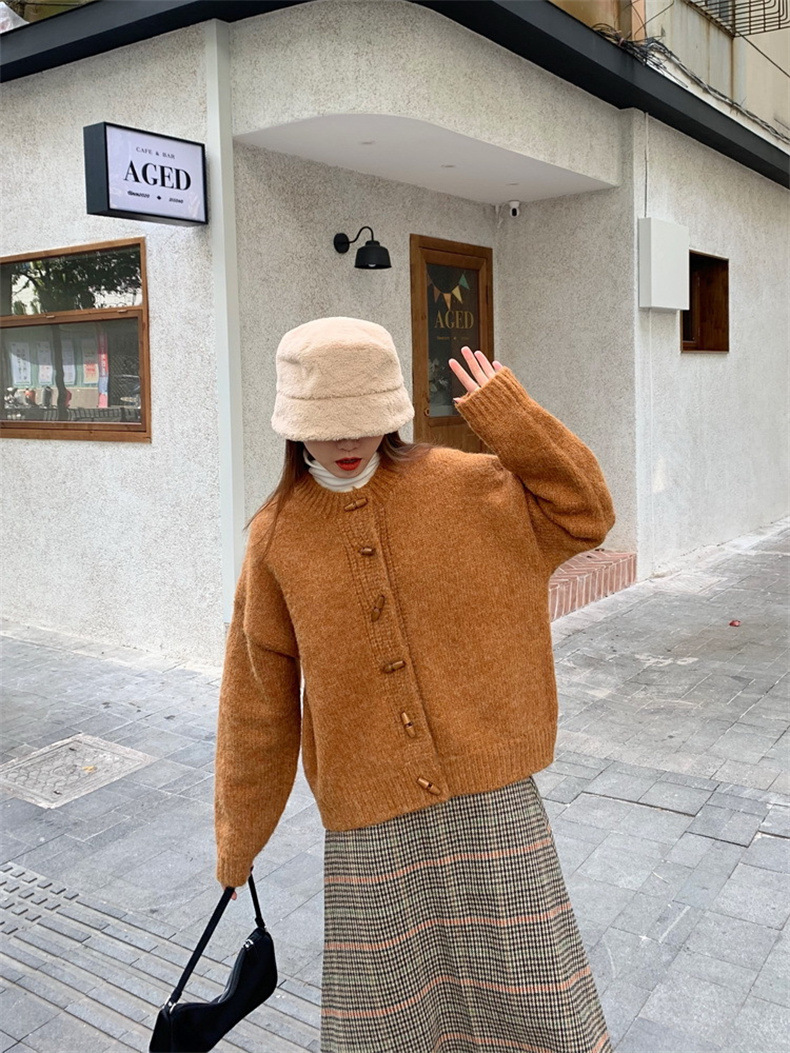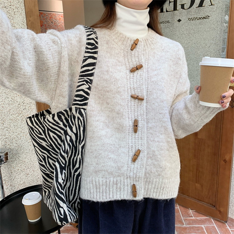 标题:ニットカーディガン ヴィンテージソリッドカラーカウルネックジャンパージャケット女性新しい緩いラウンドネックニットカーディガン