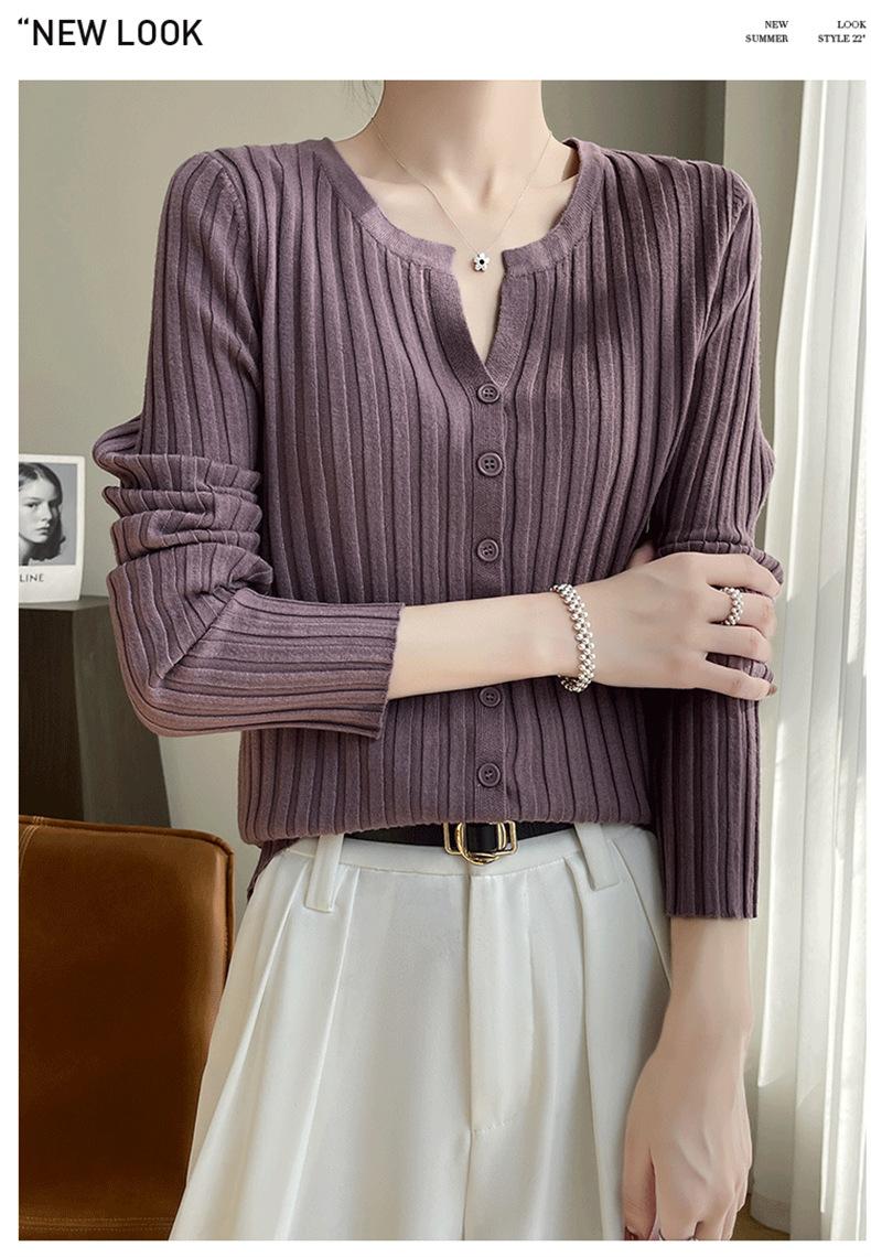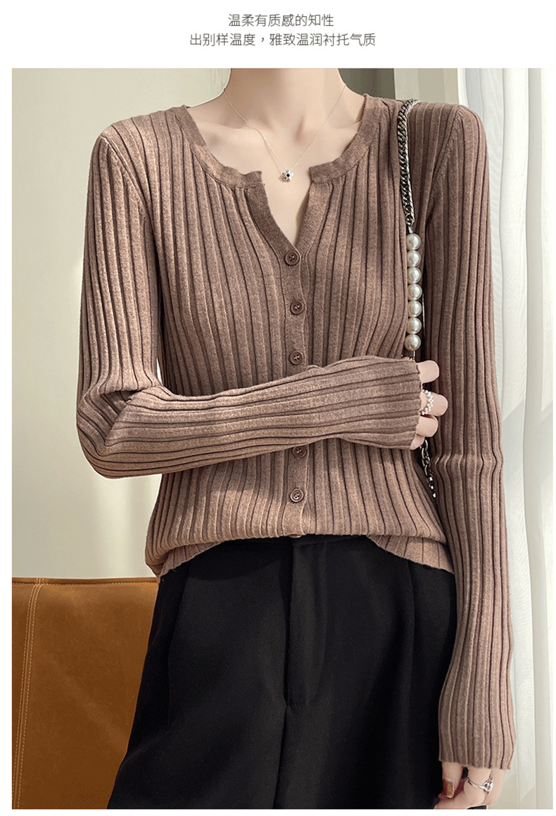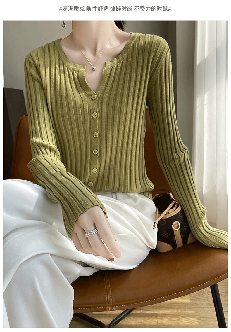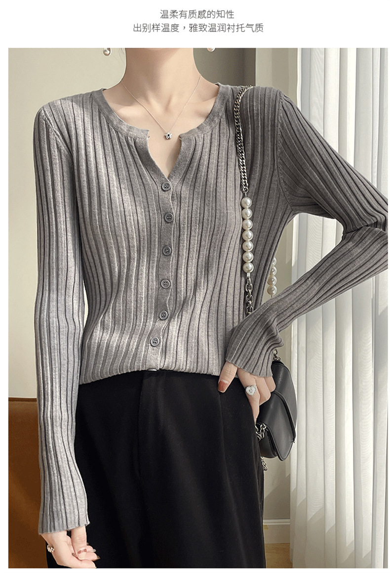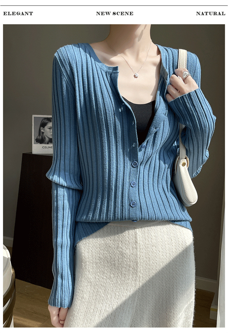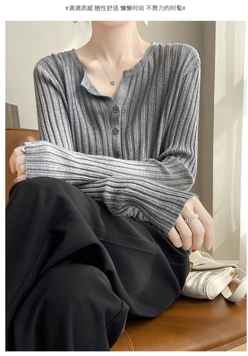 标题:ニットカーディガン ラウンドネックワイドストライプニットカーディガンアウター女性ジャンパーの2024新しいニットセーター韓国語バージョン