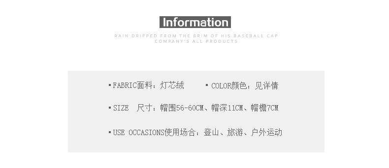 标题:キャップ帽子女性秋と冬コーデュロイ アヒル舌キャップ屋外旅行日よけ野球帽