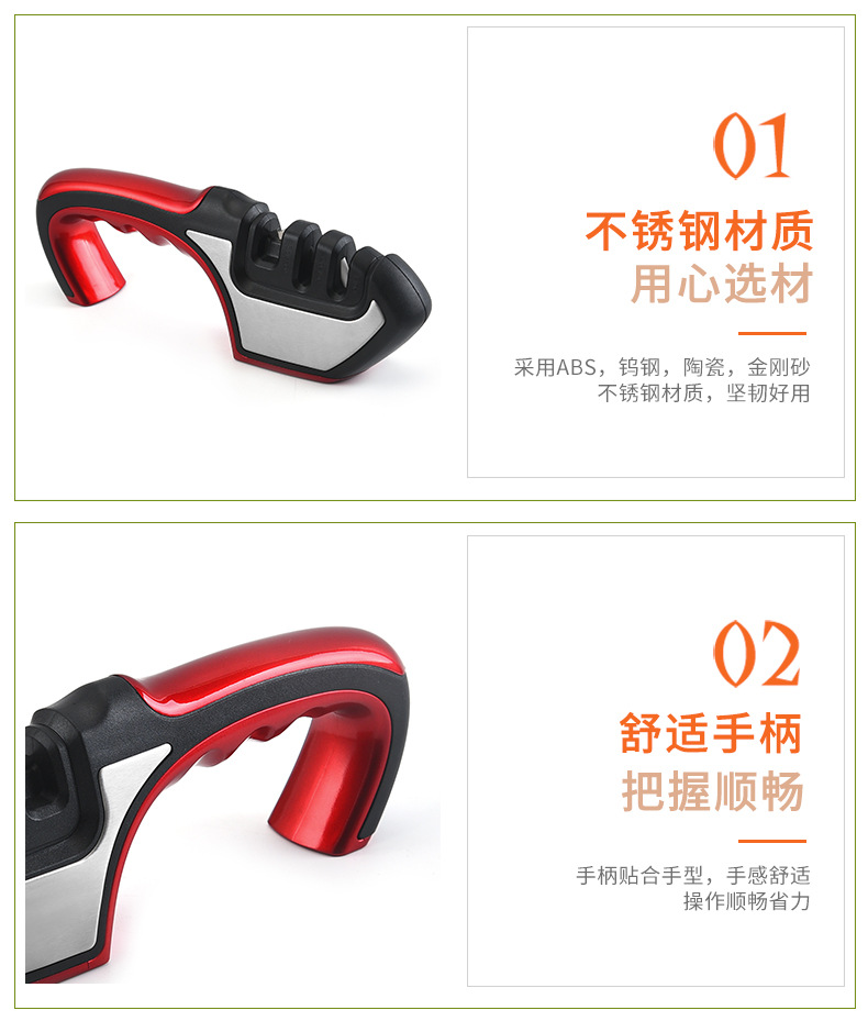 标题:家用磨刀器钨钢金刚石磨刀工具厨房定角磨刀石 三段快速磨刀器