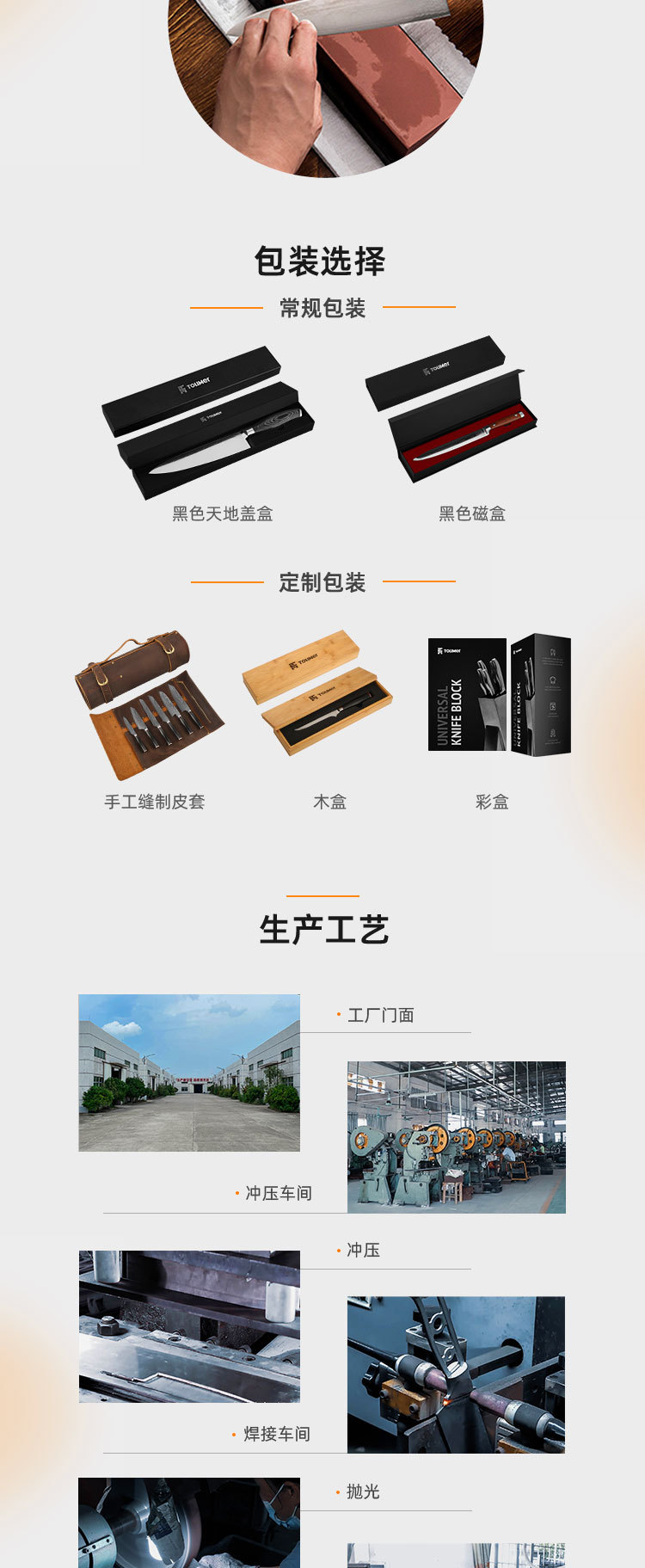 描述:产品类别:鱼生刀,是否进口:否,品牌:Tolimer,货号:DK1011,材质:9CR15,产地:阳江,加印LOGO:可以,加工定制:是,是否有专利:否,规格:DK1011(不含盒),主要下游平台:速卖通,亚马逊,wish,ebay,LAZADA,独立站,主要销售地区:欧洲,北美,南美,东南亚,东北亚,中东,非洲,有可授权的自有品牌:是,是否跨境出口专供货源:是,刀尖角度:60°以上,刃长:28.5,刀身材质:9CR15,刀柄长:14,全刀长最大值:42.5,颜色:黑檀木,