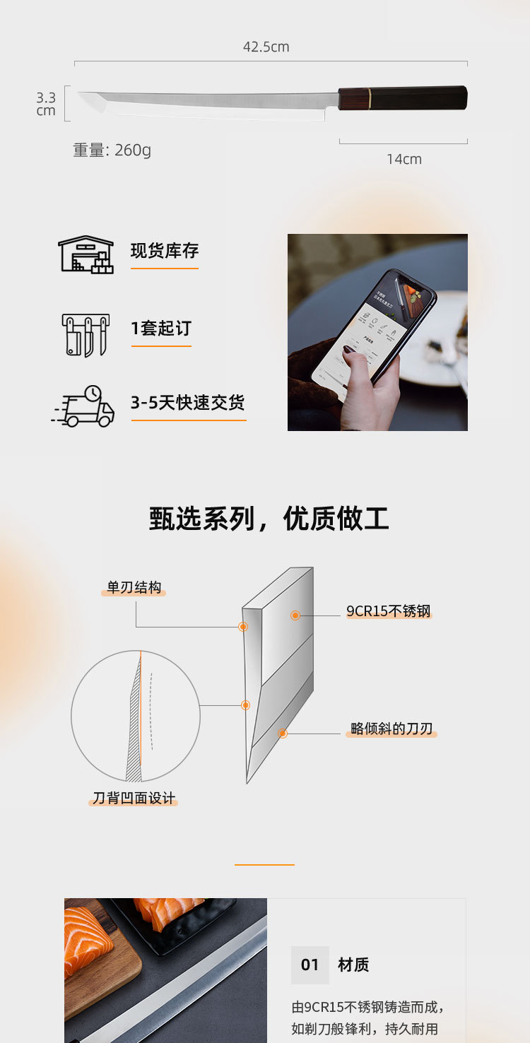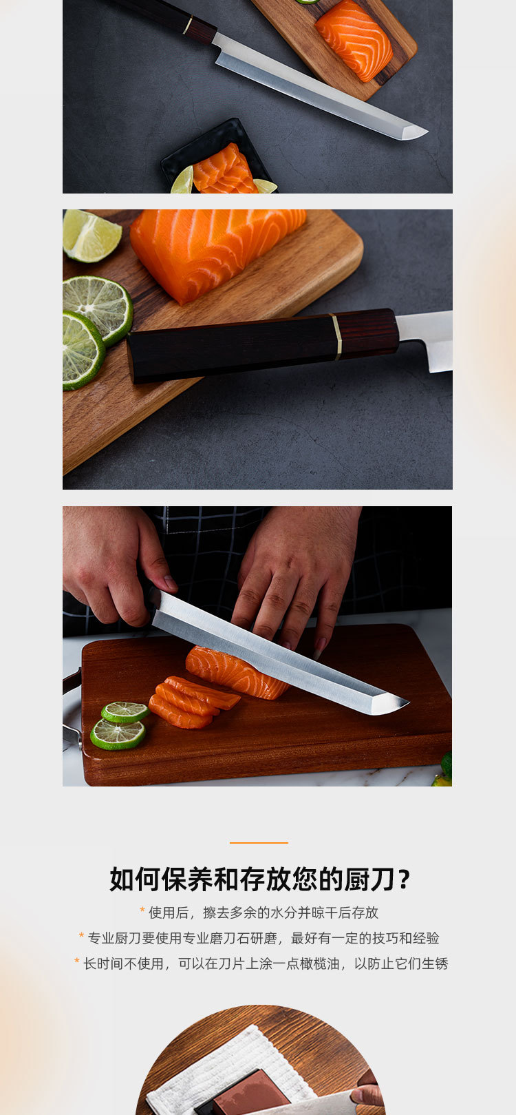 标题:跨境新款日式不锈钢鱼生刀刺身寿司刀厨房多用厨师刀切片刀刀具