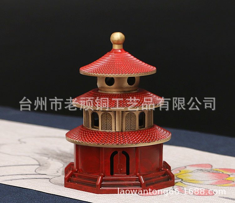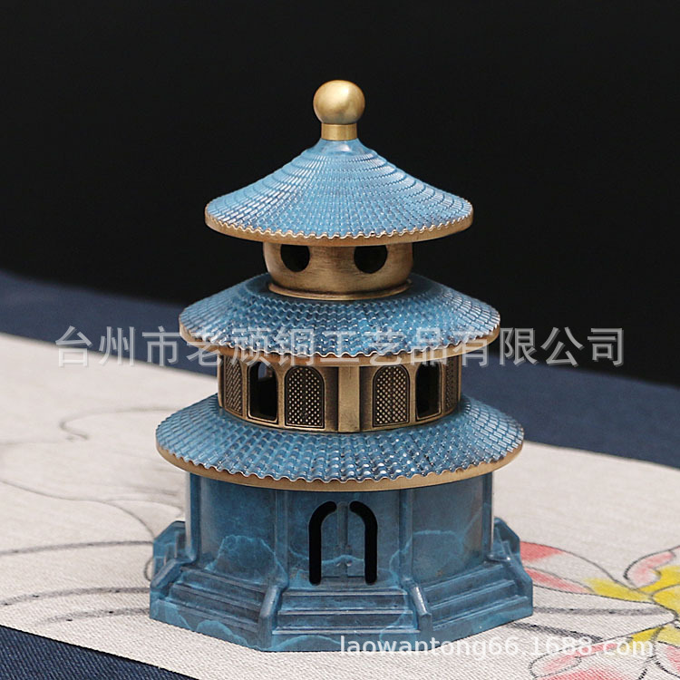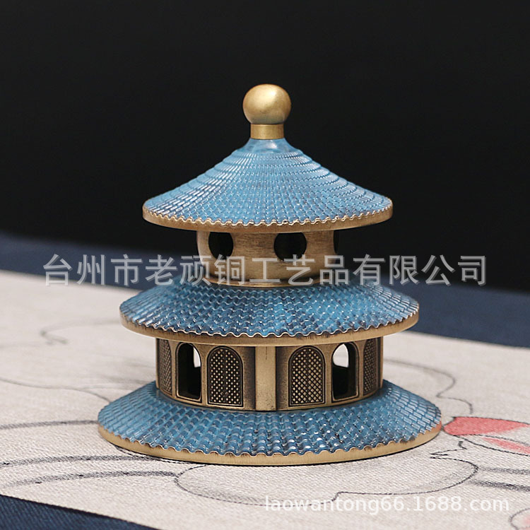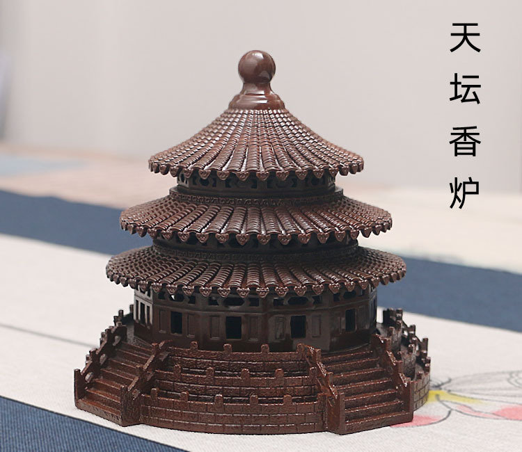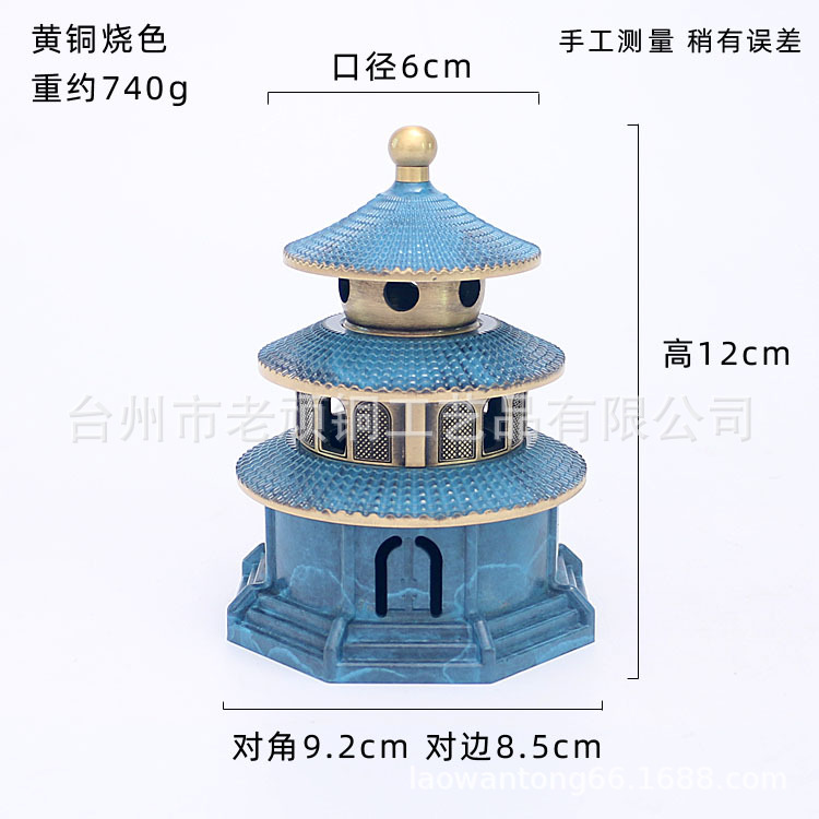 标题:小号烧色铜香炉批发家用室内檀香熏香炉中式古典《天坛》香炉摆件