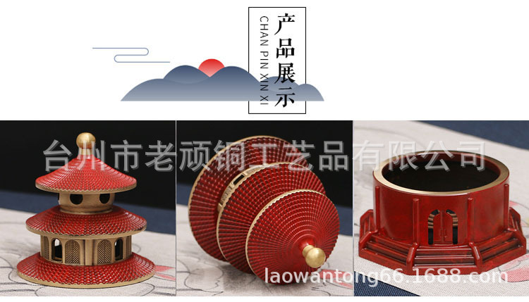 描述:材质:铜,货号:XL1253,产地:浙江,是否进口:否,产品编号:XL1253,工艺:半手工半机械,包装:纸盒包装,是否专利货源:否,品牌:飞云阁,规格:小号彩铜天坛香炉-典雅蓝,小号彩铜天坛香炉-富贵红,主要下游平台:ebay,亚马逊,wish,速卖通,LAZADA,主要销售地区:欧洲,南美,东南亚,北美,东北亚,中东,有可授权的自有品牌:是,是否跨境出口专供货源:是,风格:中式,