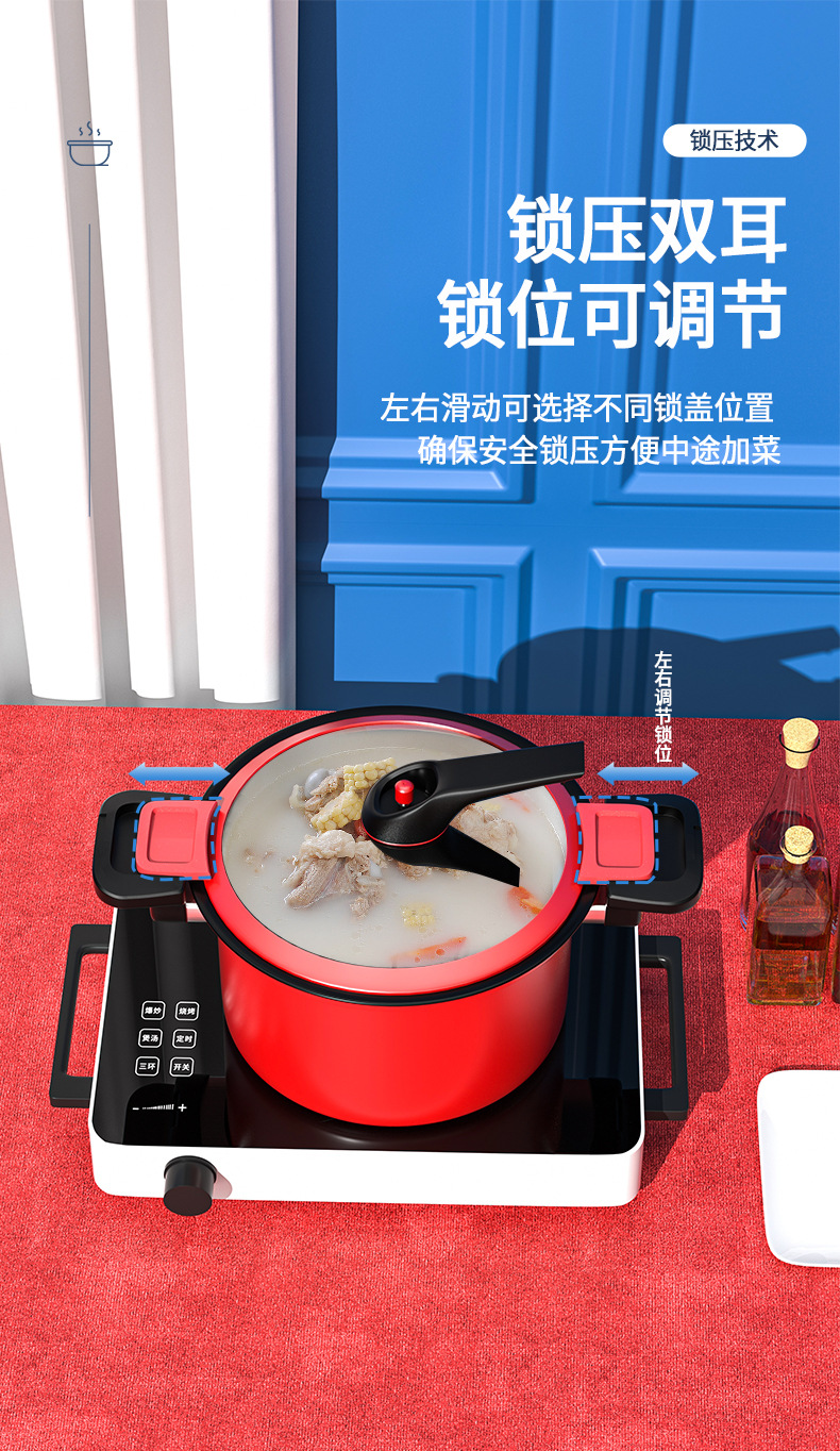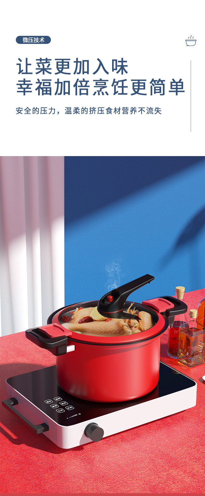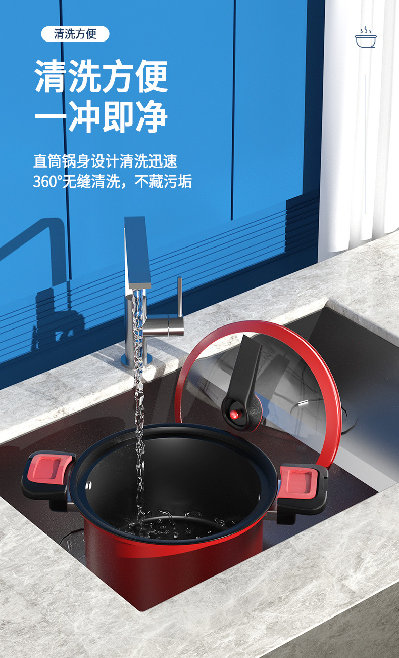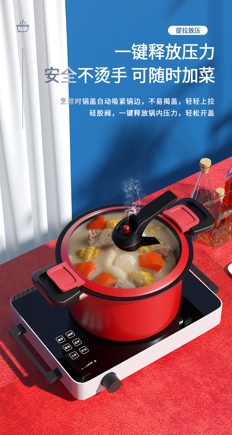 标题:工厂新款直销欧比尼第三代真空微麦饭石高压不粘锅燃气电磁炉通用