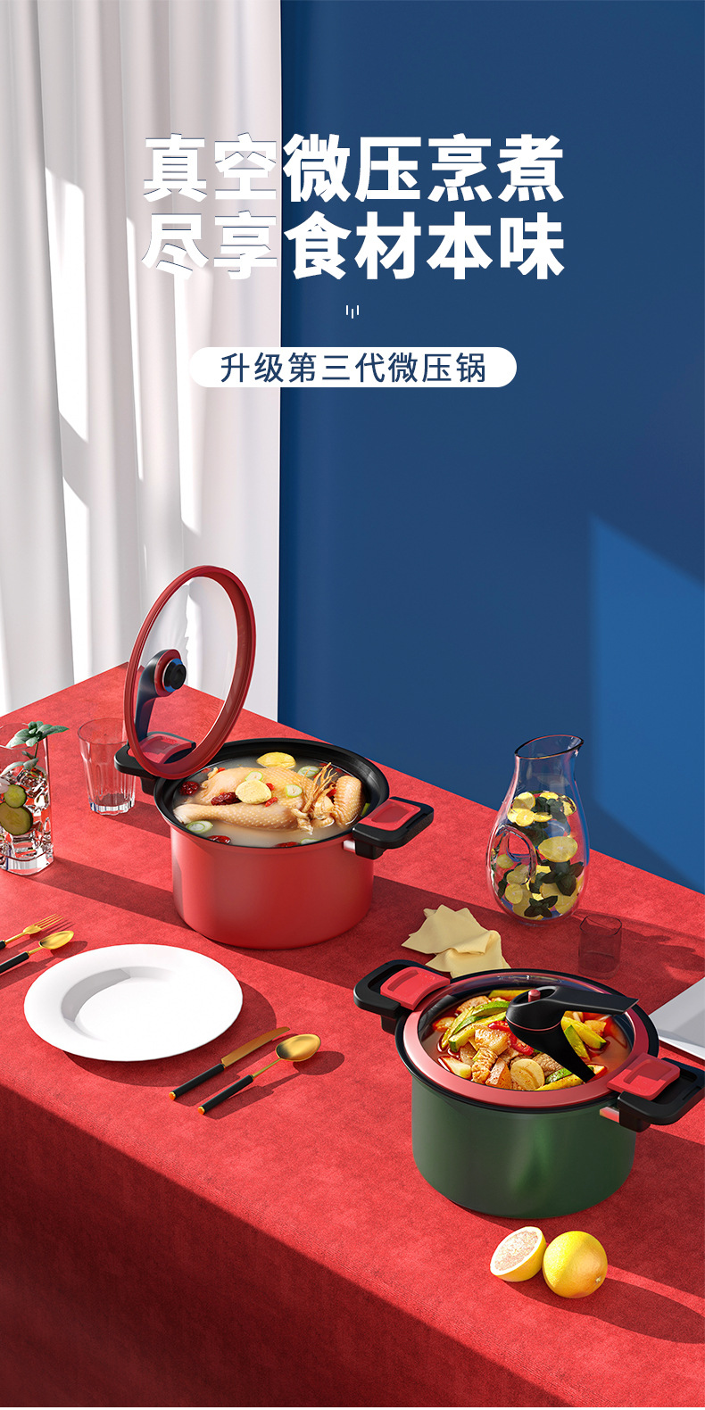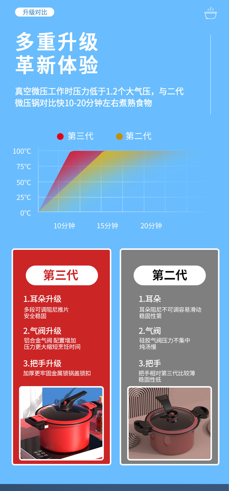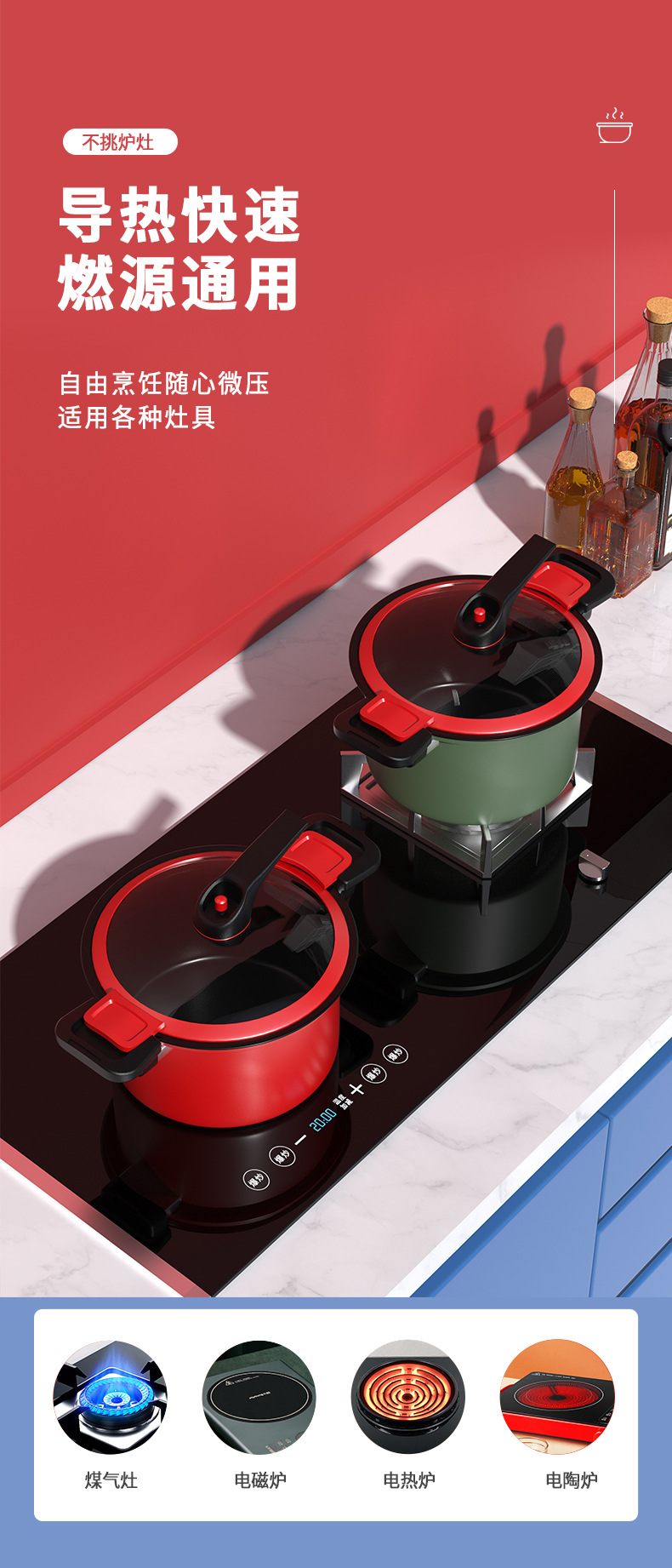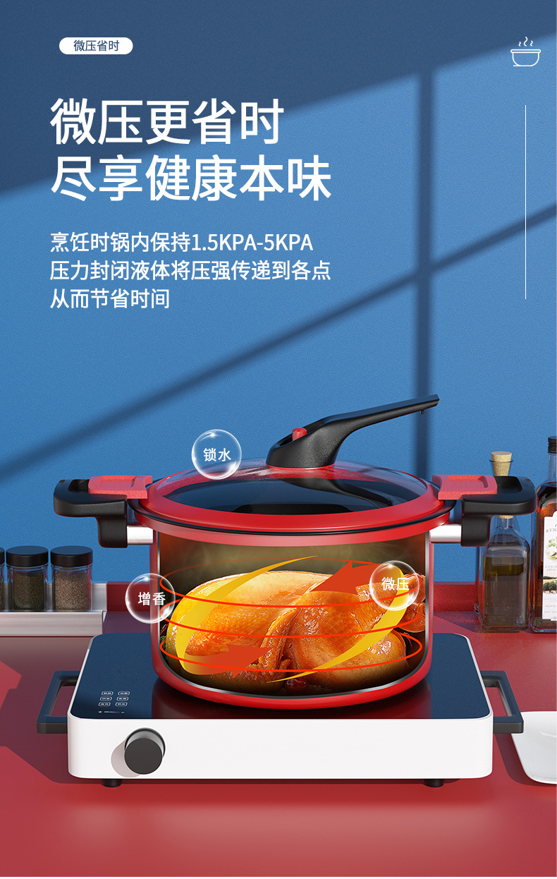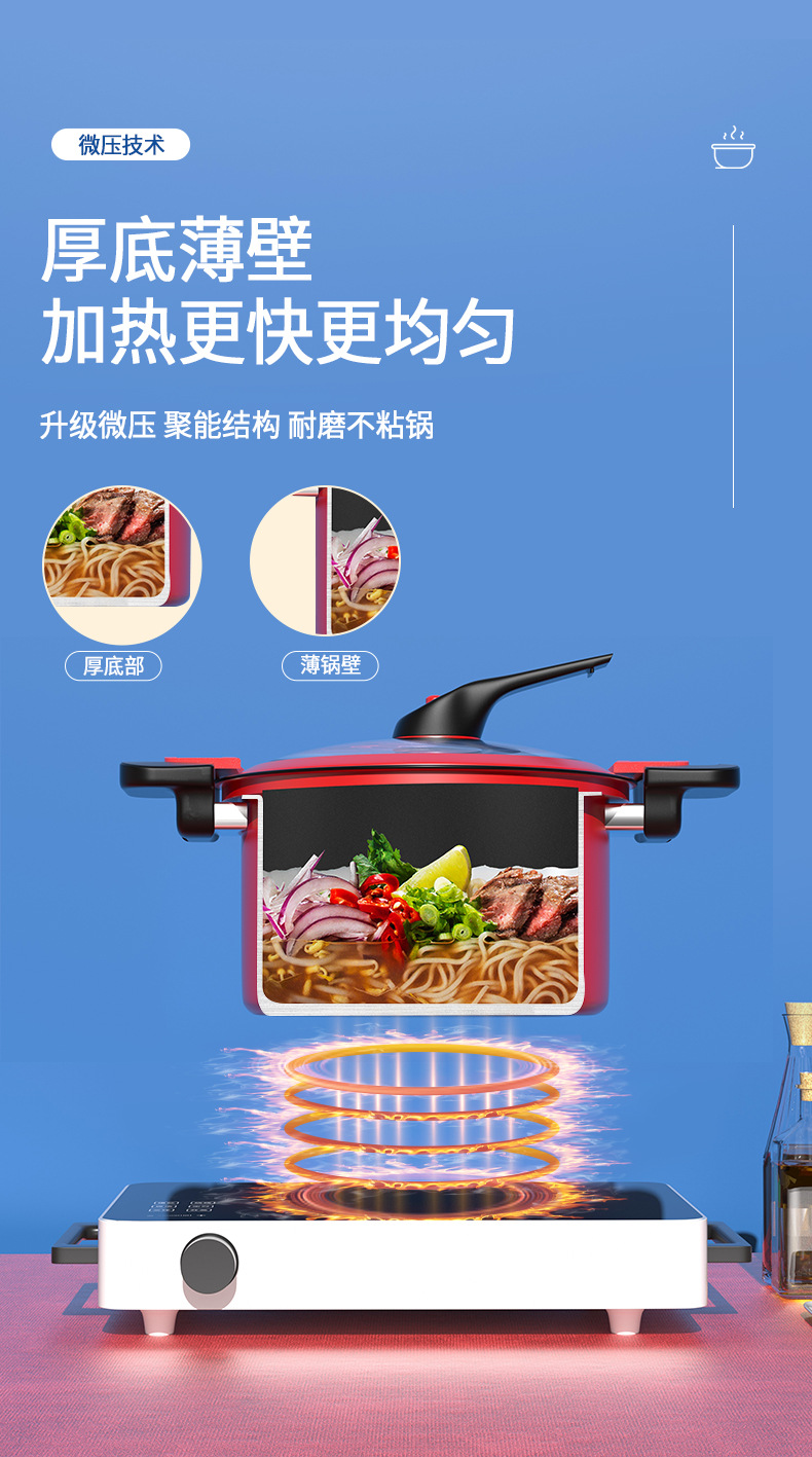 标题:新款三代微压锅焖烧一体压力锅3.5升汤锅炖煮锅5升燃气电磁炉通用