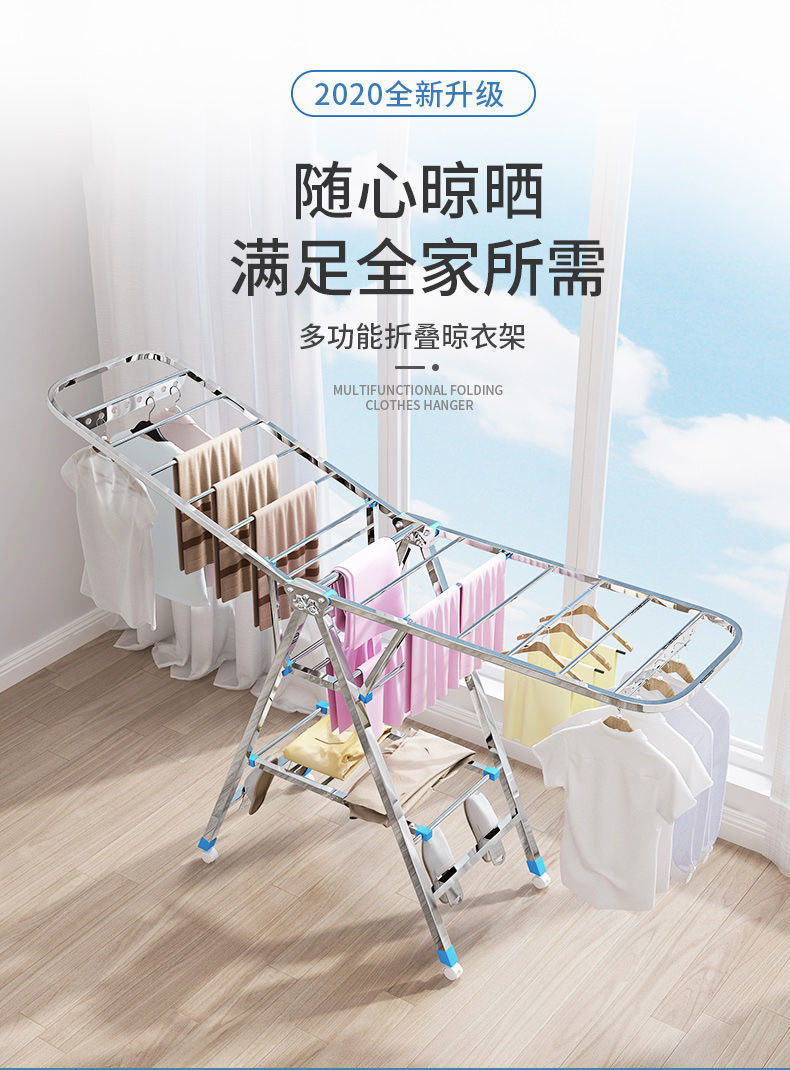 标题:不锈钢晾衣架落地折叠卧室内阳台凉衣架家用婴儿晾衣架晒被子神器