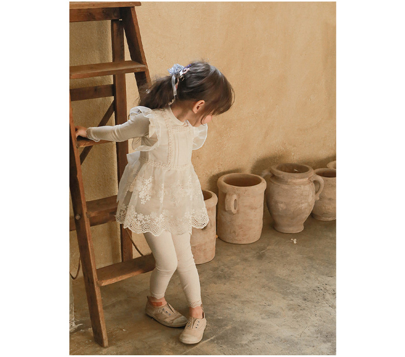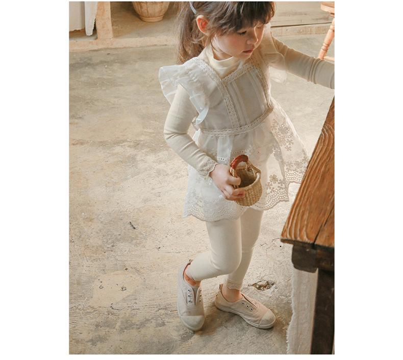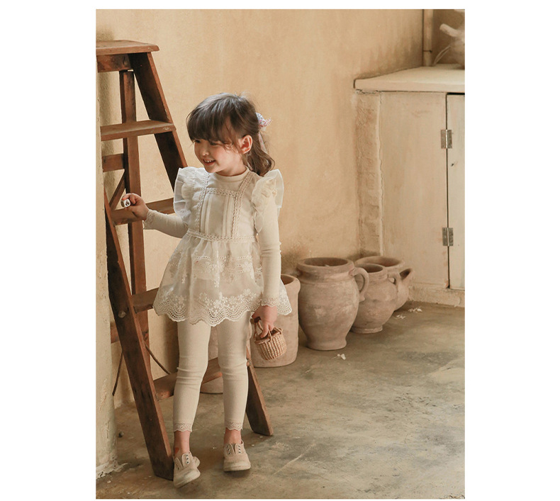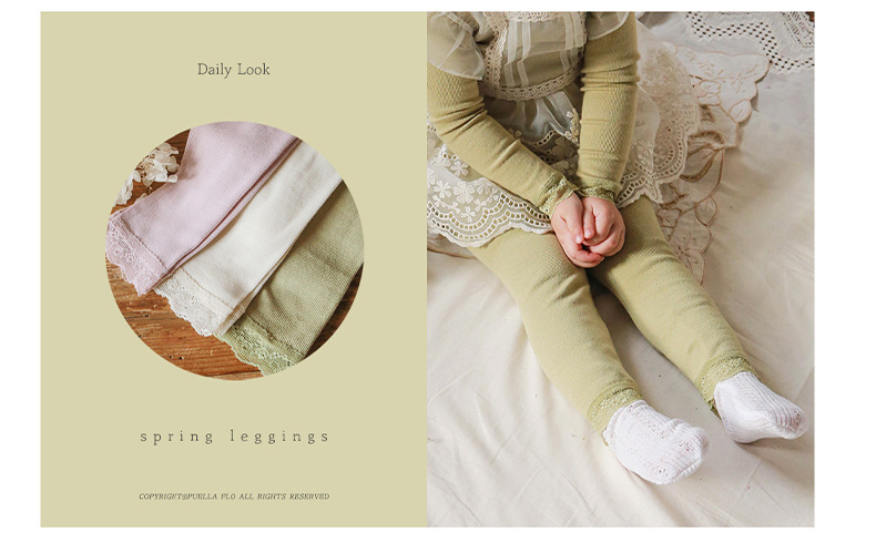 标题:女童打底裤2022春款草莓珊韩国童装女孩舒适蕾丝边弹力打底裤现货