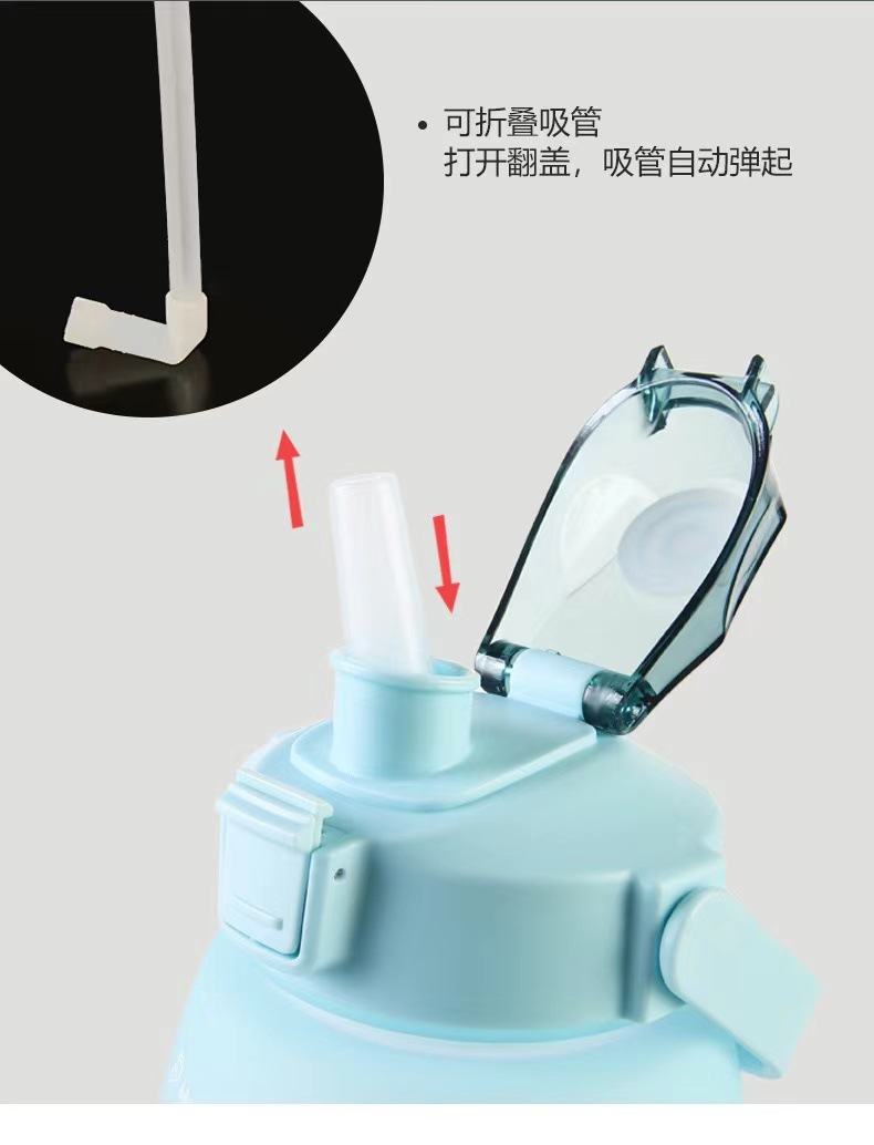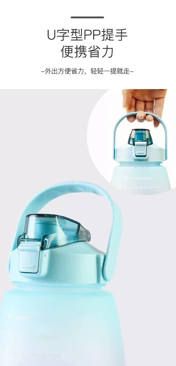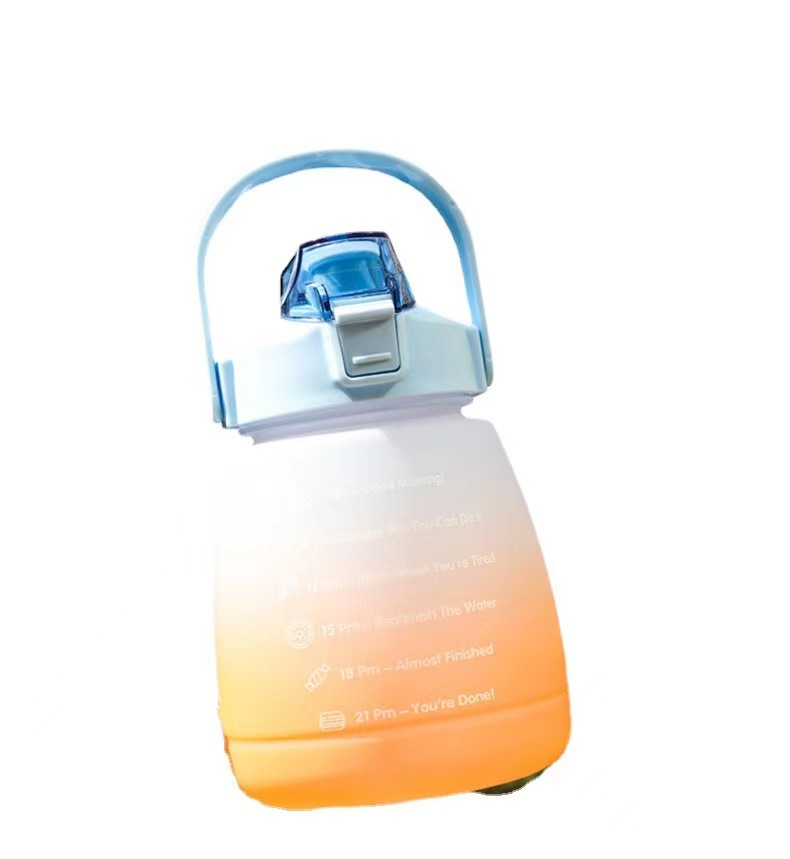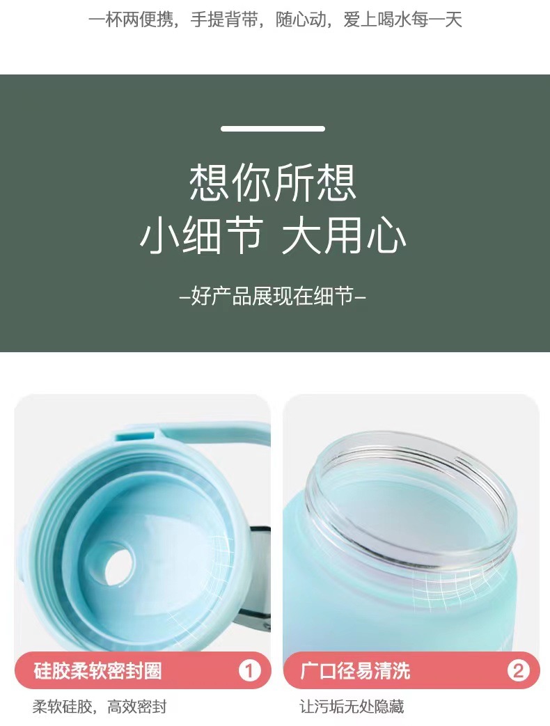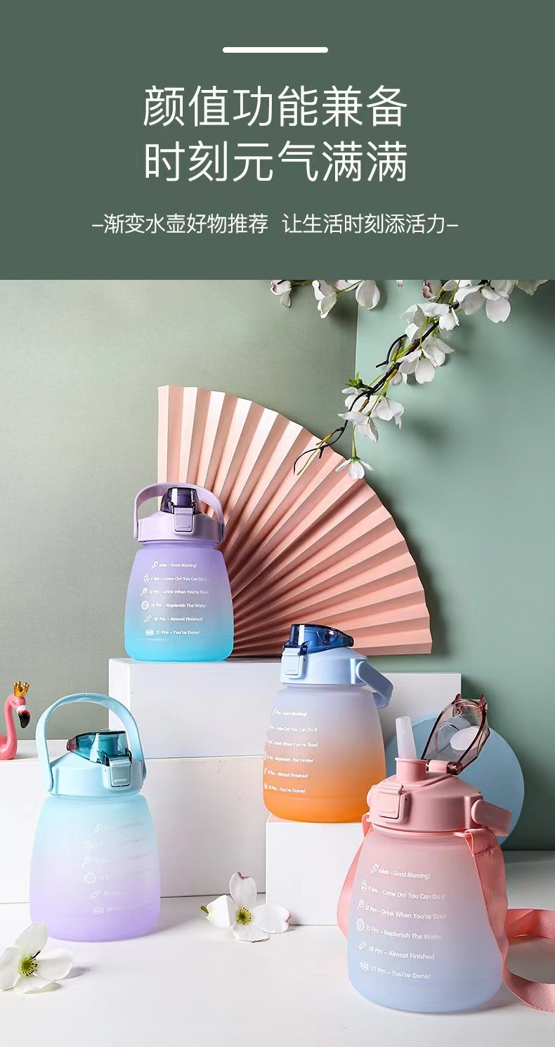 标题:网红塑料渐变色大肚杯水杯大容量男女卡通吸管杯手提带肩带小胖杯
