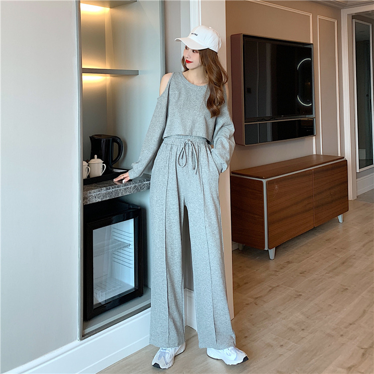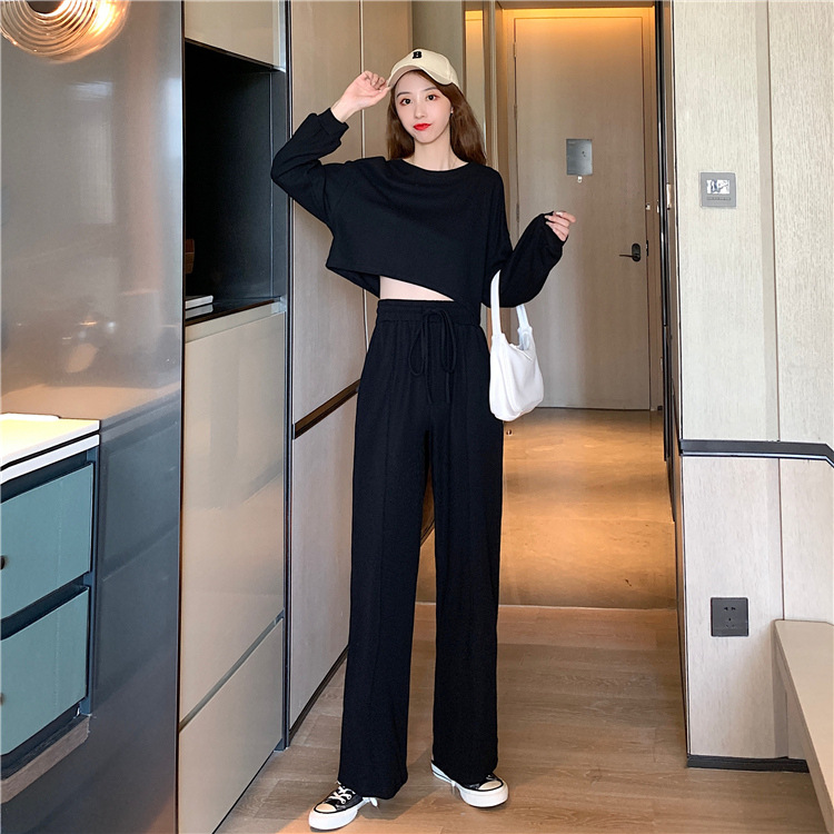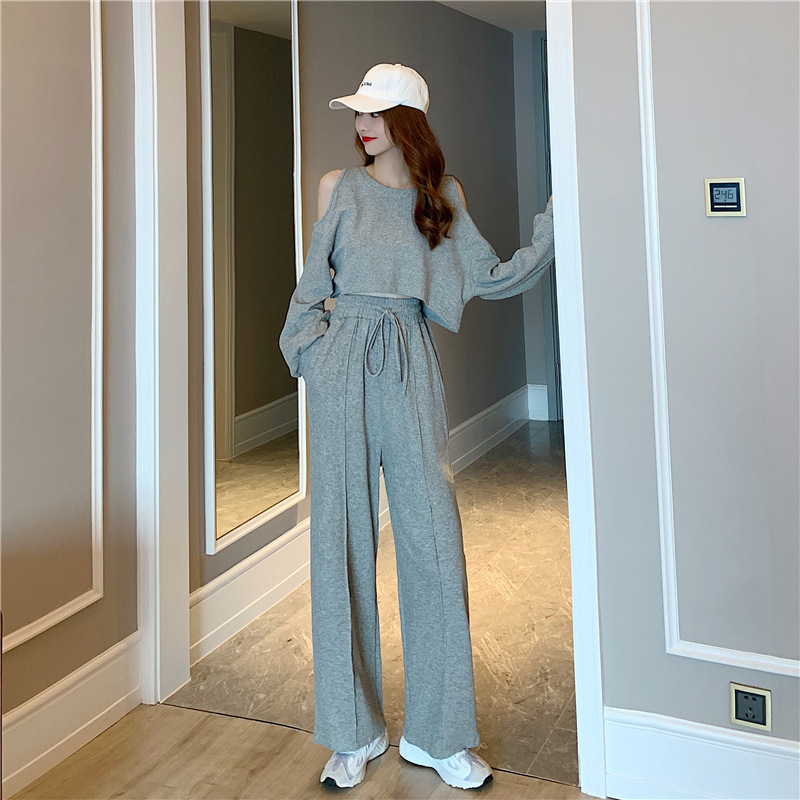 标题:春秋 新作 スウェット+ズボン 2点セット トップス ハイウエスト ワイドパンツ 薄手 セットアップ レディース