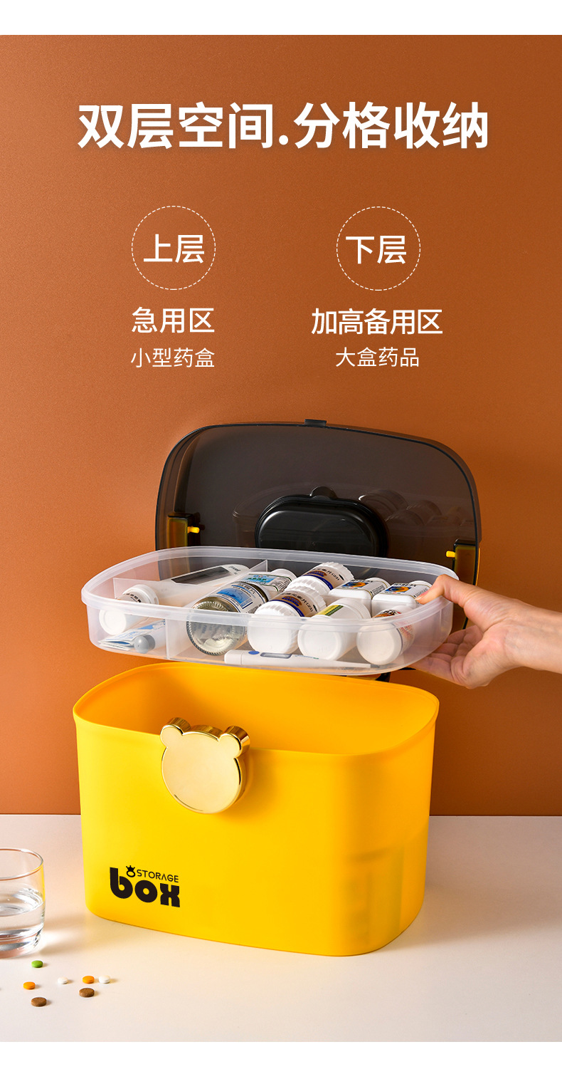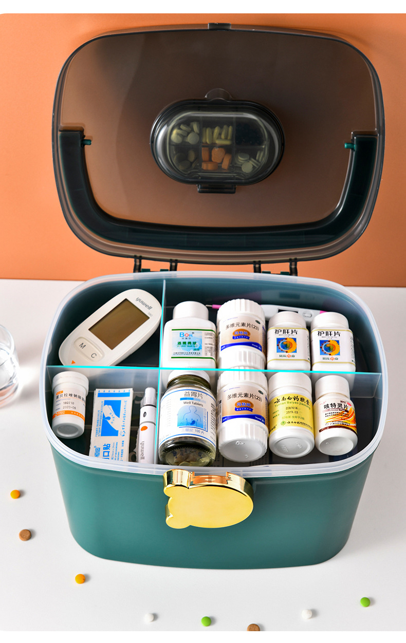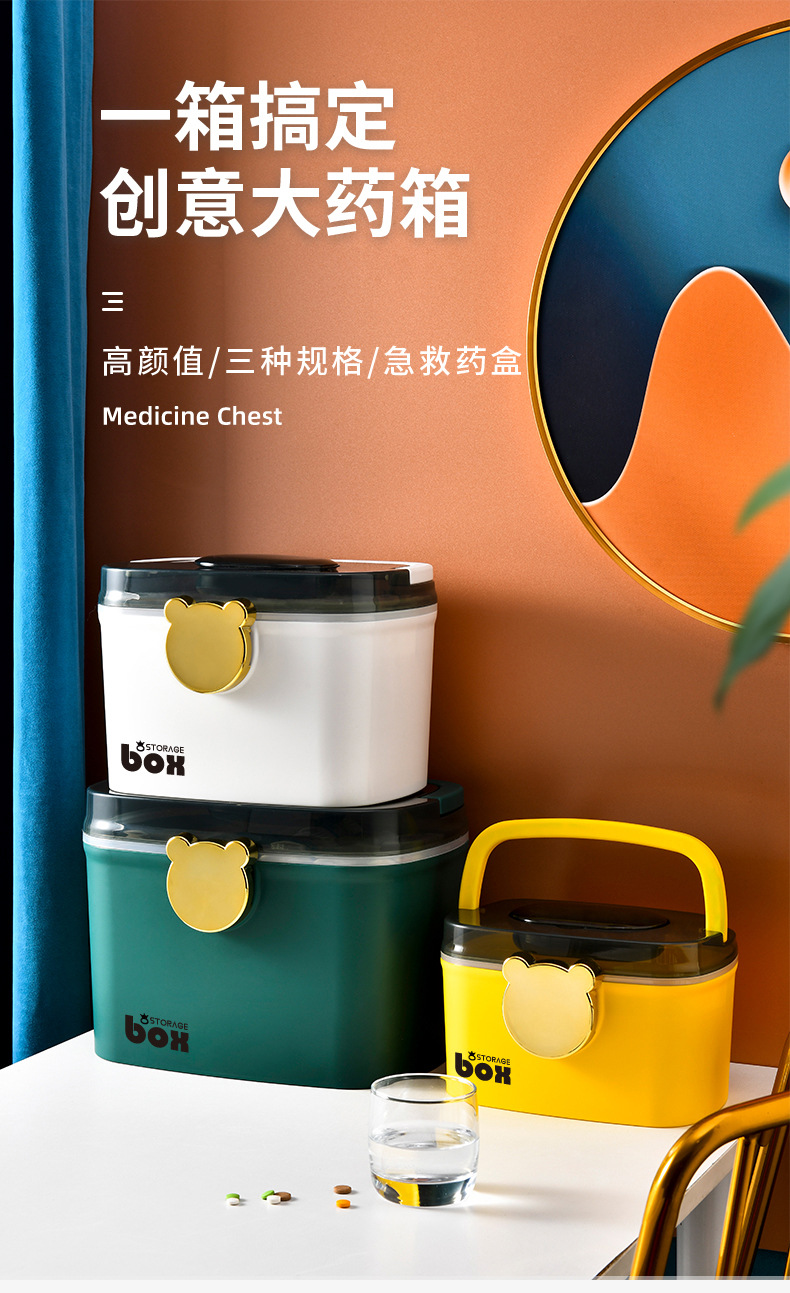 标题:家用药箱多层急救大中小便携式药箱创意家庭药品收纳盒桌面整理箱