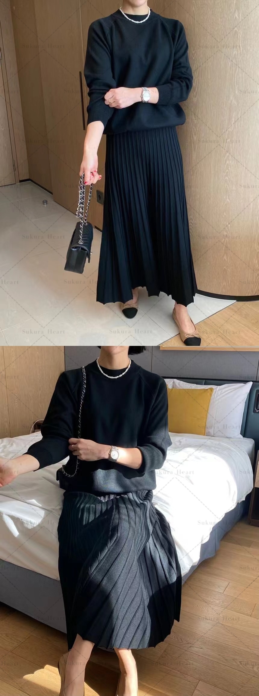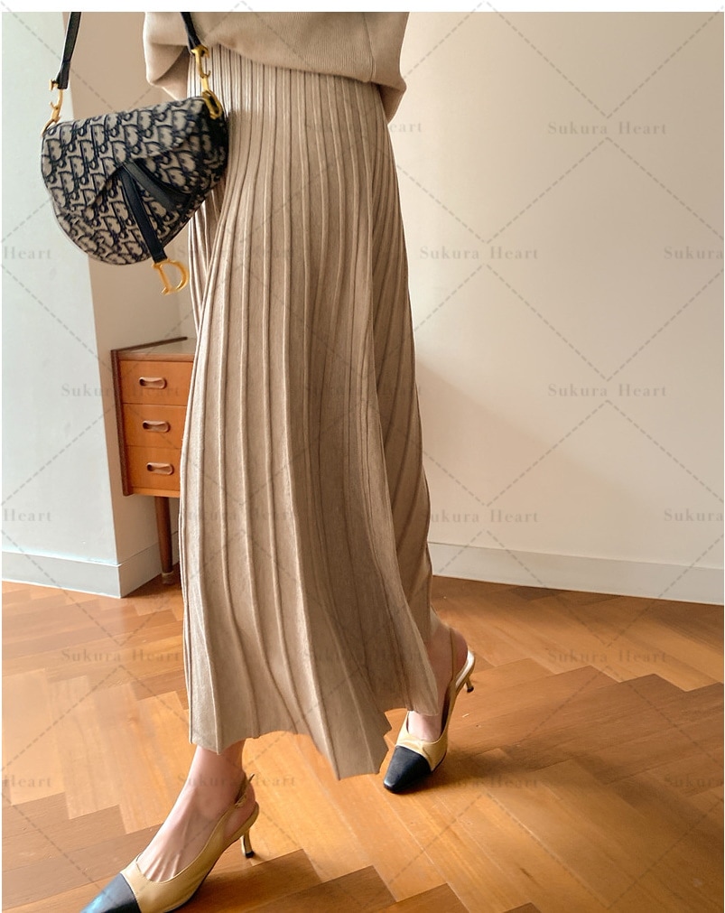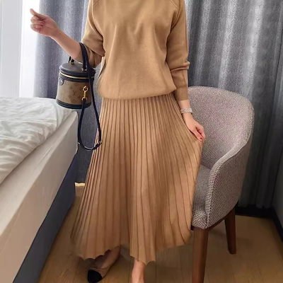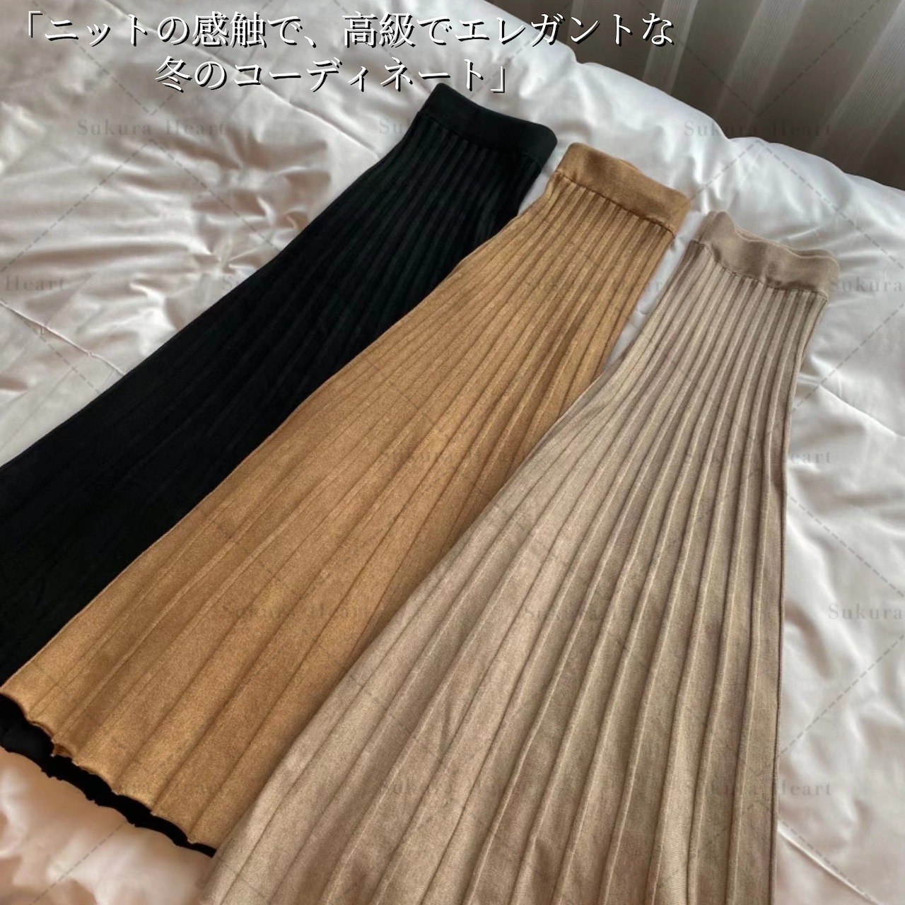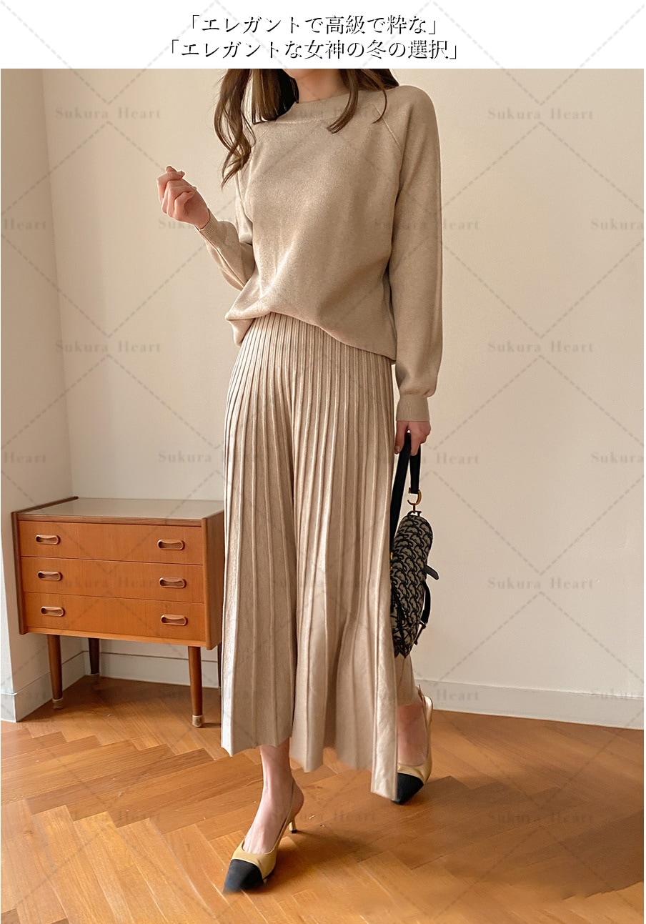 标题:【店舗人気!】韓国人気 秋冬 ロングスカート セットアップ 二点セット カシミヤタッチ エレガントで高級で粋な 気質 無地 裏起毛スカート 百褶 スカート 垂れ感 着痩せ インナー 上下セット 通勤