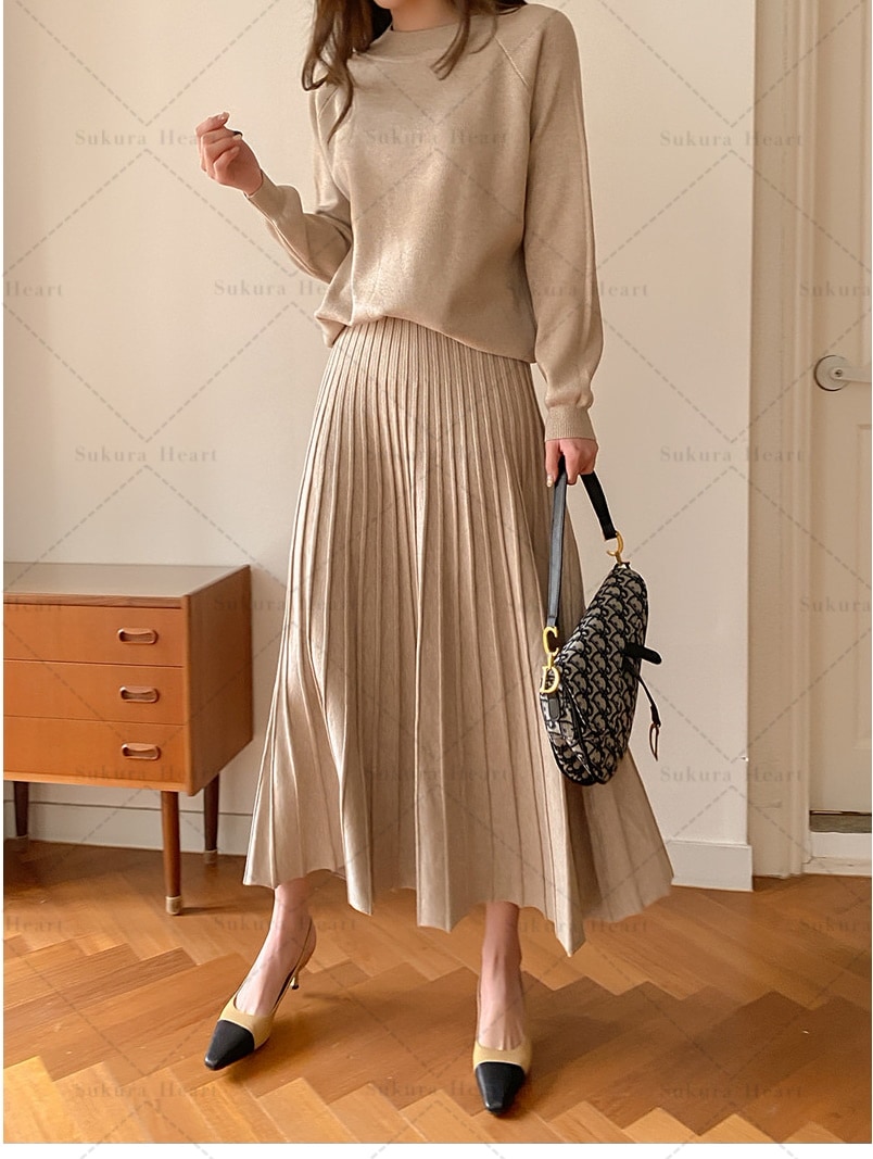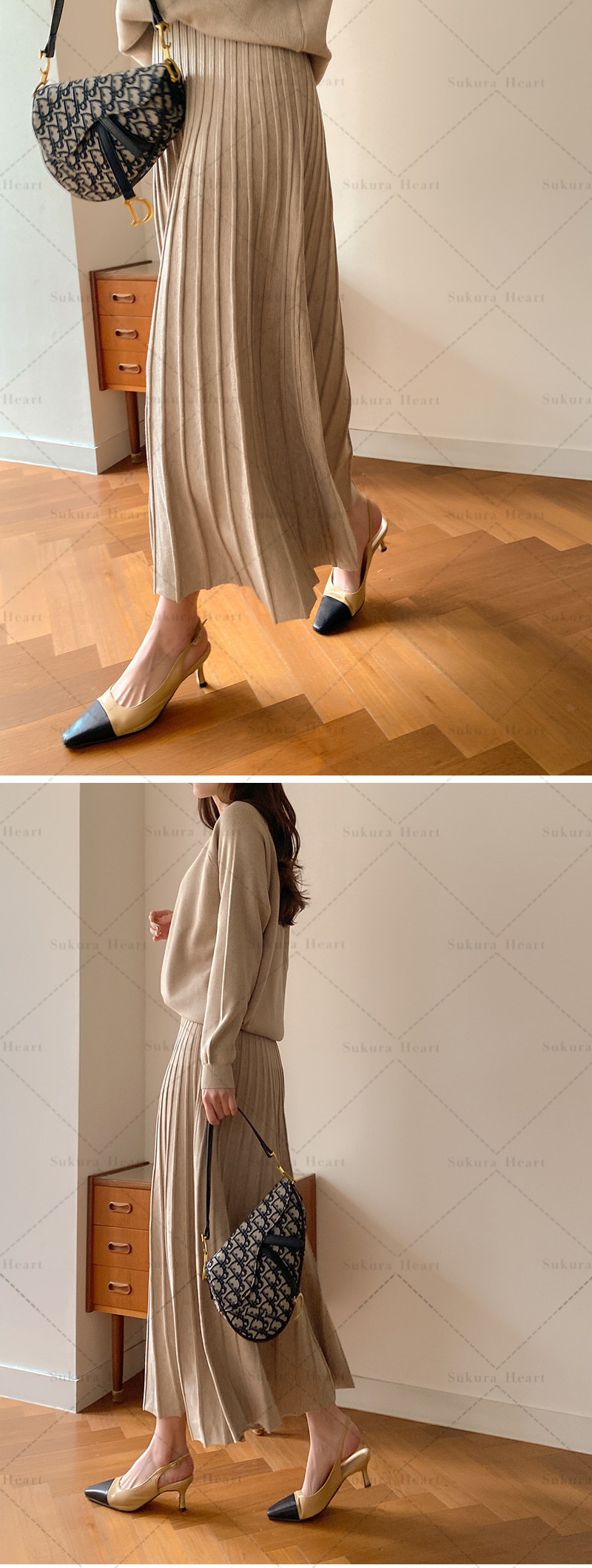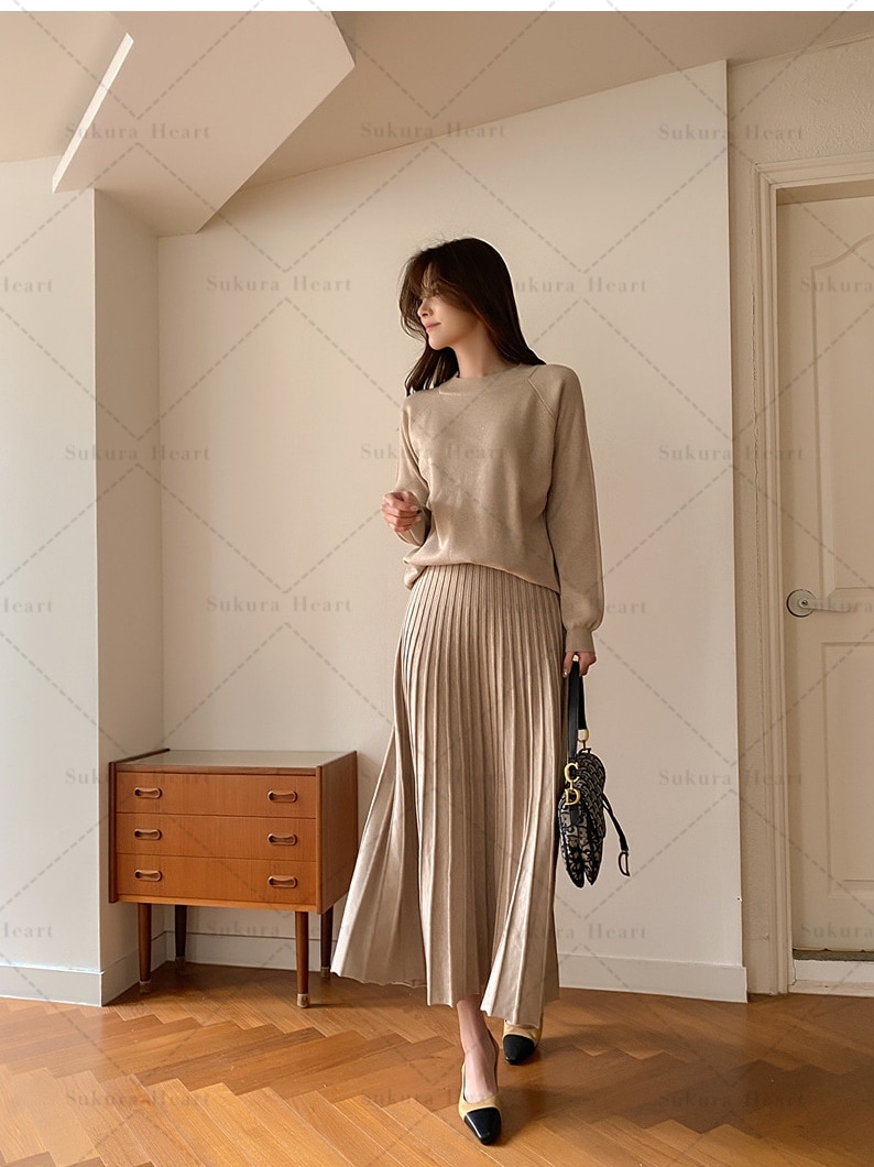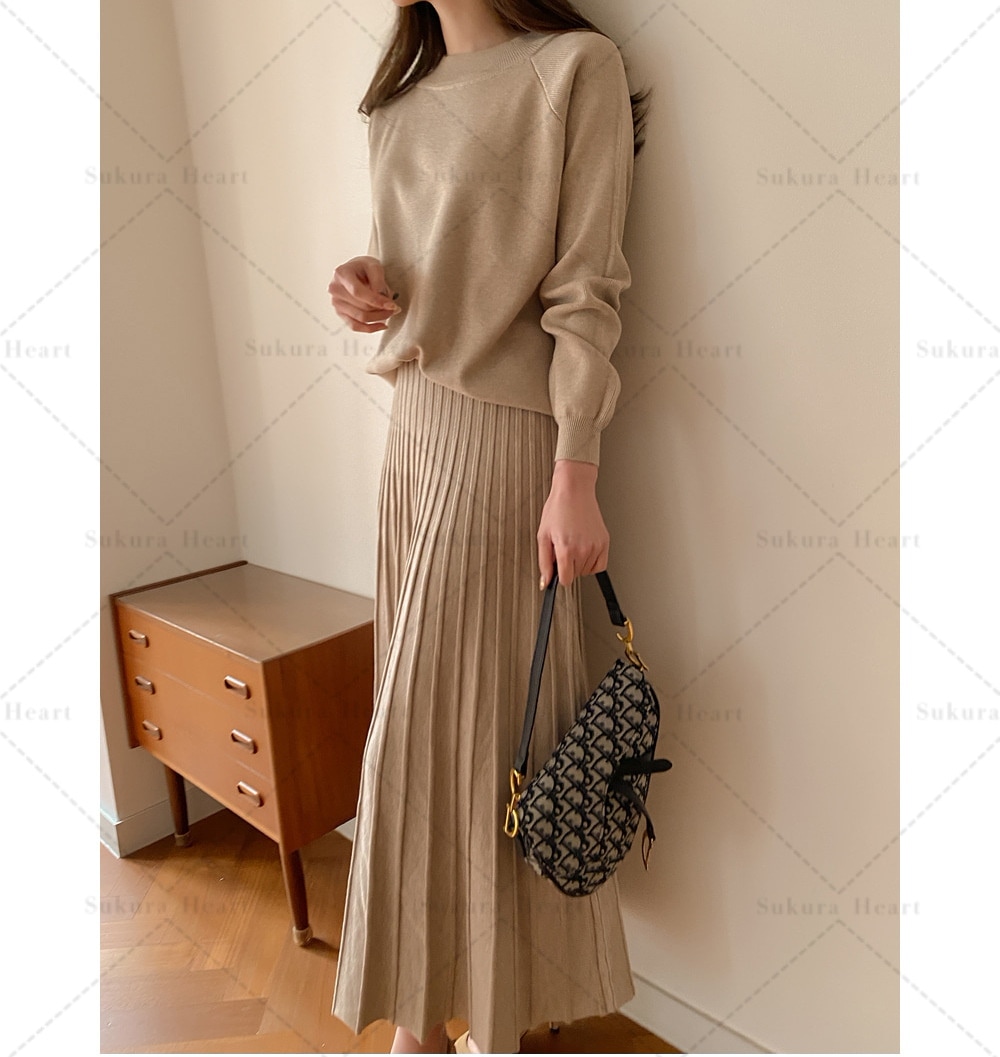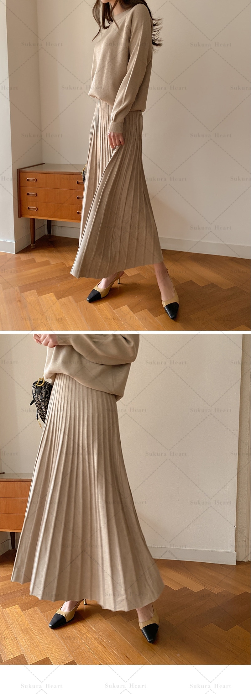标题:【店舗人気!】韓国人気 秋冬 ロングスカート セットアップ 二点セット カシミヤタッチ エレガントで高級で粋な 気質 無地 裏起毛スカート 百褶 スカート 垂れ感 着痩せ インナー 上下セット 通勤