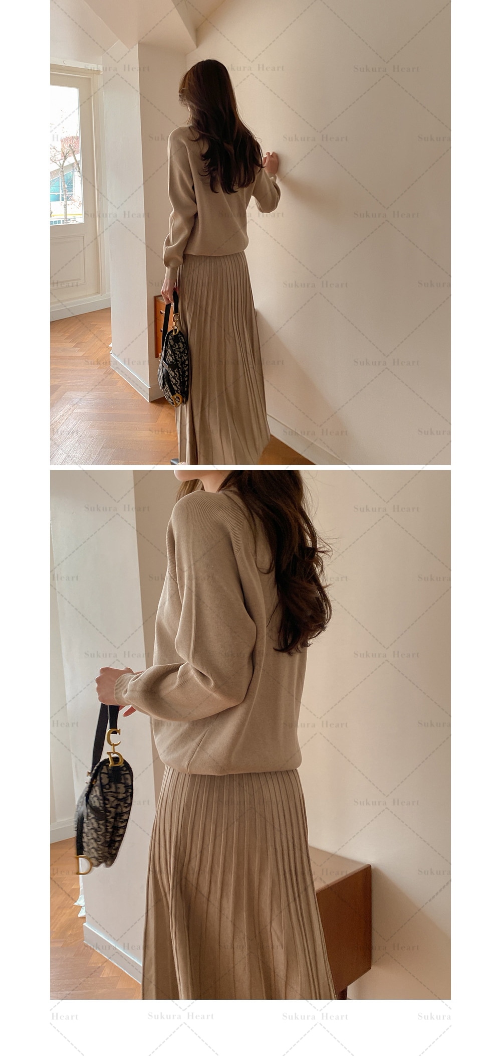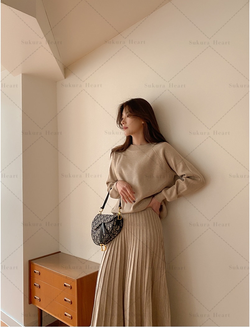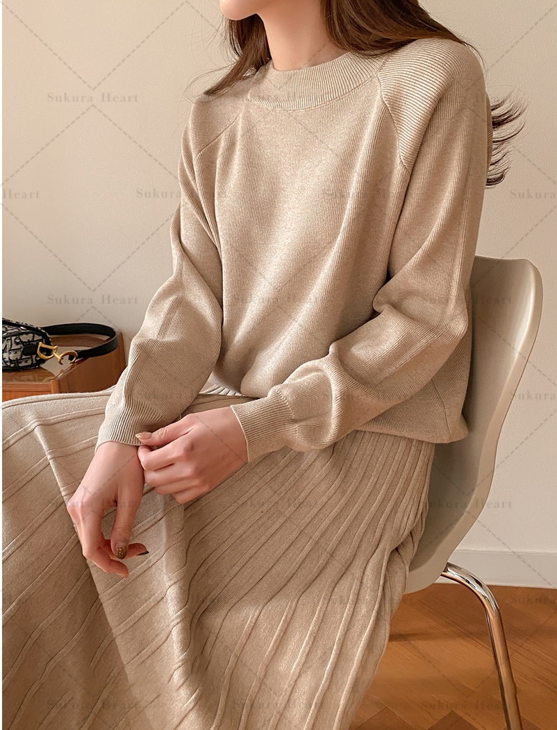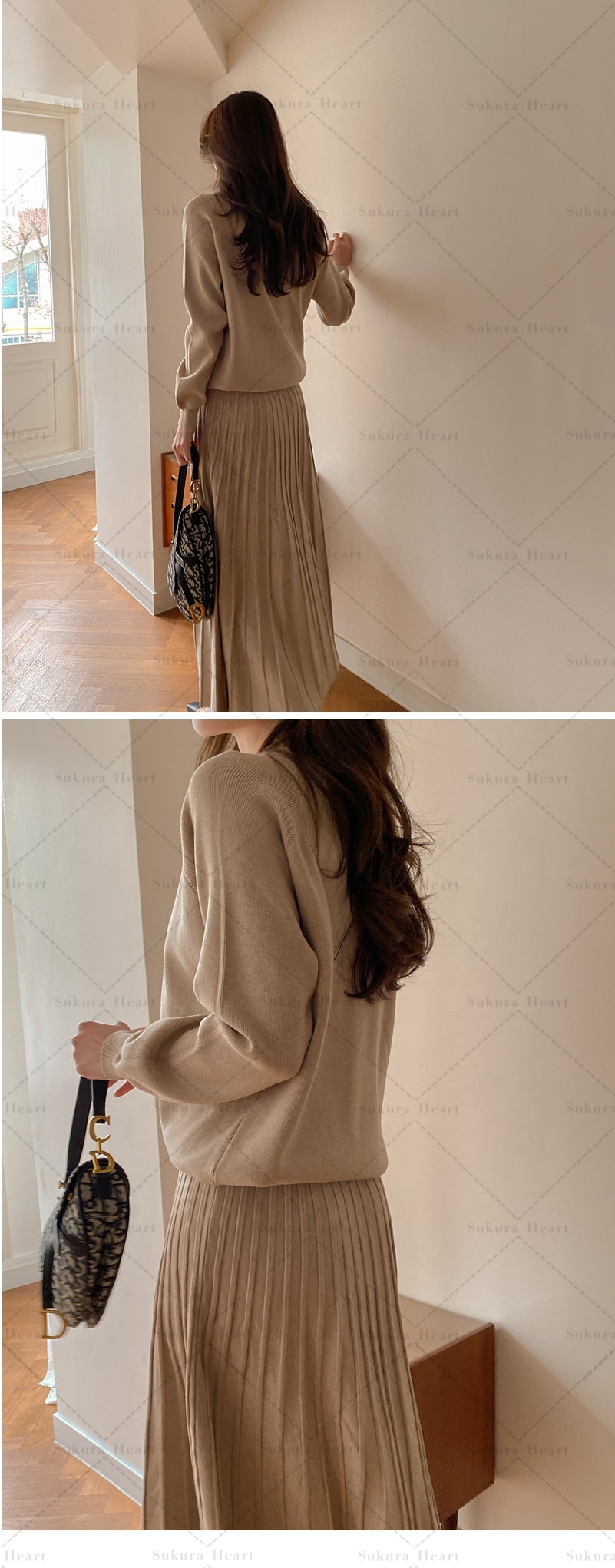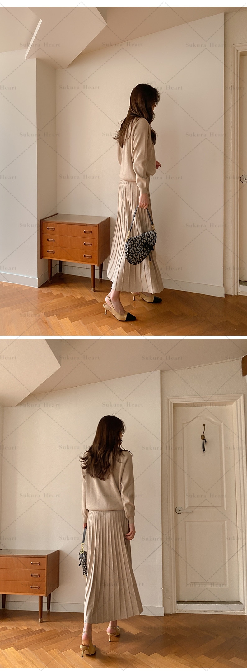 标题:【店舗人気!】韓国人気 秋冬 ロングスカート セットアップ 二点セット カシミヤタッチ エレガントで高級で粋な 気質 無地 裏起毛スカート 百褶 スカート 垂れ感 着痩せ インナー 上下セット 通勤
