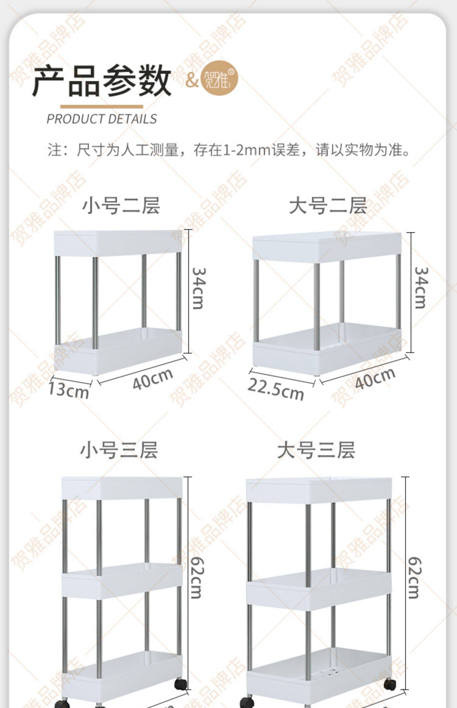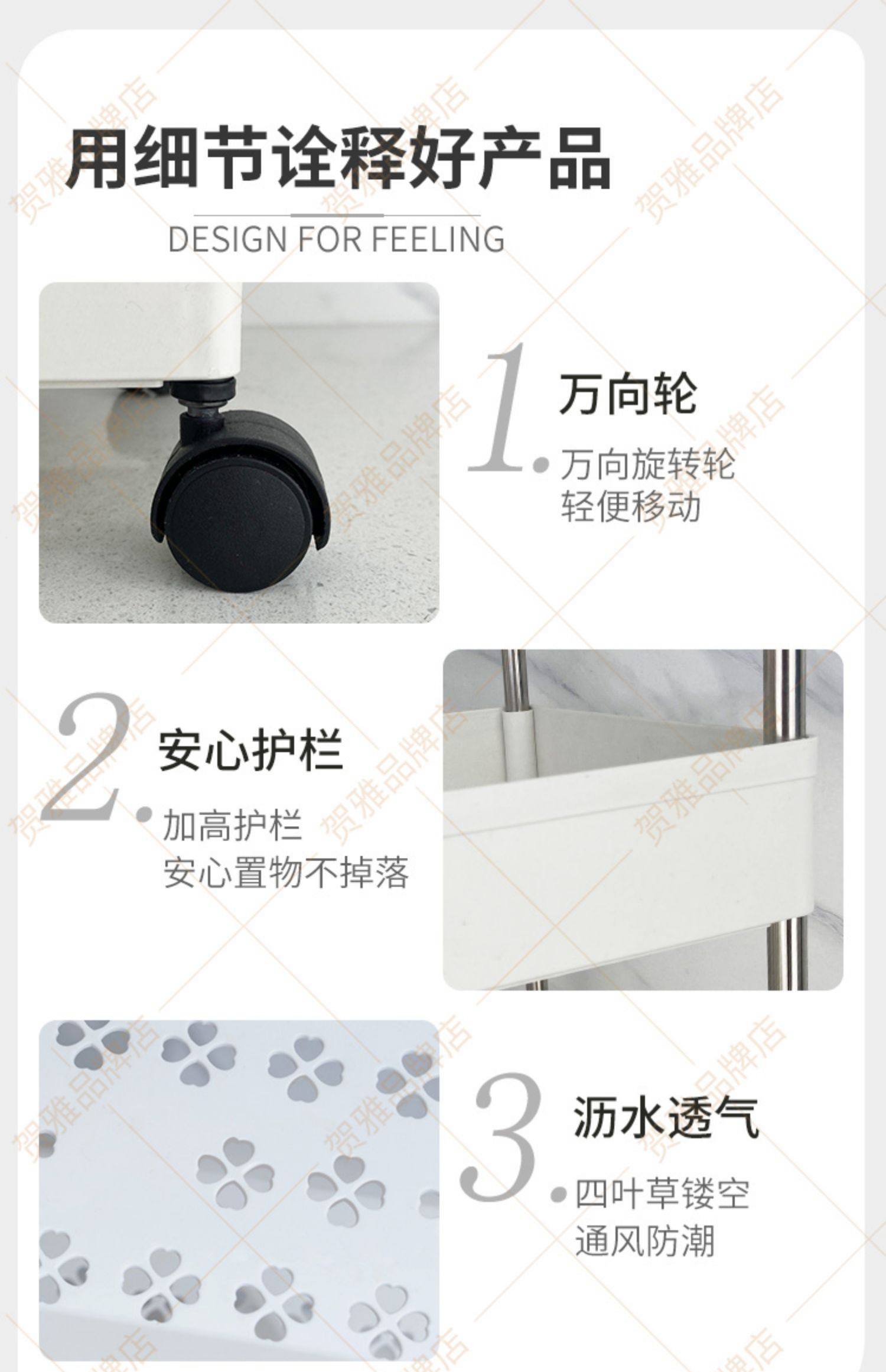 标题:厨房夹缝置物架落地多层可移动小推车缝隙收纳架多功能带轮储物架
