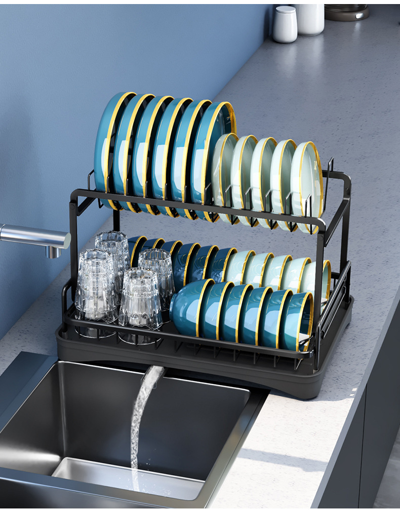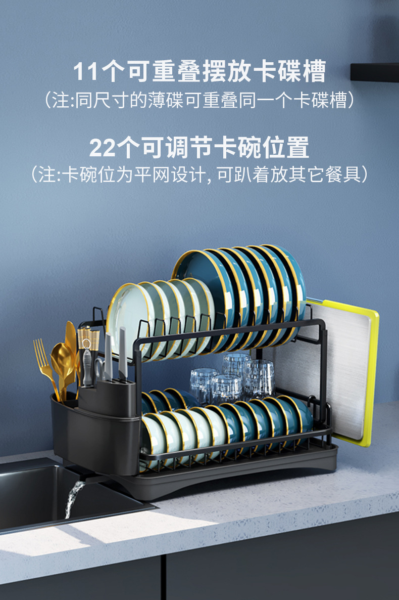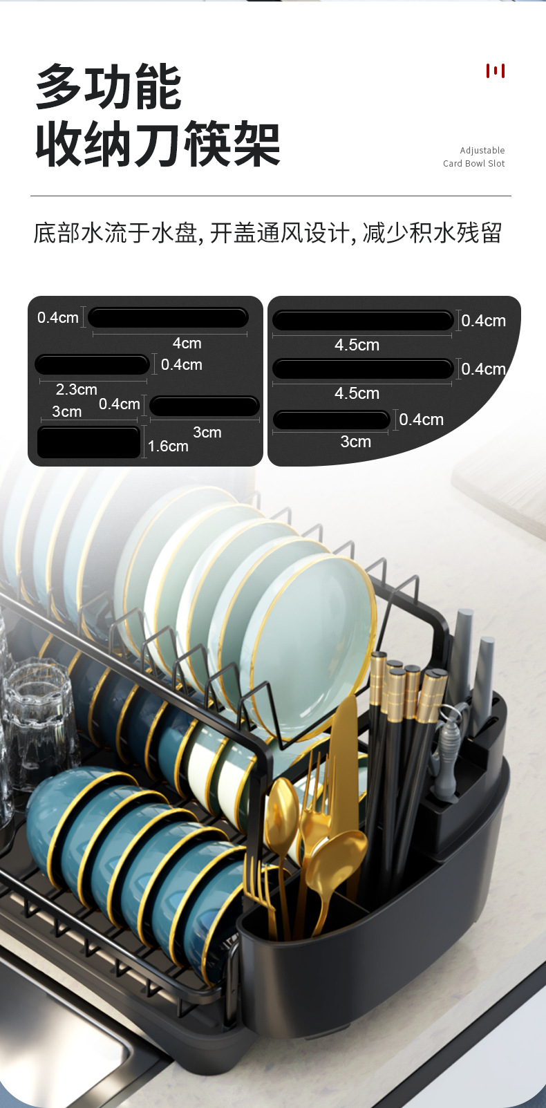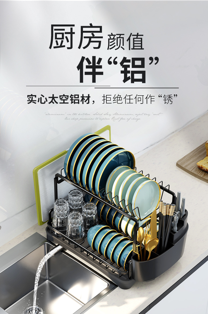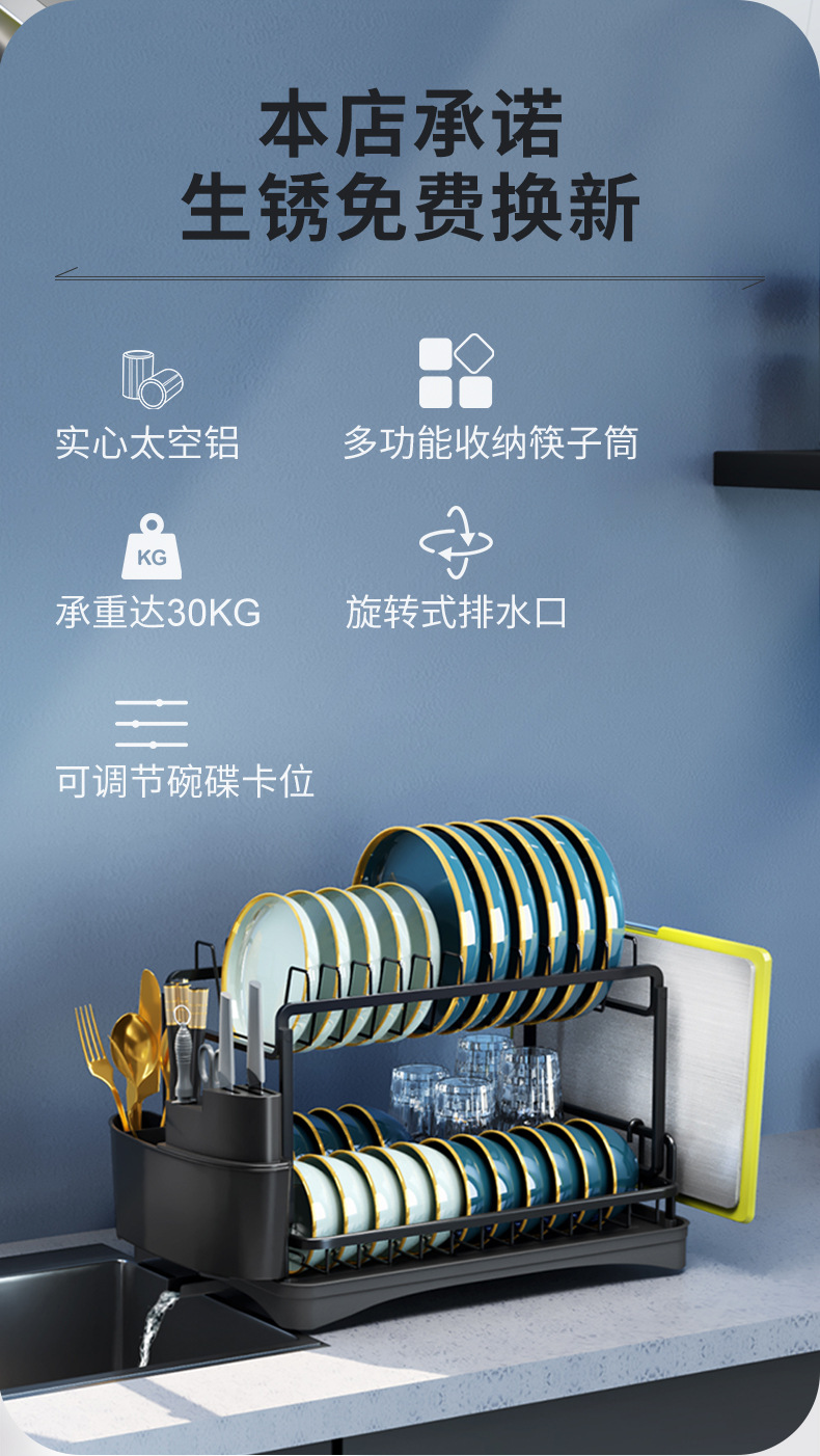 标题:轻奢厨房碗碟架双层晾放碗盘刀筷子沥水餐具砧板家用水槽水池收纳